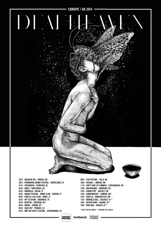 Enttäuschung und Entsetzen steht an diesem Abend so manchen ins Gesicht geschrieben als dann auch die letzten Tickets weg sind an der Abendkasse. Dabei hätte man es sich denken können dass DEAFHEAVEN nach den Hype in den letzten Monaten mit ihren mal träumerischen, dann doch brachialen Klängen ein großes und bunt gemischtes Publikum anlockt. Da wären dann einmal die, welche es mit “ trven“ Black Metal doch nicht ganz so streng nehmen, offen für Neues sind in diesem Bereich. Die Post-Rocker, Shoegazer oder auch die immer gut informierten Pitchfork Leser: solange es neu, anders und bei Tumblr präsent ist und allen anderen Social Media Kanälen...kann man machen. Nun, ungelogen, wurden DEAFHEAVEN vielleicht auch eben deshalb auch gerne von „Hatern“ als neue Hipsterband verschrien die mit Metal gar nichts am Hut haben. Wollen sie aber auch gar nicht. Dann wird ihnen noch eine kurze, bedeutungslose Lebensdauer und Existenz in der Musikszene prophezeit. So was wird nicht zum Klassiker sondern schnell vergessen. Ob das tatsächlich so enden wird, das wird man wohl abwarten müssen. Egal wie man es drehen und wenden mag, talentierte Musiker sind sie jedenfalls. Ins Leben gerufen als Duo von George Clarke und Kerry McCoy präsentieren diese auch an diesem Abend auch ihr Können, welches sich auch darin äußert das volle Hafenklang auch diesmal in bewunderndes Schweigen und bedächtiges Kopfnicken zu verleiten. Bei soviel musikalischer Gewalt die einen dort überrollt da kann es schon mal passieren dass man ganz vergessen hat, dass es dort ja auch eine Vorband gab. CALEYA aus Hamburg in diesem Fall, die mit ihren teils deutschen, teils englischen Texten einen ersten guten Eindruck vermittelt haben. Irgendwo zwischen ESCAPADO und THE TIDAL SLEEP fühlen sie sich sicher gut aufgehoben und stehen diesen live in keiner Weise nach. Jedoch lässt sich eine gewisse Ungeduld und das Desinteresse der Menge nicht übersehen, der ein oder andere hat mit Glück doch noch ein Ticket ergattert und überhaupt: es soll endlich losgehen. Die Stille bricht mit einem urlangen Intro vor „Dream House“ ein. Ohne großartig Ansagen zu machen während des Sets entsteht die Verbindung zum Publikum durch Clarkes teils theatralisch anmutenden Bewegungen bei denen man wenn man weit genug vorne stand auch Angst haben sollte man kriegt gleich einen Mikrofonständer ins Gesicht. Das alles interessiert nicht, die 40 viel zu schnell fließenden Minuten ist er wie besessen. Schreien, keifen, wippen, schleudern, schwitzen. Mag Leute geben die es nicht verstehen, meinen DEAFHEAVEN wäre übertrieben. Wie unfreiwillig komisch der Sänger dort mit seinem schwarzen Handschuh über sein Gesicht streift und überhaupt, was ist das überhaupt für ein Genre? Entweder ganz oder gar nicht. Gegen Haarspalterei und Meckerei kann man nichts machen. Aber es darf nur noch wiederholt werden: verdammt gute Musiker, die Atmosphäre erzeugen und ihr Ding durchziehen. Haters gonna hate.