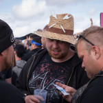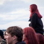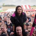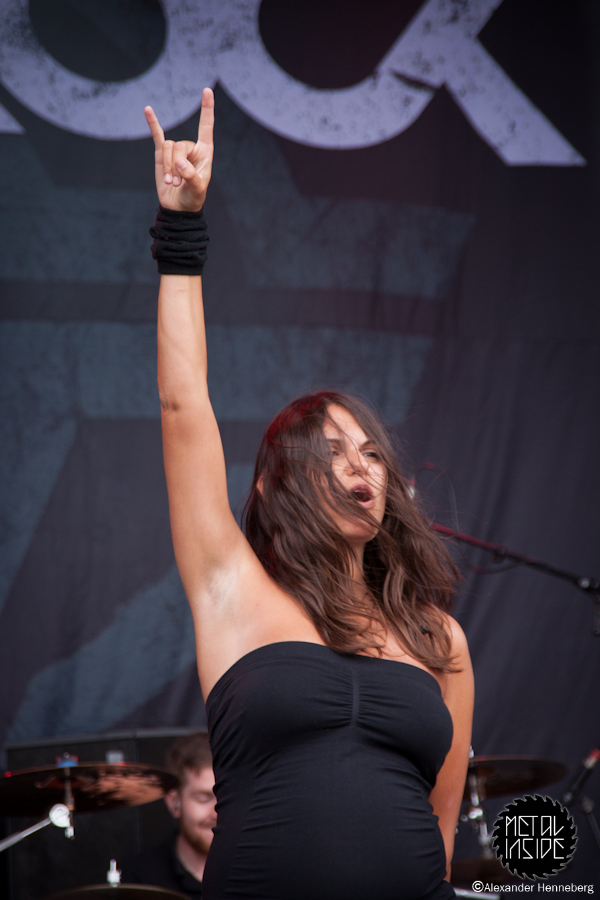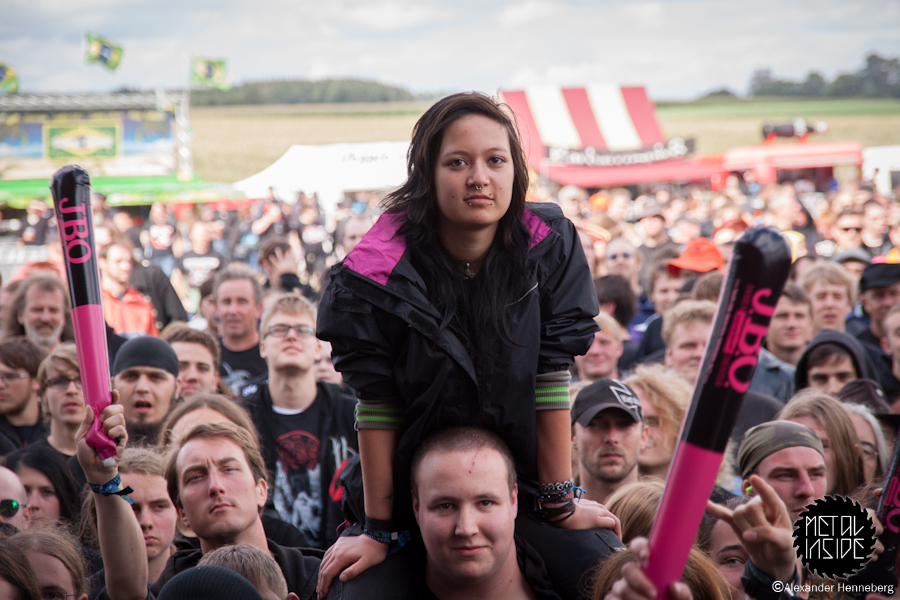 Der Tag heute lud zu Beginn etwas zum Gammeln ein, allerdings nur an Stellen wo es überdacht war, denn es regnete hin und wieder sehr kurz, dafür dann aber sehr, sehr stark. Kurz darauf zeigte sich dann sogar wieder die Sonne, das Wetter war einfach wie verhext. Gegen 14 Uhr wurde es dann aber doch mal Zeit, mich auf den Weg zu den Bühnen zu machen, denn DEADLOCK war dick und fett auf meiner Liste markiert. Mich erwarteten auf der Bühne ein total freudestrahlender Sänger und eine ebenso strahlende Sängerin, die ziemlich rundlich war, allerdings nicht vom essen. Sie verkündeten direkt noch während des ersten Songs, dass sie schwanger sei. Wer das allerdings bis jetzt nicht gesehen hat, stand entweder ewig weit von der Bühne weg oder war blind. Nichts desto trotz, legten sie einen sehr guten Auftritt hin und das permanente Strahlen der beiden steckte früher oder später einfach an. Super kann ich da nur sagen.