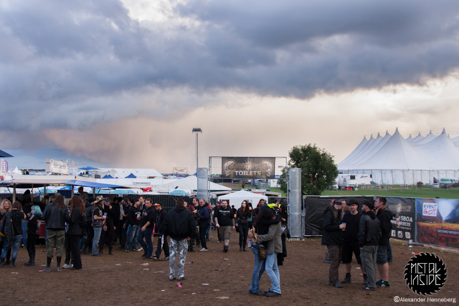 Die Letzte Band des Tages war DEVIN TOWNSEND PROJECT, die eine eher mittelmäßige Show auf die Bühne stellten, weshalb ich nach der Hälfte des Gigs einfach ging. Das Camp war mir dann einfach doch lieber. Unterwegs dahin traf ich Unmengen Betrunkene, die sich mal eben mitten auf dem Boden ausruhen mussten oder bereits so fertig waren, dass sie von den Maltesern behandelt wurden. Alle die nicht in diese Kategorie fielen, waren fröhlich und gut gelaunt. Man kann also sagen, ein guter Festivalabend, jedenfalls sofern man nicht von den Temperaturen ausging. Die waren bereits seit einigen Stunden so tief gesunken, dass inzwischen selbst Handschuhe zu meiner Ausrüstung gehörten. Wie war das noch gleich, es war August? Finster...