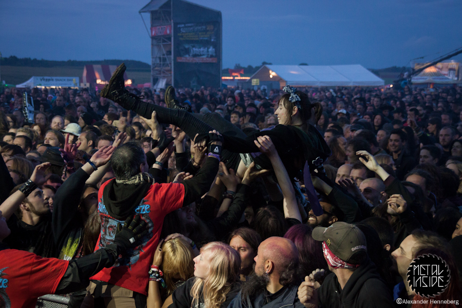Direkt danach wurde es aber mal Zeit für ein paar Musiker, die schon zum „alten Eisen“ gehören, nämlich CARCASS. Die Männer aus Liverpool heizten dem Publikum mit ihrem (Melodic) Death-Metal ordentlich ein, doch die lies es eher kalt. Es war durchweg ein reges Interesse zu sehen, aber mehr leider auch nicht. Doch das es auch anders geht, zeigten ganz klar kurz darauf HYPOCRISY auf der kleineren der beiden Hauptbühnen. Mit einer sehr geilen Show brachten die Schweden das Publikum wirklich zum Ausflippen. Nicht nur, dass sie extrem geil abgemischt wurden, sondern auch die absolut geile Lichtshow selbst, die zwischen sehr düster und gleißend hell ständig wechselte. So muss Death-Metal sein, so und nicht anders!