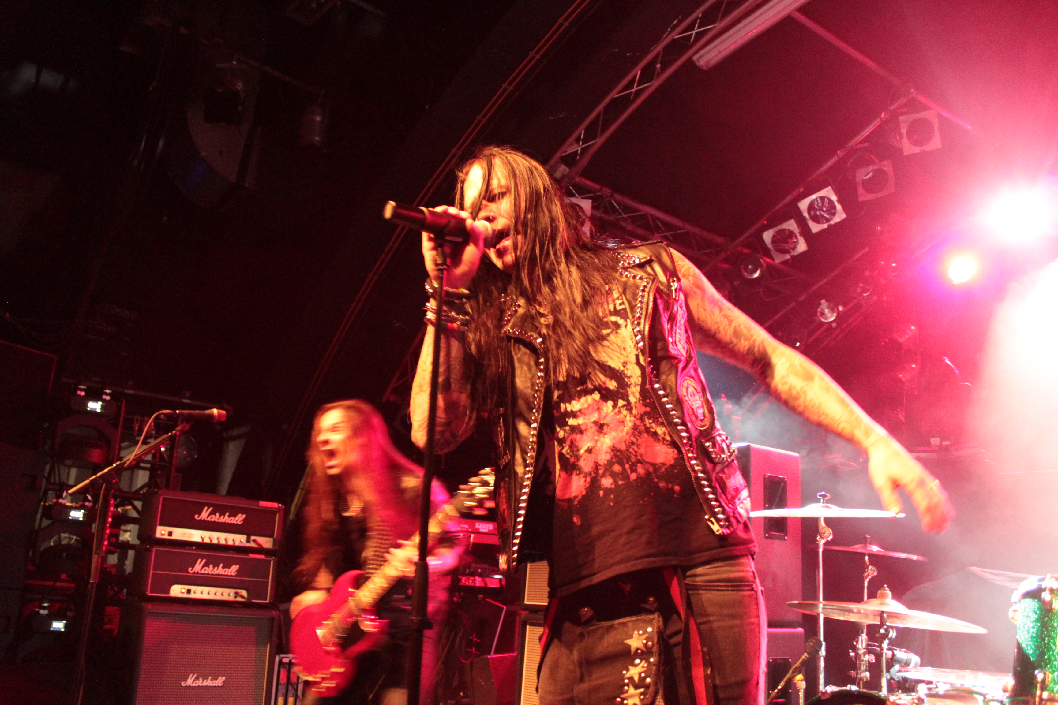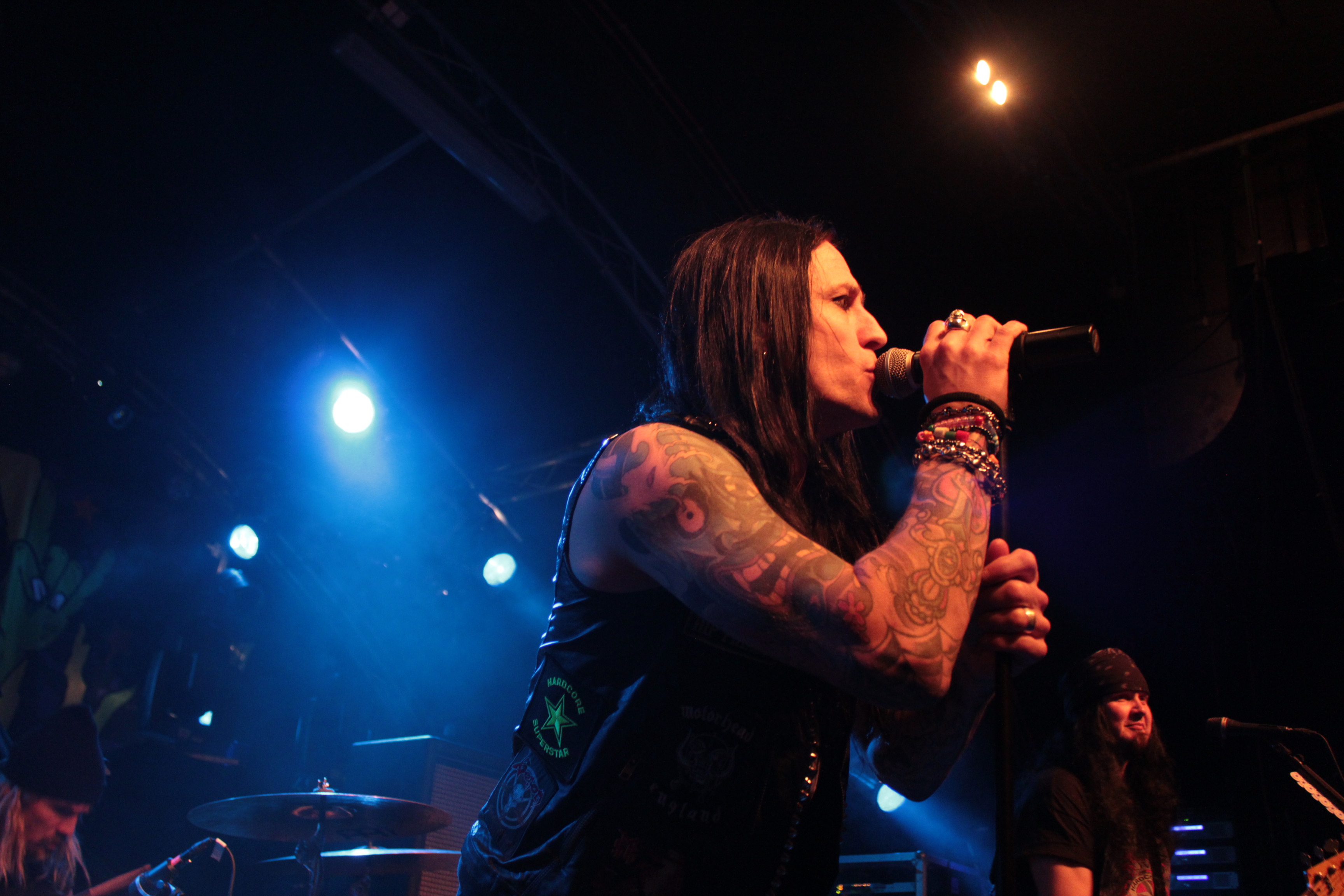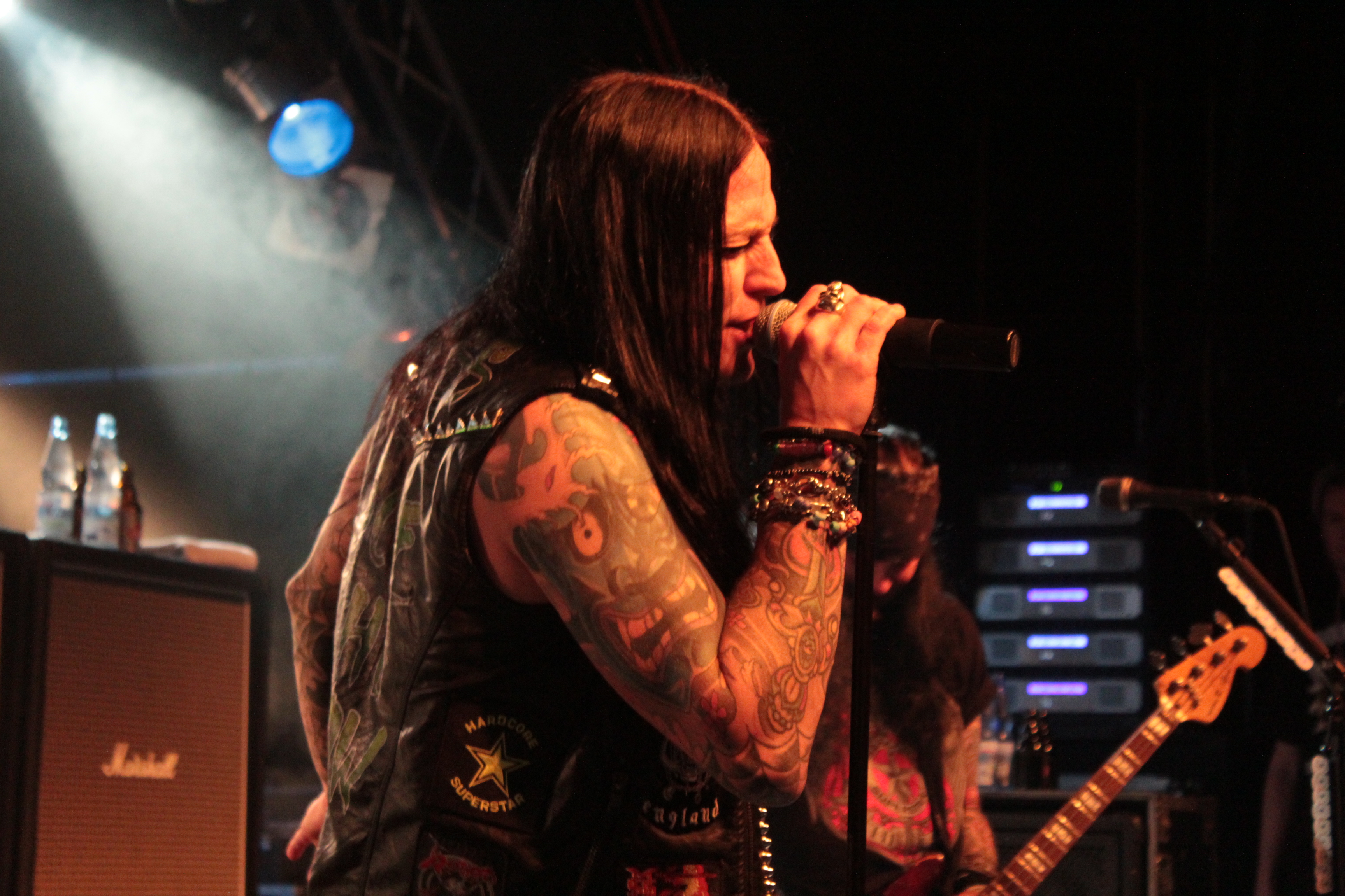 Man kann ja leider nicht alles haben. Waren die Schweden HARDCORE SUPERSTAR genau vor einem Jahr mit BUCKCHEERRY auf Double Headliner Tour, so dass beide Bands circa 90 Minuten auf der Bühne standen, so sind die Sleaze-Rocker heute nur der Supporting Act. Dennoch bekommen sie eine Spieldauer von 50 Minuten zugestanden. „Diese Tour ist ziemlich cool für uns. Wir erhalten die Möglichkeit, vor vielen Leuten zu spielen, die noch nie etwas von uns gehört haben. So können wir unsere Fanbase erweitern“, erzählt HCSS- Frontmann Jocke Berg im Metal Inside Interview.