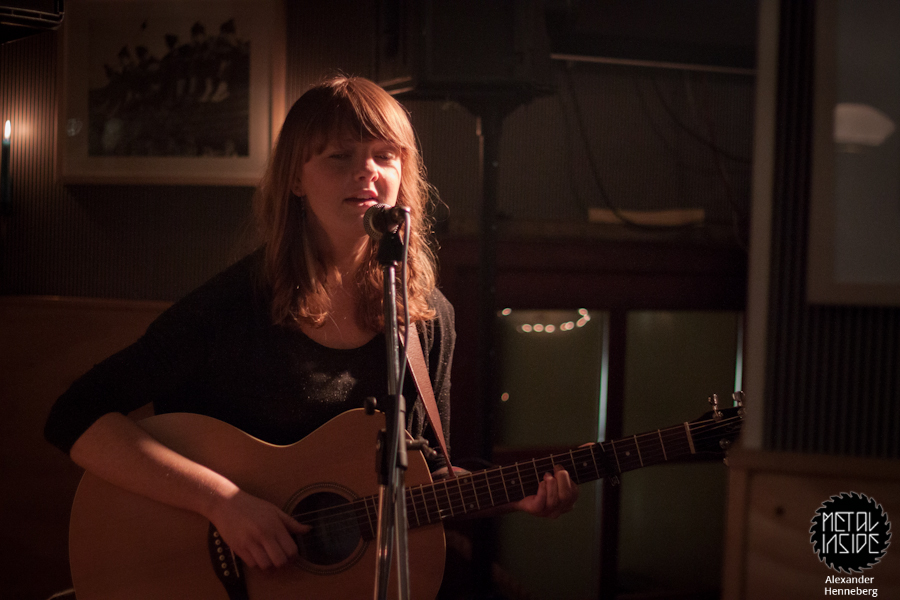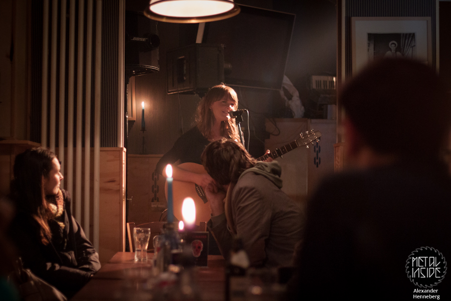 In der doch recht gemütlichen Bar selbst waren um die 10 Leute die sich leise bei wenig Licht unterhielten und die wenigsten schienen wirklich großes Interesse an der Live Darbietung zu haben, aber ein paar schien es dann doch zu interessieren als JESS MORGAN endlich gegen halb Zehn anfing zu spielen. Sie spielte einige sehr gefühlsbetonte Stücke ihrer aktuellen Scheibe „Langa Langa“, die gut in die Atmosphäre passten.