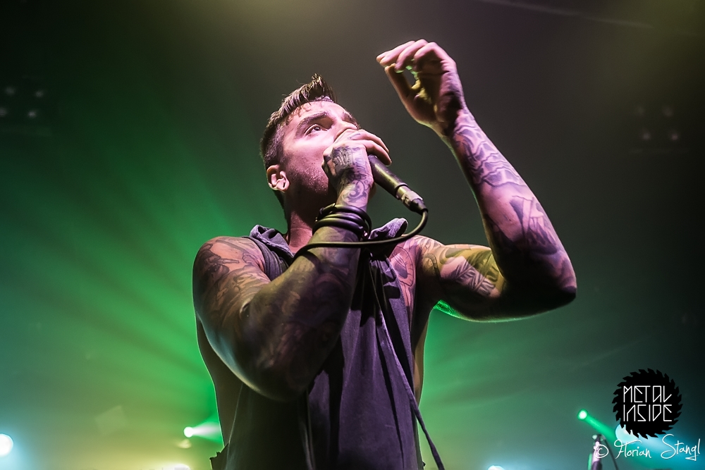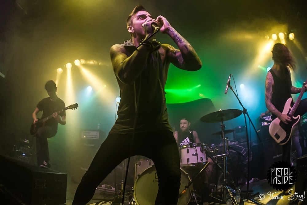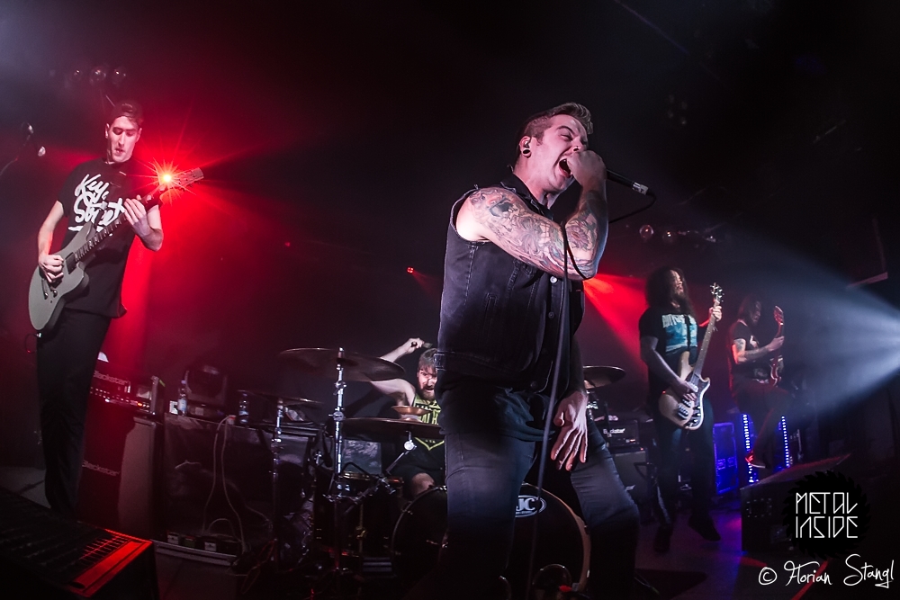 Auf BURY TOMORROW hatten dann sichtlich viele Fans gewartet, das Stimmungsbarometer war schnell am Anschlag. Den Engländern gelang dann sogar etwas, dass es im altehrwürdigen Hirsch auch nicht alle Tag gibt: Ein Circle Pit ums FOH herum, der von normalen Circle Pits und Walls of Death abgerundet wurde. Saubere Leistung!