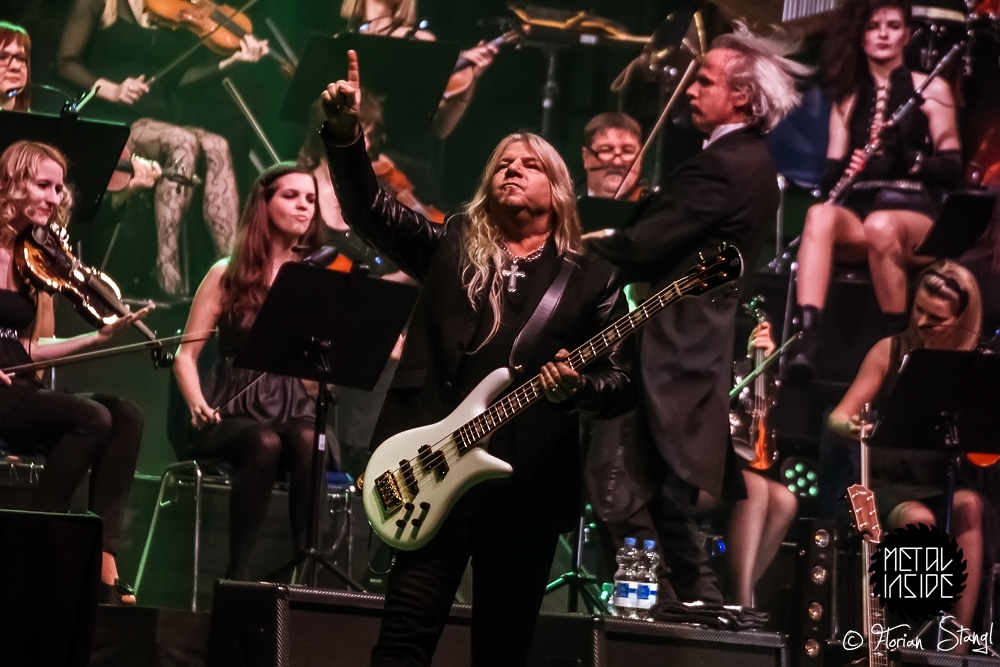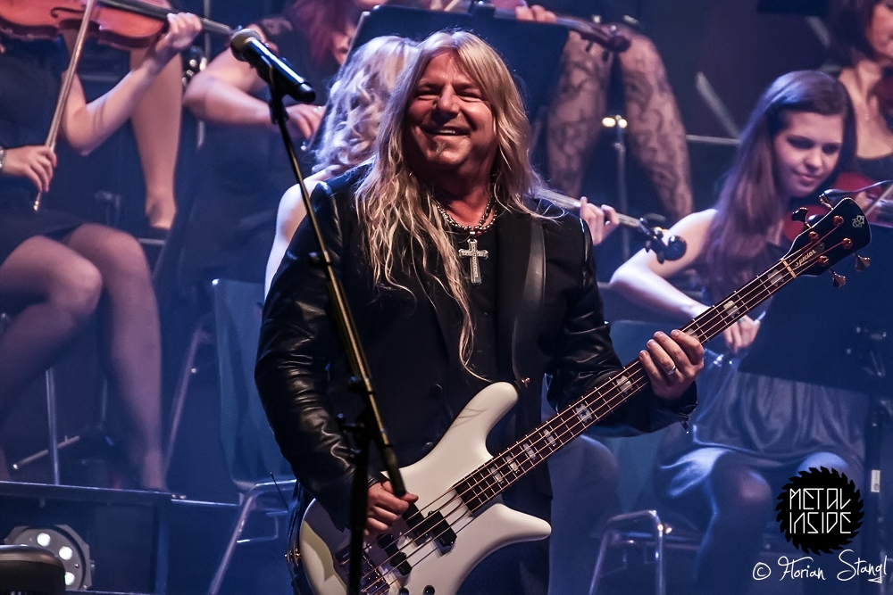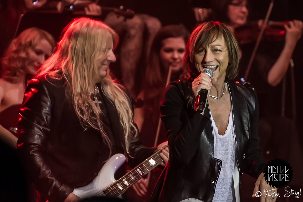 Trotzdem hielt es das Publikum nach einer Weile nicht mehr auf den Sitzen, die meisten Zuschauer tanzten vor allem nach der Pause gut gelaunt mit. Kein Wunder, die Songauswahl konzentrierte sich auf die Hits der Künstler, die ebenso wie die MAT SINNER BAND und das Orchester mit offensichtlich sehr viel Spaß an die Sache herangingen. Kleine Anekdote am Rande: Als wir vor der Show am Backstage-Eingang auf den Beginn warteten, huschte Eric Martin noch schnell in den Tourbus, um sein Jackett für den Auftritt zu holen. Als er wieder in die Arena wollte, hätte er seinen AAA-Pass vorzeigen sollen. Problem: Der war in der Garderobe. Und der Security-Mitarbeiter erkannte ihn nicht. Dass der Auftritt nicht ausfiel, lag nicht zuletzt an der bereits erwähnten sympathischen Art, mit der Eric Martin Geschichten erzählen kann. Und so glaubte ihm auch der Security, dass er durchaus mit Recht wieder in den Backstage-Bereich wollte…