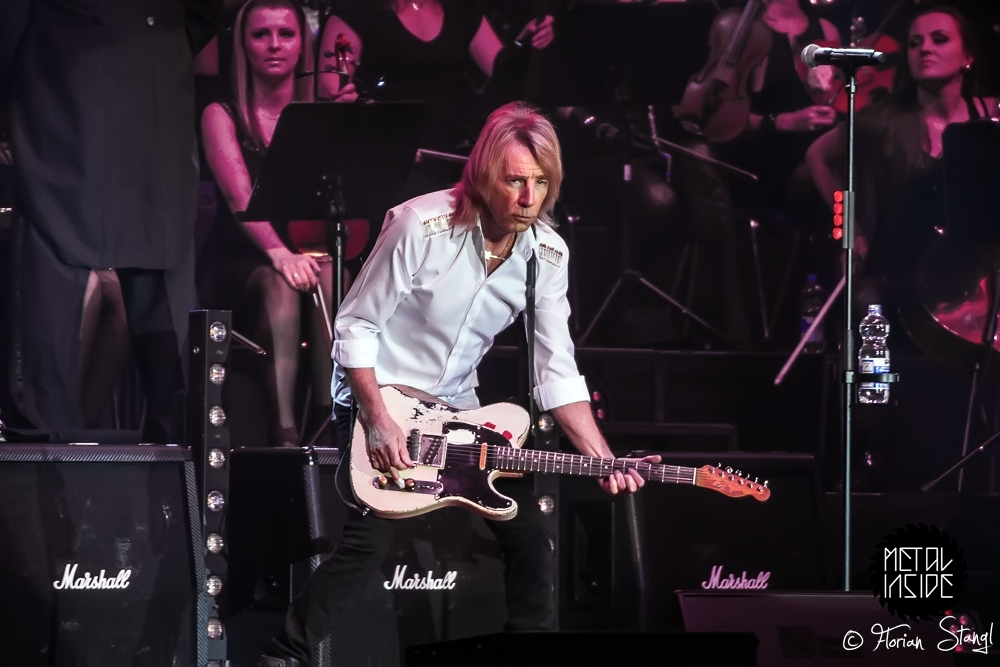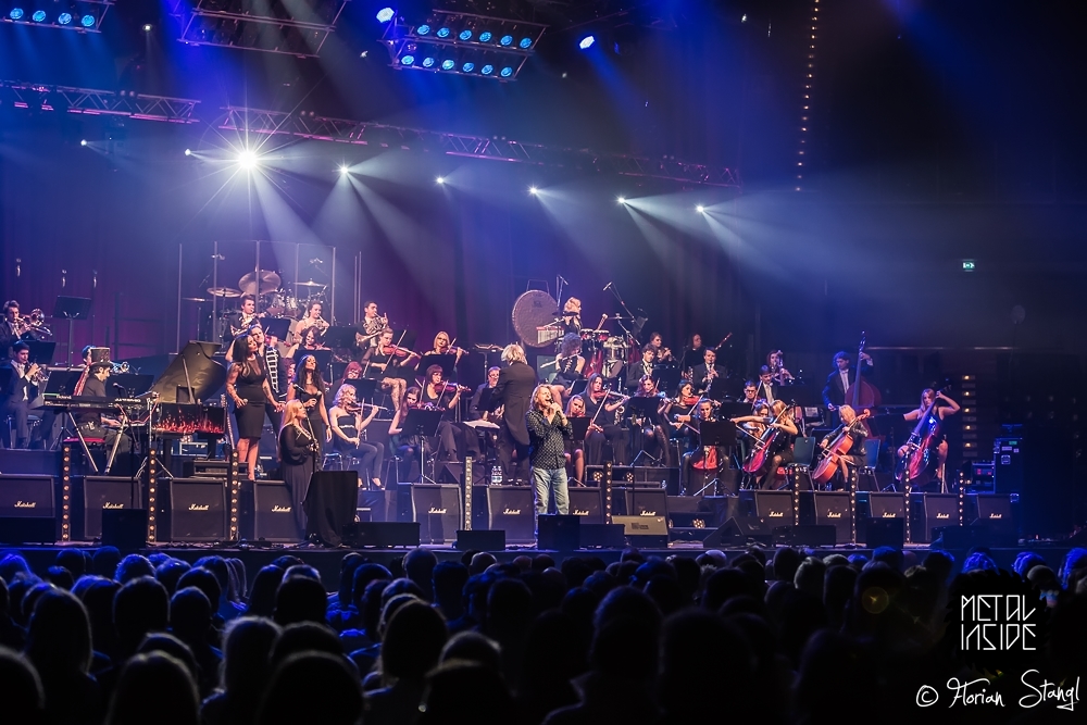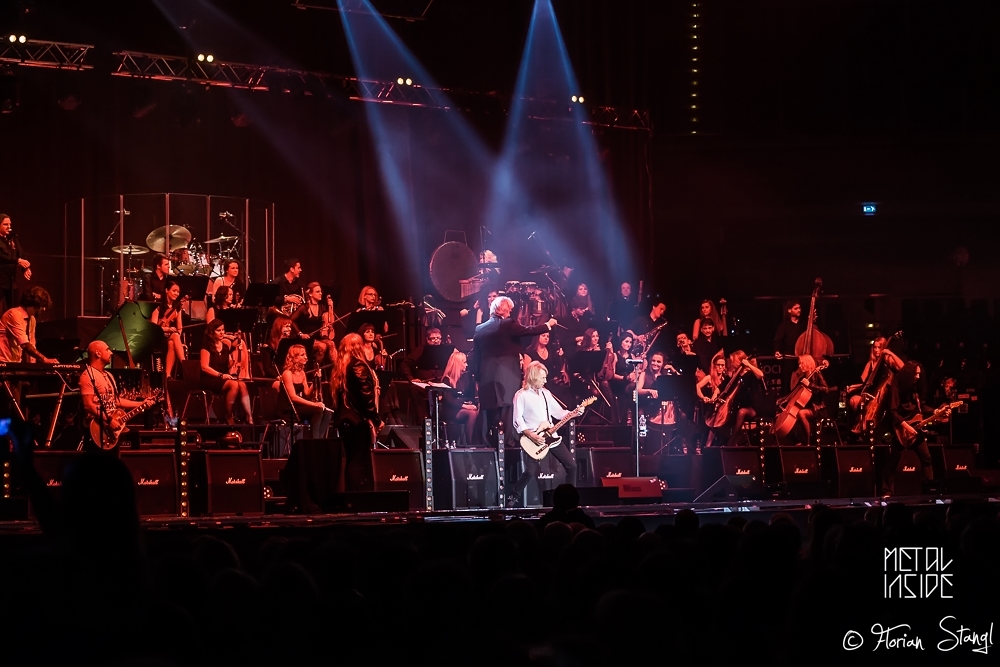 Wenn sich Ian Gillan von DEEP PURPLE, 80er-Italo-Rock-Röhre GIANNA NANNINI und das Symphonie Orchester Prag treffen, dann kann das eigentlich nur an ROCK MEETS CLASSIC liegen – jener von MAT SINNER inszenierten Konzerttournee, die 2015 schon zum 6. Mal Rocker und Orchester vereint. Am 28. März 2015 gastierte der Tross in der Arena Nürnberg und brachte neben den bereits erwähnten Künstlern noch John Wetton von ASIA, Marc Storace von KROKUS, Eric Martin von MR. BIG sowie Rick Parfitt von STATUS QUO mit. Dabei fiel auf, dass die Lichtanlage etwas kleiner dimensioniert war als in den Vorjahren – vielleicht um Orchester und Sänger besser in den Vordergrund zu rücken?