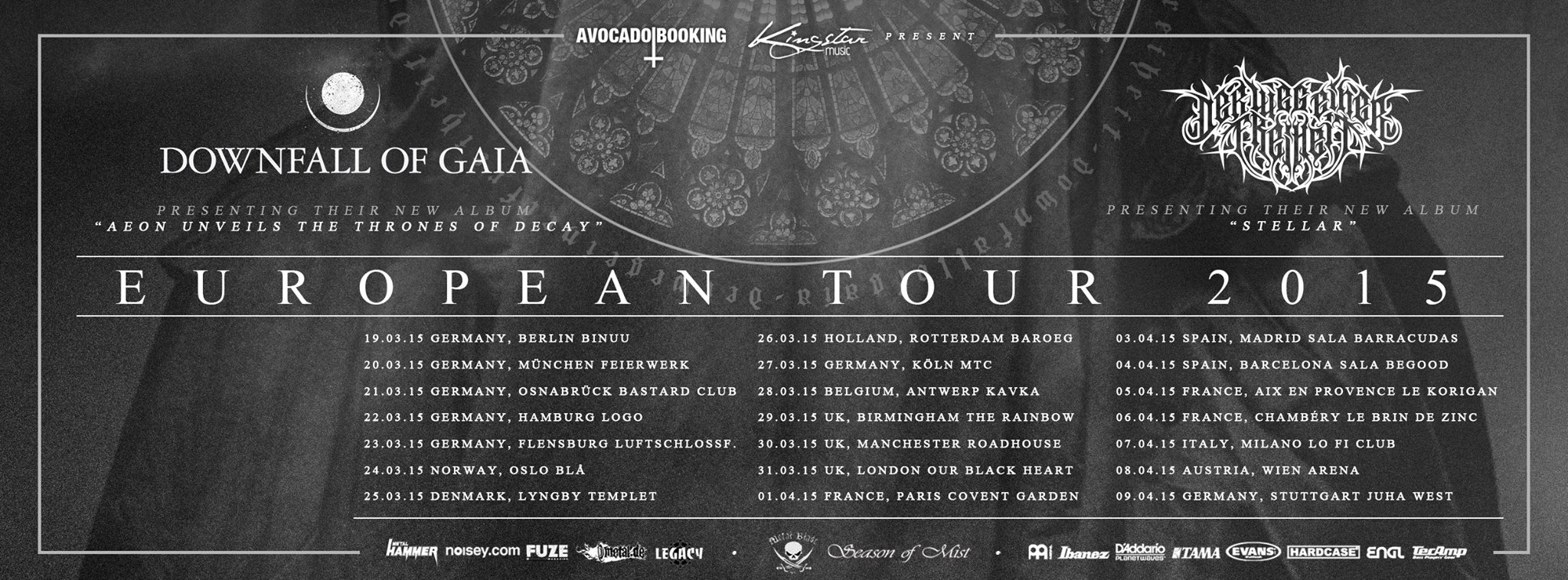 DOWNFALL OF GAIA ließen sich etwas länger als erwartet Zeit, um dann auf eine genauso zugenebelte Bühen wie DER WEG EINER FREIHEIT zu stiefeln. Die Setlist der Hannover-Berlin-New York-Connection war bedingt durch die Länge der Songs kompakter als bei ihren Tourpartnern und konzentrierte sich auf das Material von "Aeon Unveils The Throne Of Decay". Es zeigte sich, dass die Black Metal-lastigen Songs des Albums live gut funktionieren und gegen das Material von DER WEG EINER FREIHEIT locker bestehen konnten, so dass nicht nur wie erwartet die Crustpunks ihren Spaß vor der Bühne hatte, sondern auch die (Black)Metaller feierten. Der einzige "Suffocating In The Swarm Of Cranes"-Song stach durch seine Wuchtigkeit und des schleppenderen Tempos heraus, lockerte aber so das skandinavische Gewitter etwas auf. DOWNFALL OF GAIA zeigten einmal mehr, was für eine intensive Liveband sie sind und beendeten den Abend nach gut 60 Minuten schweißtreibend-intensiver Musik.
