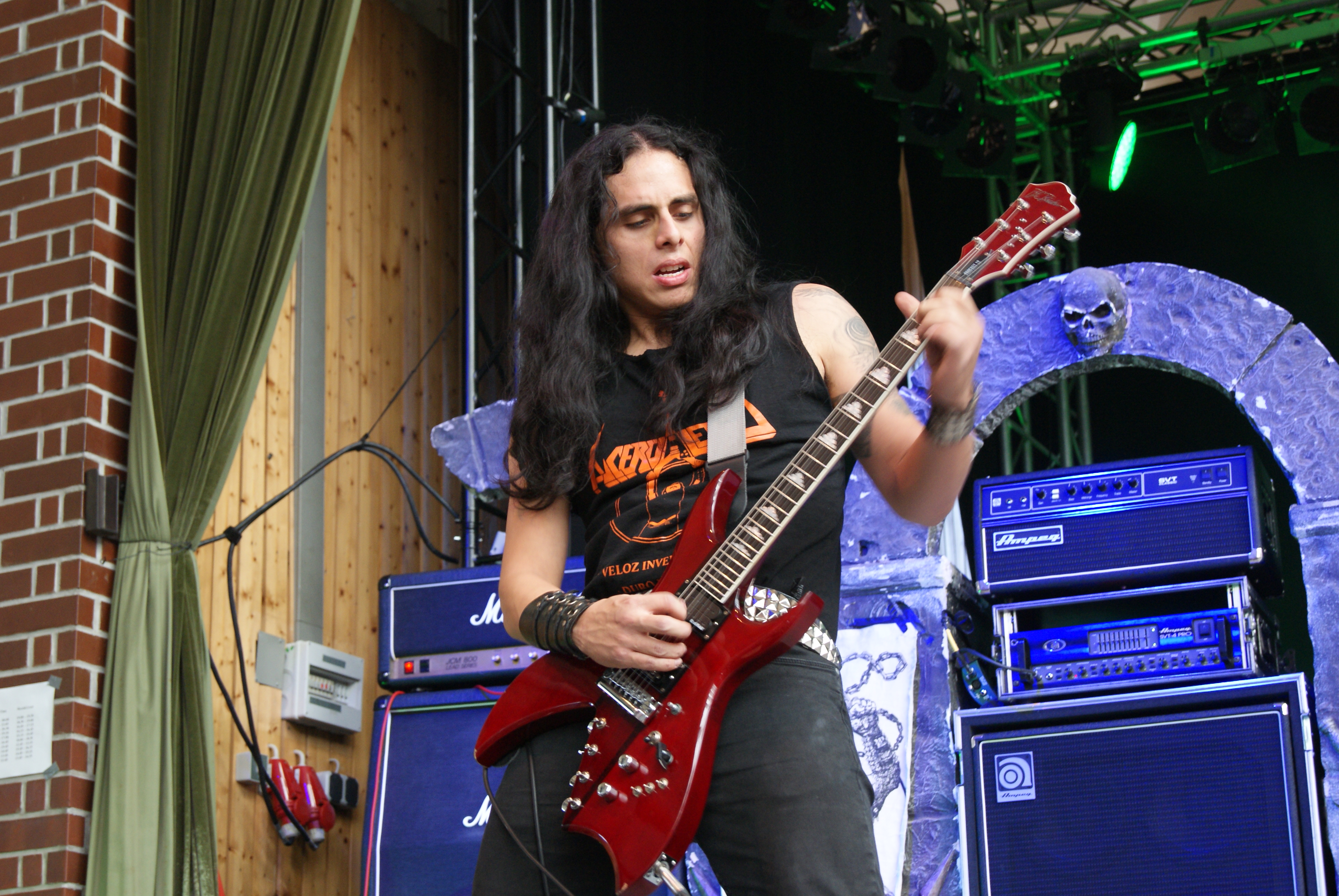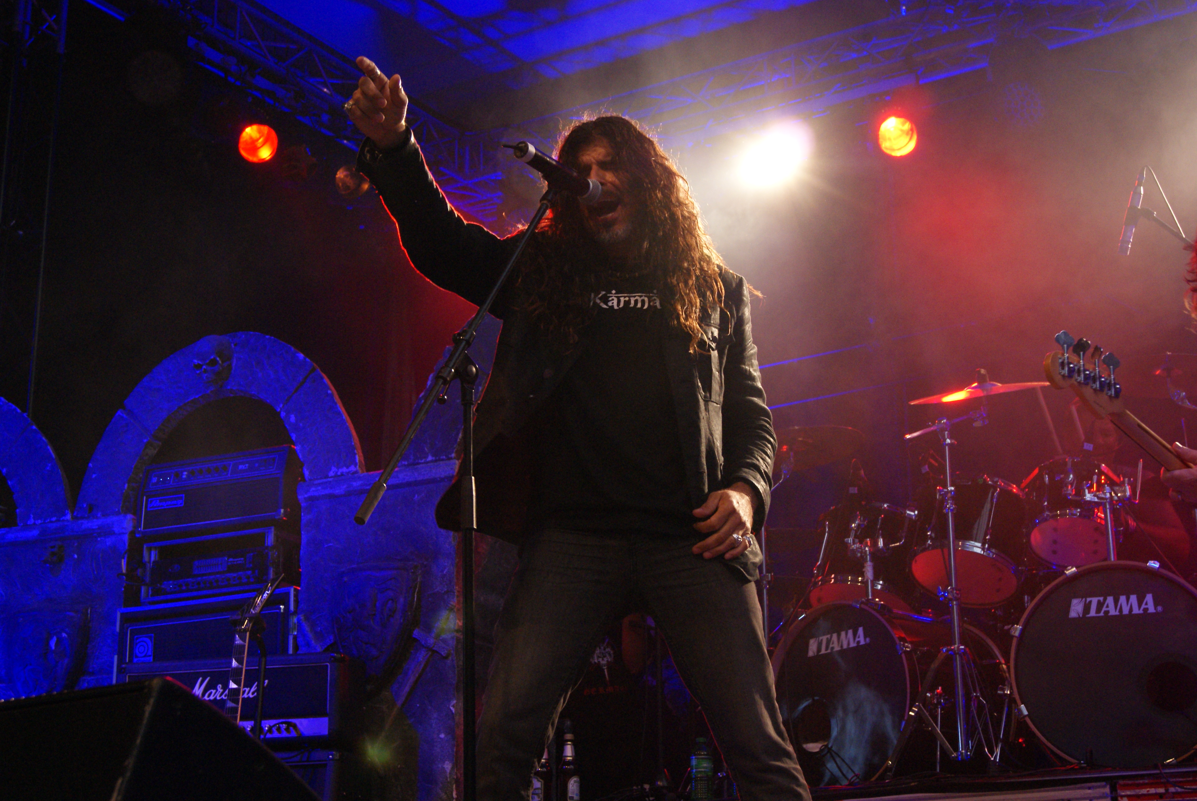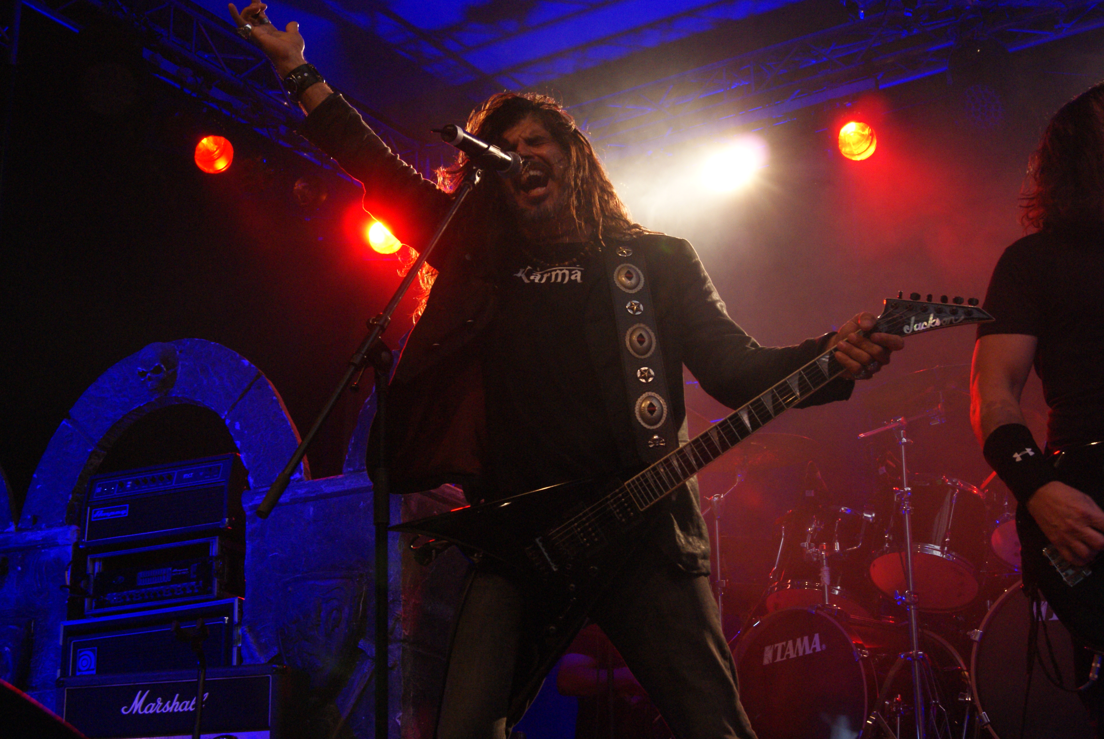Den Auftakt bildeten die Griechen SACRAL RAGE und begeisterten mit ihrem technischen Speed Metal vom Fleck weg. Zwar kamen einem sofort Namen wie TOXIK, REALM oder WATCHTOWER in den Sinn, trotzdem agierten die Jungspunde schon recht eigenständig. Richtig speziell wurde es als WATCHTOWER / HADES Frontmann Alan Tecchio die Bühne enterte, um mit den Hellenen den HADES Klassiker „The Leaders?“ zu schmettern. Der Mann kann es immer noch, wie er auch tags darauf mit HEATHEN’S RAGE unter Beweis stellen sollte. Die Einstimmung war also schon mal gelungen.