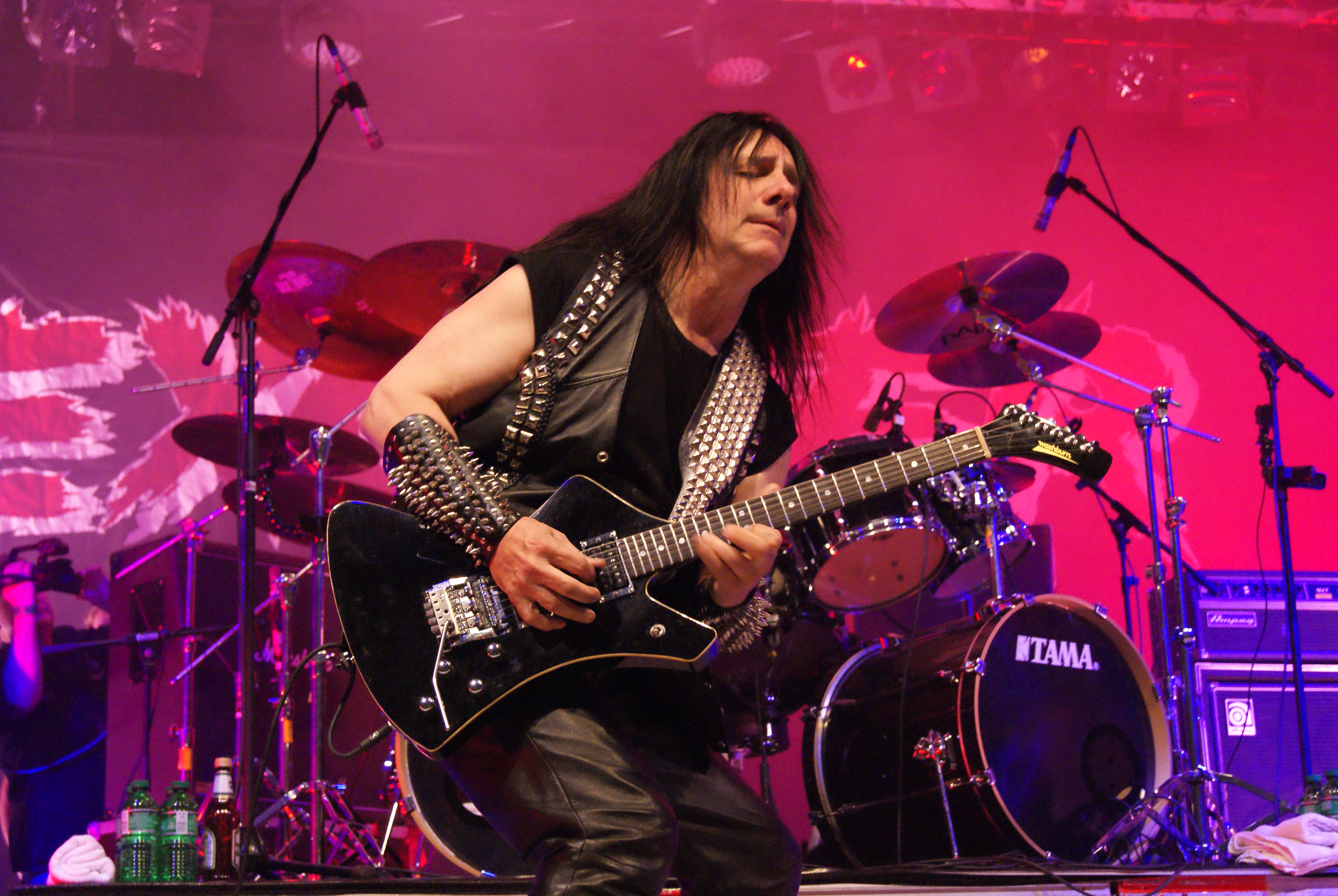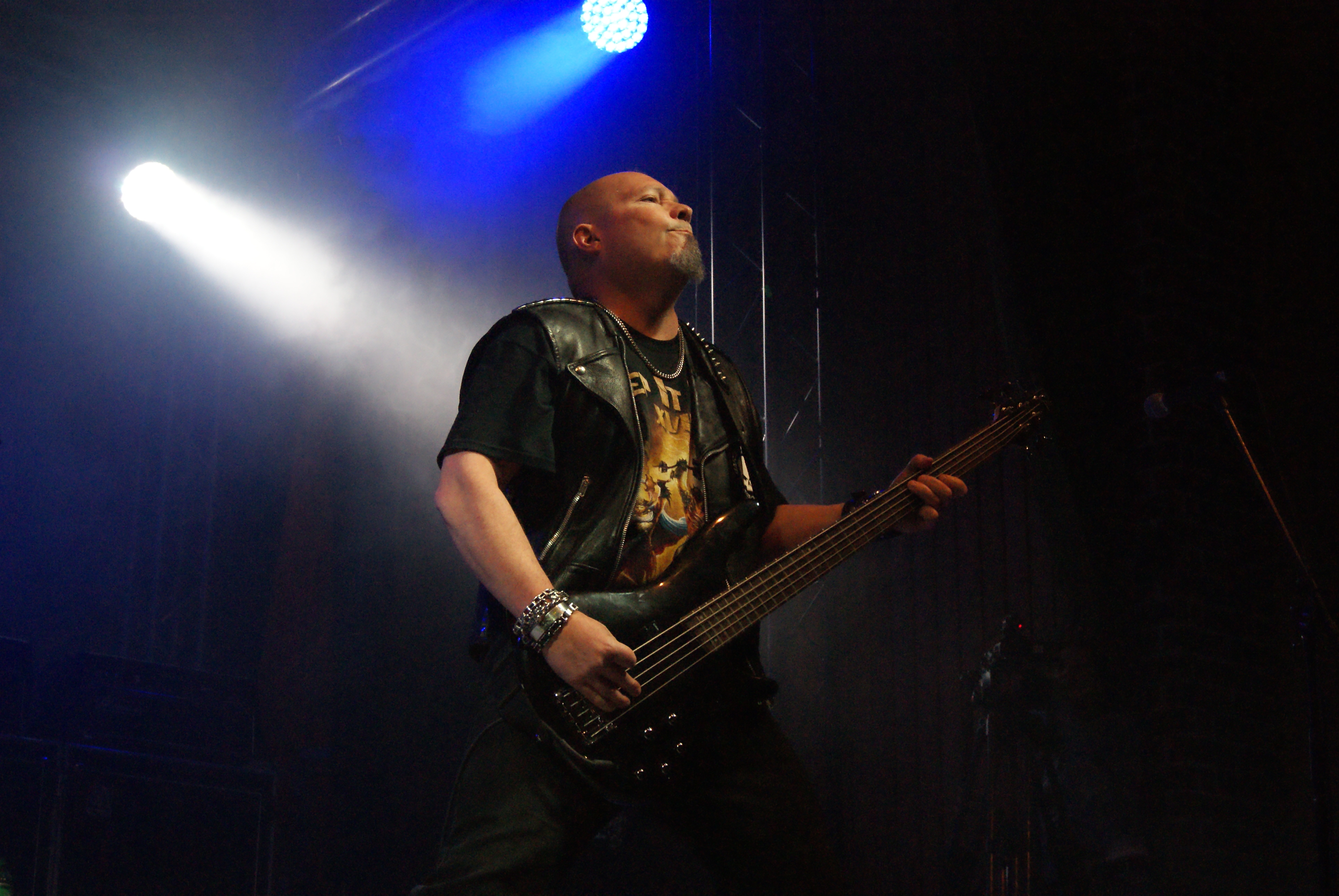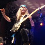 ...und zwar in Form der im Original Line-Up wieder vereinigten EXCITER. Während ULI JON ROTH durch Musikalität und virtuoses Spiel überzeugte, gab es bei den Kanadiern vor allem eines: auf die Glocke! Nach dem Intro „Fall Out“ ging es mit „Stand Up And Fight“ auch sofort in die Vollen und Gitarrist John Ricchie malträtierte sein Instrument in unnachahmlicher Art und Weise. Drummer und Sänger Dan Beehler hat sich seit '85 auch nur marginal verändert und schrie mit der gleichen Vehemenz, mit der er auf sein Schlagzeug einprügelte. Basser Allan Johnson bildete dazu den Ruhepol auf der Bühne. EXCITER holzten Klassiker auf Klassiker in die Menge. „Heavy Metal Maniac“, „Violence And Force“, „Victims Of Sacrifice“, „Pounding Metal“, „I Am The Beast“ oder “Long Live The Loud“. So viele Klassiker kann nicht jede Band vorweisen. John erzählte mir einmal, dass die wichtigsten Eckpunkte im Sound von EXCITER Aggression, Wut und Energie seien. Am heutigen Abend bewiesen EXCITER, dass dies keine Lippenbekenntnisse waren. EXCITER 2015 haben genauso viel Biss wie EXCITER 1985 und das ist aller Ehren wert. Auch wenn das Gitarrensolo -besonders nach dem ULI JON ROTH Feuerwerk- eher in die Kategorie „überflüssig“ gehörte, so waren EXCITER ein würdiger Freitags-Headliner, der in dieser Besetzung jede Bude dem Erdboden gleichmachen kann.