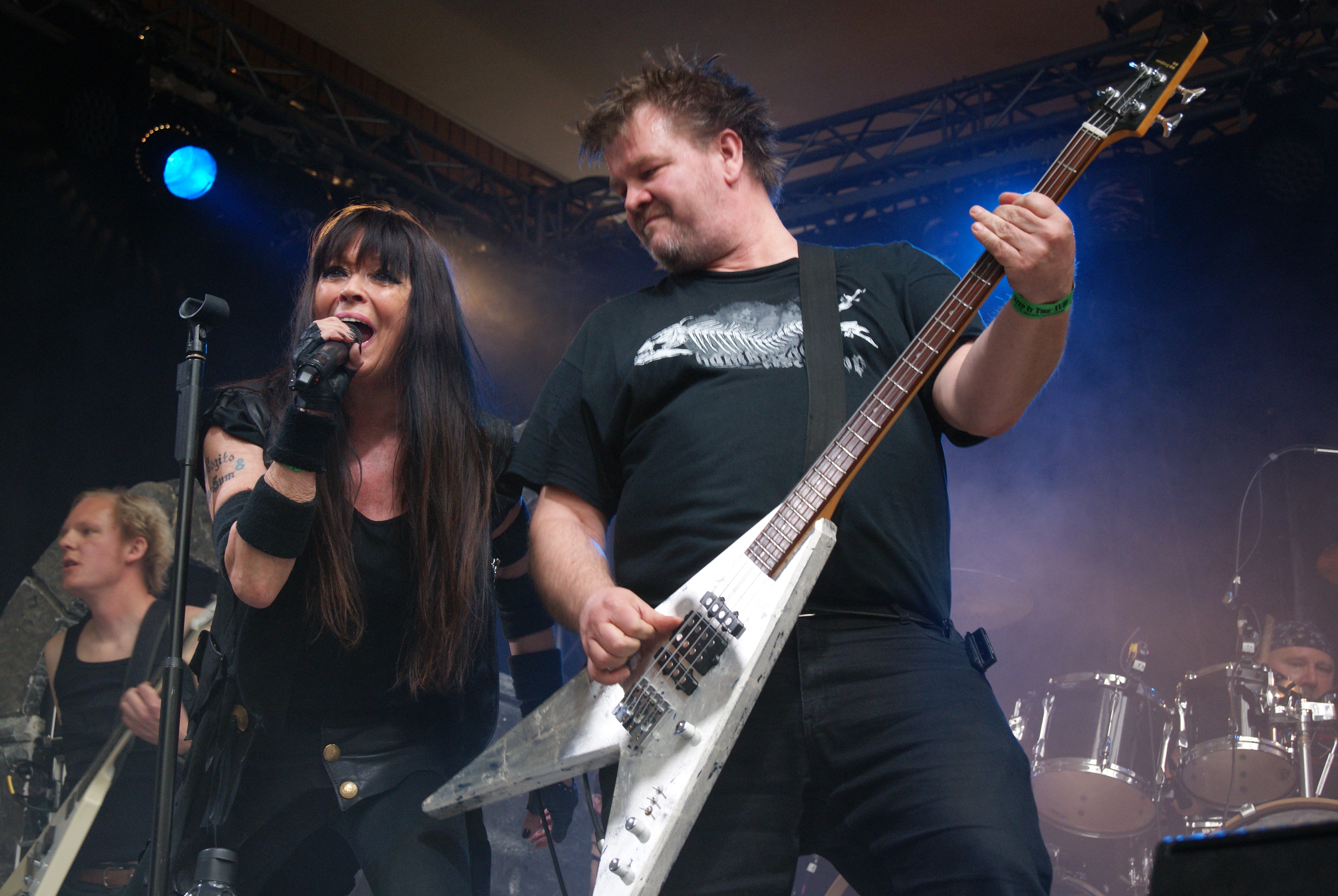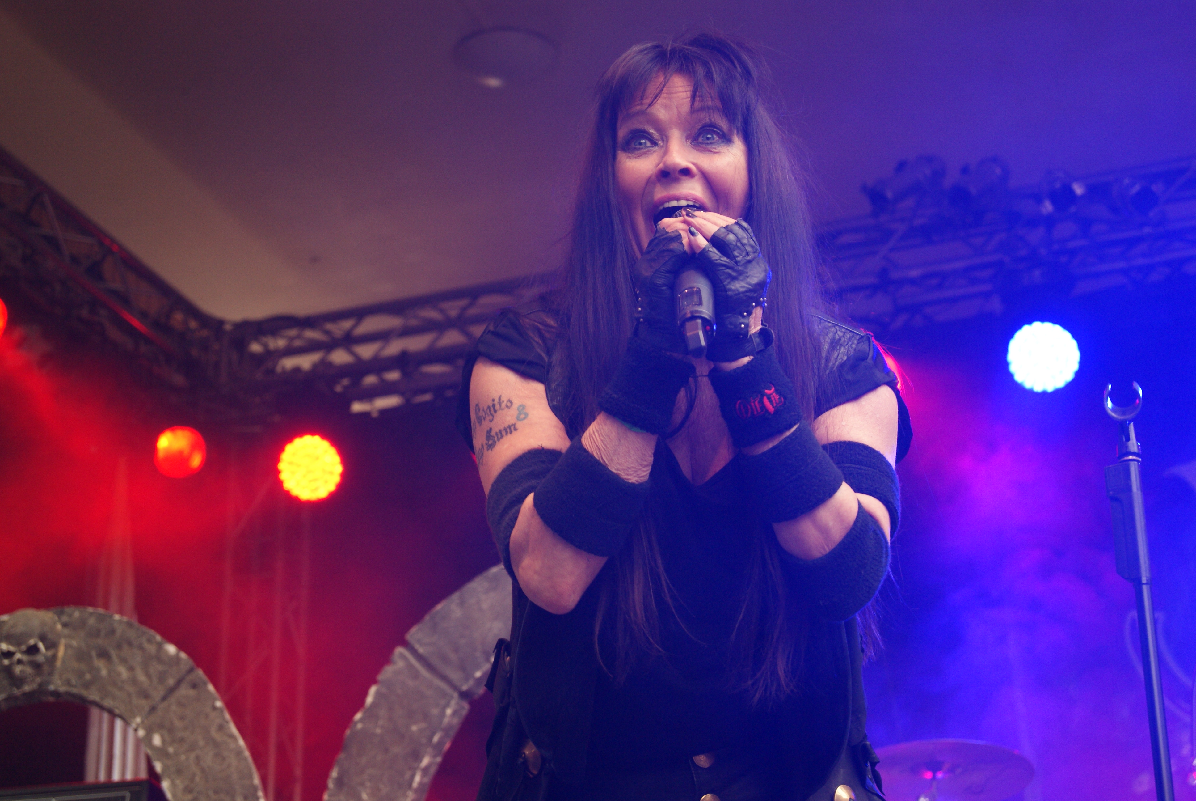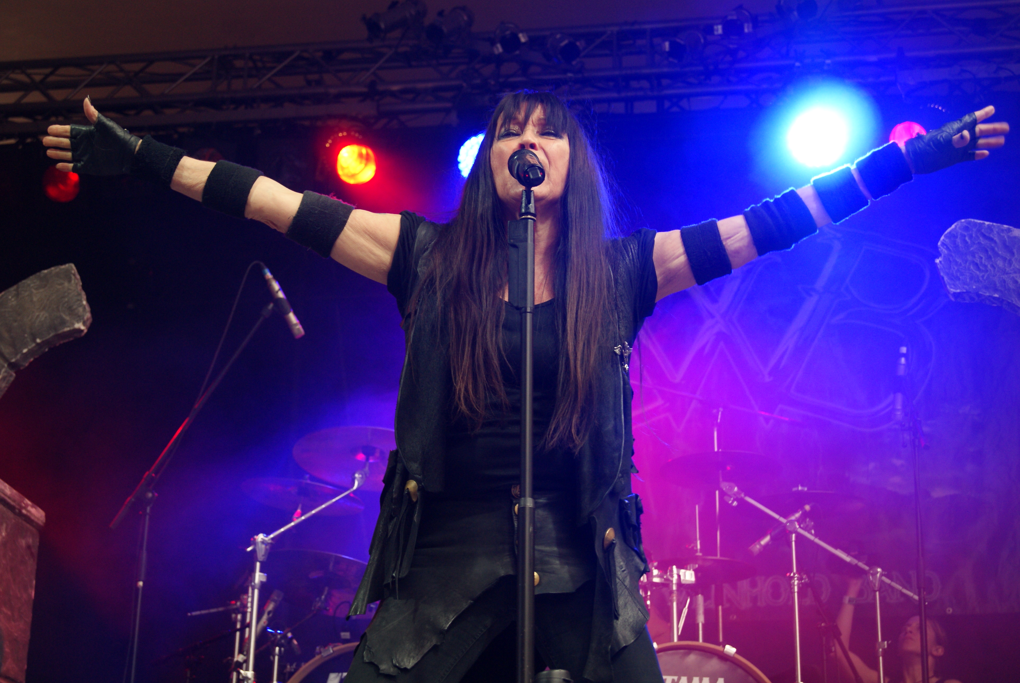Ohne jetzt disrespektierlich klingen zu wollen, aber als nächstes enterte die Großmutter des teutonischen Stampfmetals die Bühne zu Lauda. Mit abgesehen von Drummer Bubi im Vergleich zu letztem Jahr runderneuertem Line-Up lud JUTTA WEINHOLD ein, in die Welt ihrer Heldin ZED YAGO zu folgen. Naturgemäß kamen die alten Schoten auch hier am besten an. „Zed Yago“, „The Spell From Over Yonder“, „Revenge“ und natürlich der „Black Bone Song“ wurden begeistert mitgesungen. Zu letztgenanntem durften dann auch einige Fans zu Jutta auf die Bühne und mit ihr gemeinsam abrocken. Was diese Frau mit Ende sechzig noch für eine Energie und Stimme hat, nötigt mir wirklich großen Respekt ab. Jutta scheint in der Tat alterslos zu sein. Gerne wieder.