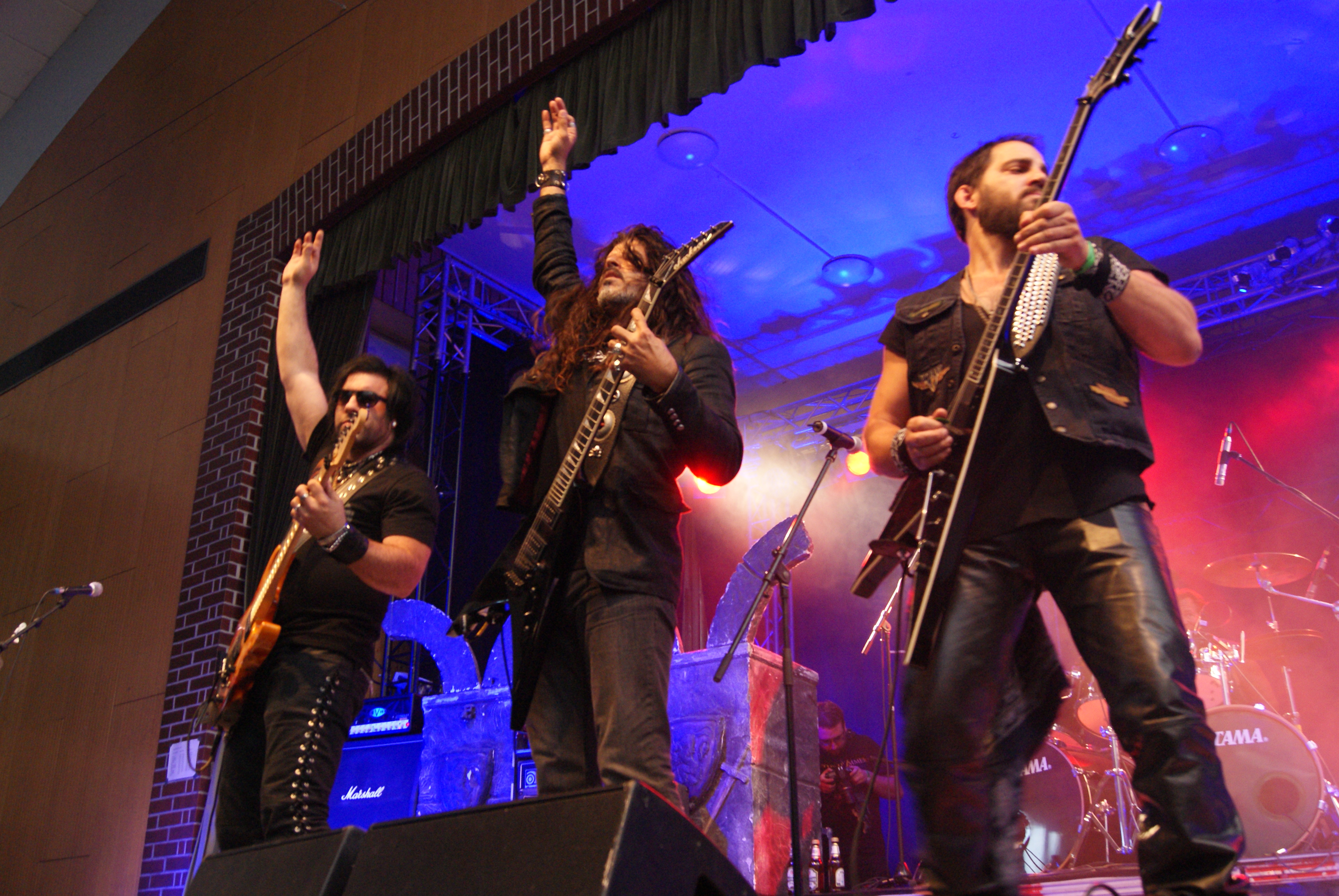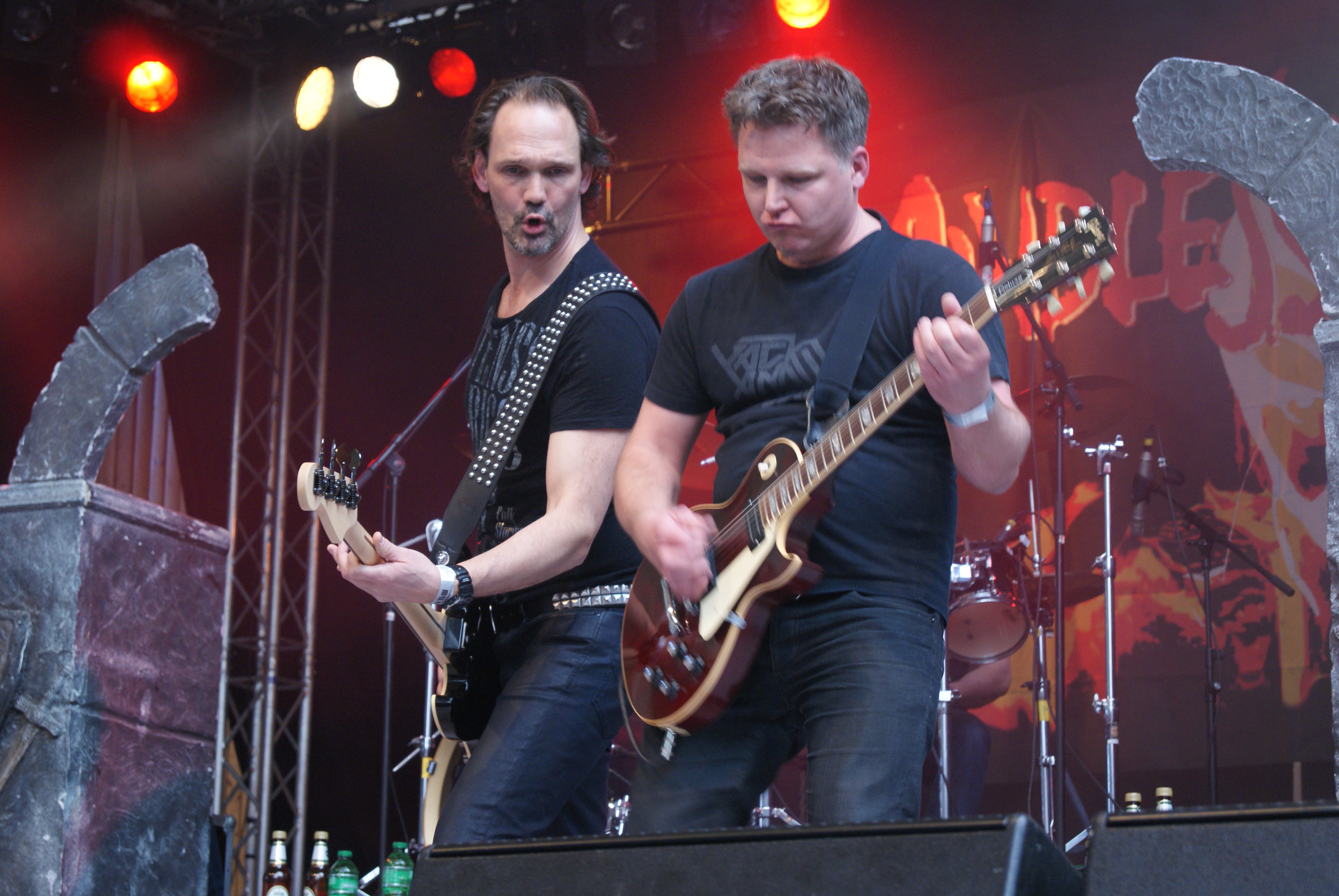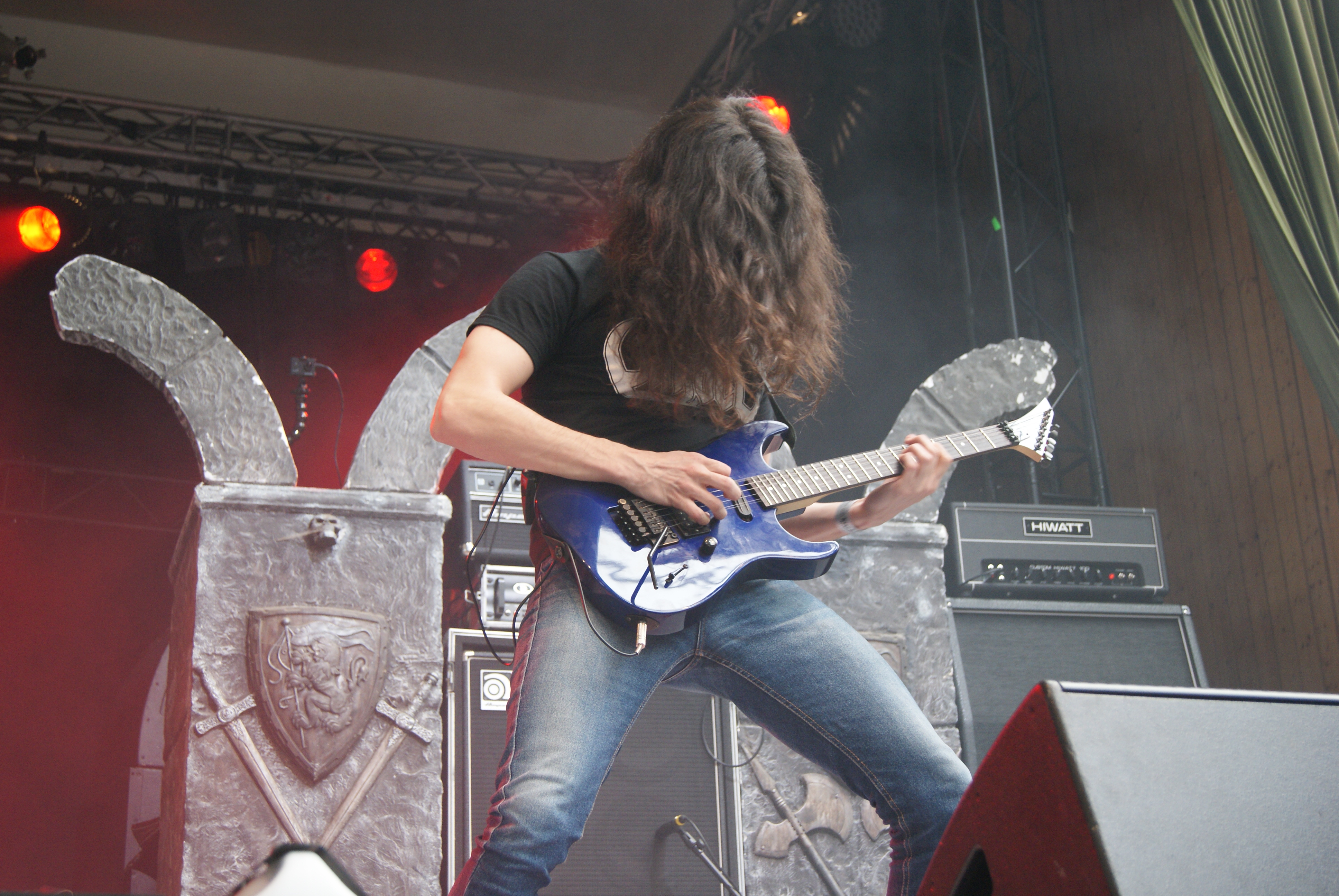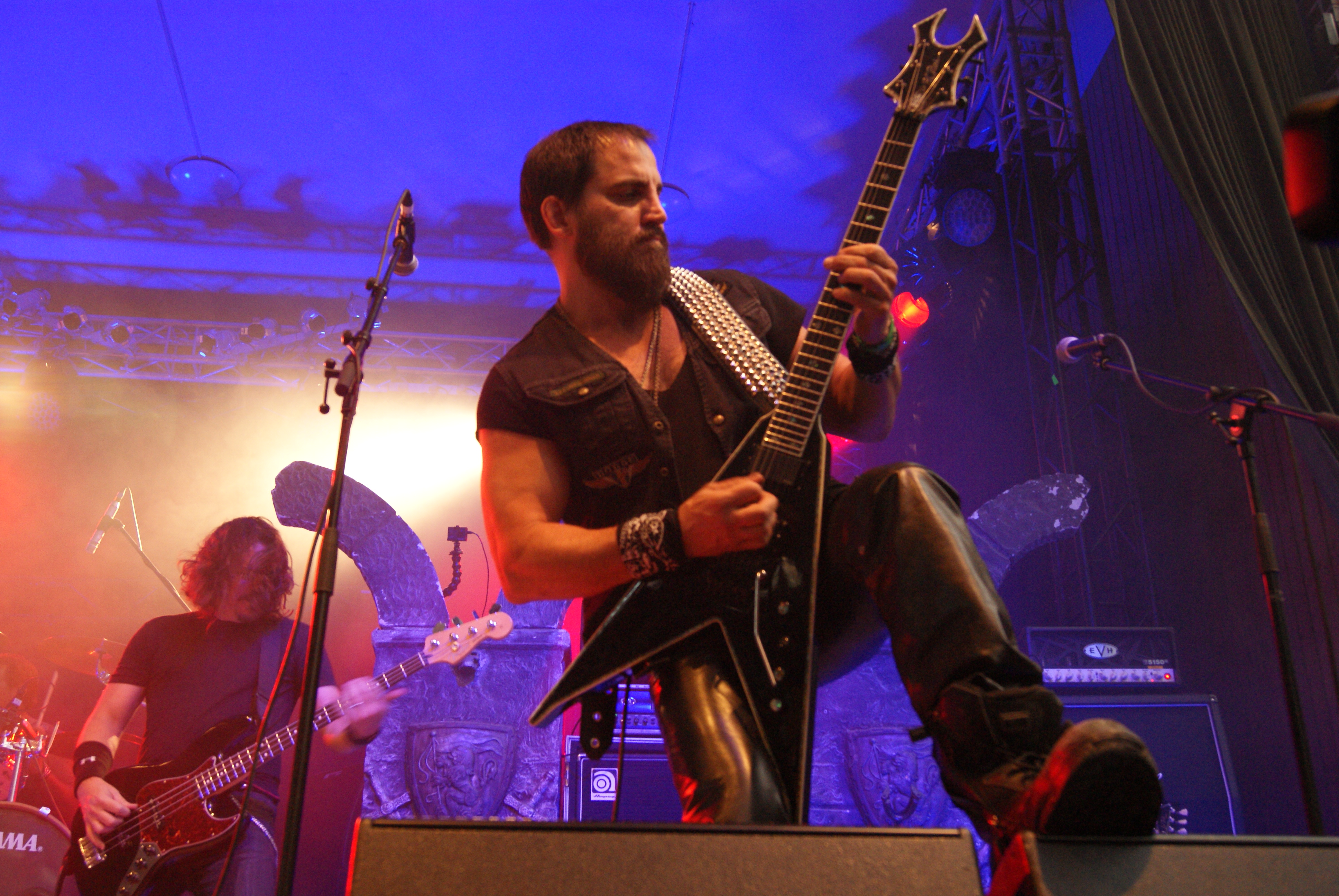 Die nun folgenden LEATHERWOLF waren nicht das erste Mal Gast in Lauda. Da sie aber nie enttäuschten und auf dem alten Kontinent eher selten zu sehen sind, dürfen sie auch gerne immer wieder kommen. Mittlerweile sind mit Sänger / Teilzeitgitarrist Michael Oliveri und Drummer Dean Roberts zwar nur noch zwei Originalmitglieder an Bord, aber auch die Neuen brachten ihre Parts überzeugend rüber. Perfekt eingespielt hauten LEATHERWOLF einen Klassiker nach dem anderen heraus. „Spiter“, „Rise Or Fall“, „Gypsies And Thieves“, „Street Ready“, “Princess Of Love“ oder die Megahymne „Thunder“ sind allesamt Klassiker des melodischen US Metals. Der niemals alt werdende Oliveri hatte sowohl Gitarre, als auch Stimme, als auch Publikum zu jeder Zeit voll im Griff und präsentierte sich als routinierter Frontmann der alten Schule. Einen Hauch von Kritik möchte ich aber doch loswerden: Warum hat eine Band mit 4 starken Alben in der Hinterhand nicht genug Selbstvertrauen um auf Cover zu verzichten? Statt eines (gut gespielten) „Victim Of Changes“ (JUDAS PRIEST) hätte es für mich lieber noch ein „The Hook“, „Magical Eyes“, „Black Knight“ oder „Take A Chance“ sein dürfen. Aber das ist Meckern auf hohem Niveau.