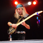 Die erste Liebe ist und bleibt doch immer etwas Besonderes. Meine erste Liebe waren die SCORPIONS und da selbige ihr Frühwerk in der Regel sehr stiefmütterlich behandeln (Auf der „Sting In The Tail“ Tour verirrte sich aus den 70ern nur „We'll Burn The Sky“ in den Set.) freute ich mich besonders auf den „SCORPIONS Special Set“ von Gitarrengott ULI JON ROTH. Es war allerdings ein Wunder, dass die Band überhaupt auftreten konnte, da sowohl der etatmäßige Bassist als auch der Sänger krankheitsbedingt ausfielen. Kurzerhand übernahm der dritte Gitarrist Niklas Turman beide (!!) vakanten Positionen und füllte sie geradezu sensationell aus. Trotzdem stand vor allem Mastermind Uli Jon Roth im Mittelpunkt des allgemeinen Interesses. Optisch wirkte er wie gerade den 70ern entsprungen und begeisterte mit hoch melodischem und filigranem Gitarrenspiel. Seine Fähigkeit zur Improvisation und seine sympathische Ausstrahlung ließen das Publikum gebannt vor der Bühne stehen und einige Kinnladen nach unten klappen. Songtechnisch wurde tief im Fundus der Hannoveraner gebuddelt. Neben Standards wie „Pictured Life“, „In Trance“ oder eben auch „We'll Burn The Sky“ kamen auch fast schon vergessene Perlen wie das von Uli gesungene „Sun In My Hand“ , „The Sails Of Charon“ oder das ebenfalls von Uli intonierte „Dark Lady“ zum Zuge. Den Abschluss bildete ein Cover von „All Along The Watchtower“ von BOB DYLAN. Der einzige Haken an diesem Auftritt war, dass mir spontan 5-10 weitere Songs einfallen würden, die ich gerne gehört hätte. Aber mehr war in der Zeit leider nicht drin und es sollte ja noch was kommen...