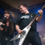 Als nächstes durften sich die PortugiesInnen THE UNHOLY beweisen. Ohne offizielle Veröffentlichung und nur mit einem Demo im Rücken ist es nicht alltäglich an zweiter Position auf einem renommierten Festival spielen zu dürfen. Aber THE UNHOLY erwiesen sich der Vorschusslorbeeren durchaus als würdig. Ihr klassischer, vom US Stahl der 80er beeinflusster Heavy Metal kam tight und fett von der Bühne. Man spürte besonders bei Sängerin Sara Steel die Freude und den Enthusiasmus am Auftritt vor den 2000 positiv Verrückten. Die sie begleitenden Herren hielten sich allerdings noch vornehm zurück und dürfen bei zukünftigen Auftritten gerne etwas mehr aus sich heraus kommen. Das sehr geschmackvolle RUFFIANS Cover „Run For Your Life“ setzte einem guten Auftritt dann die Krone auf. Sehr schön. Jetzt darf auch ruhig mal ein Album kommen.