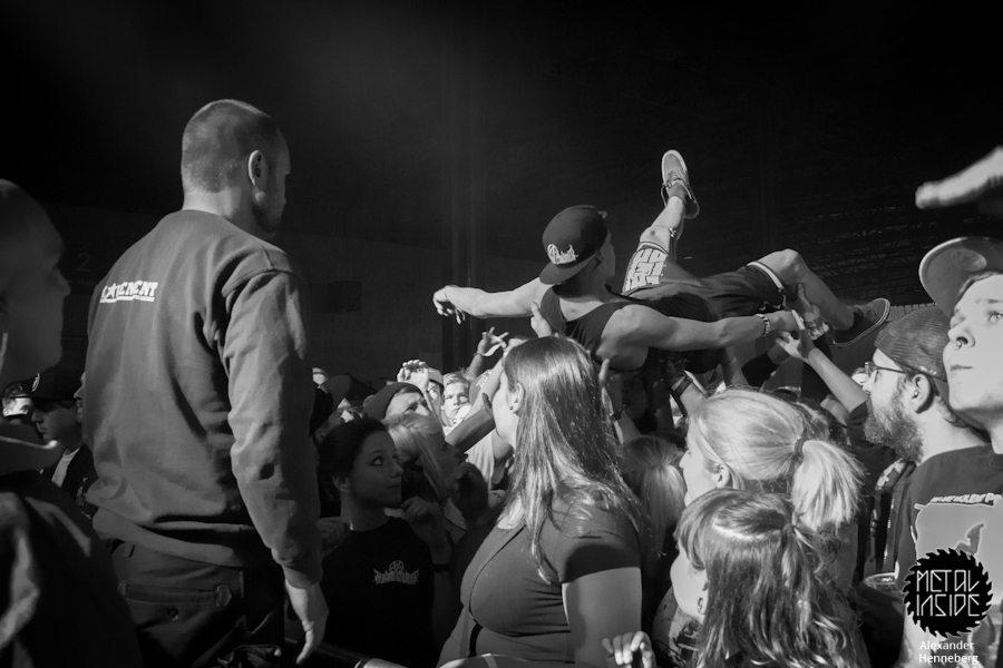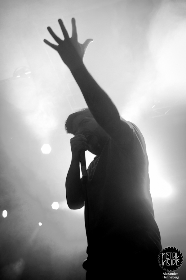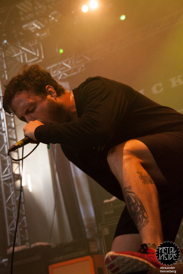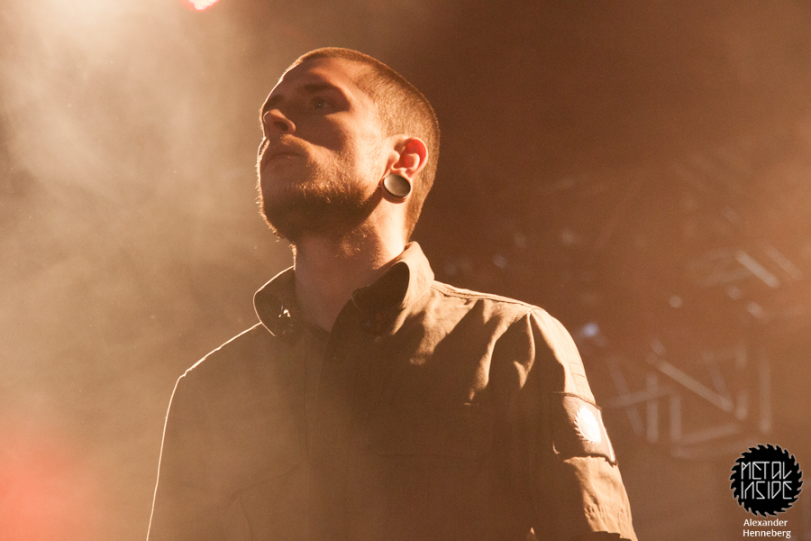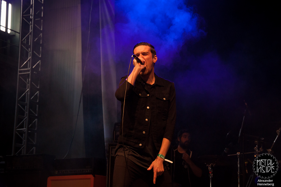 Joel Quartuccio, Frontmann von BEING AS AN OCEAN, nutzte im Anschluss bei Ihrem Auftritt die massiv an geheizte Crowd und ging auf Kuschelkurs direkt am Wellenbrecher. Während der ersten Songs hing er Wort wörtlich halb im Publikum und lies dabei keine Seite der Bühne aus. Gut für die Fans, aber eine schwierige Aufgabe für die starken Männer im Graben die auf ihn aufpassen und gleichzeitig Crowdsurfer abfangen mussten.