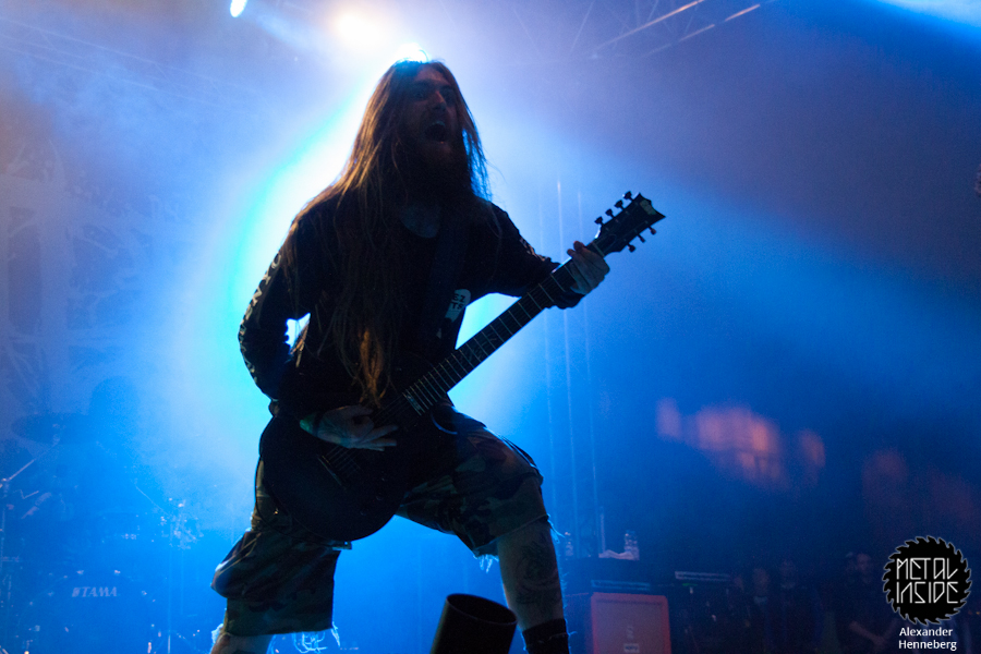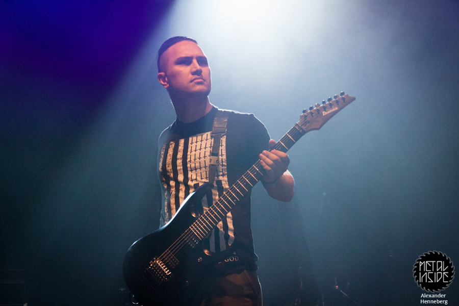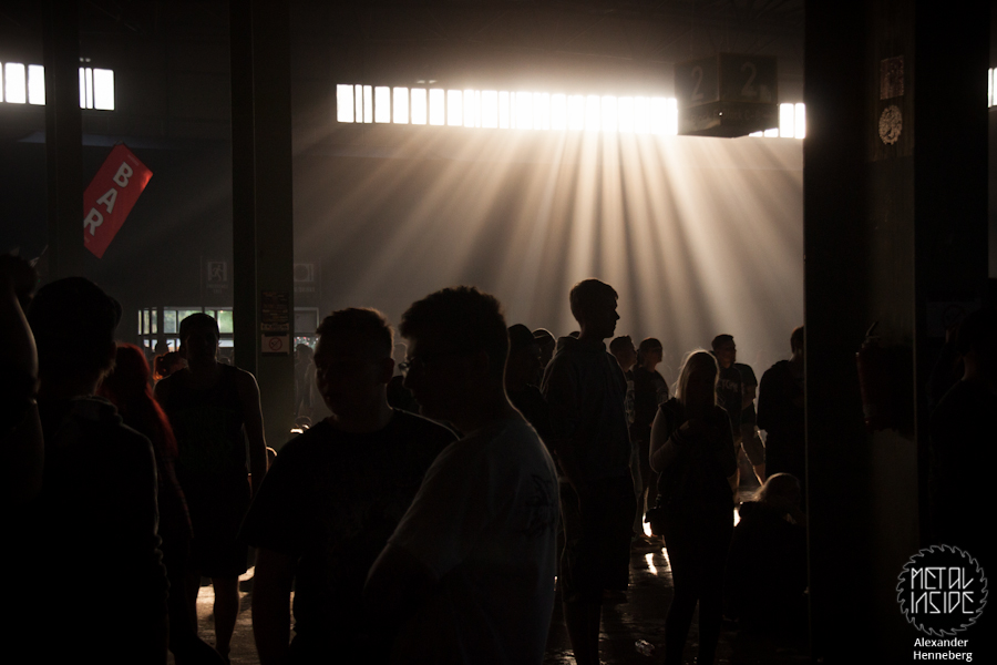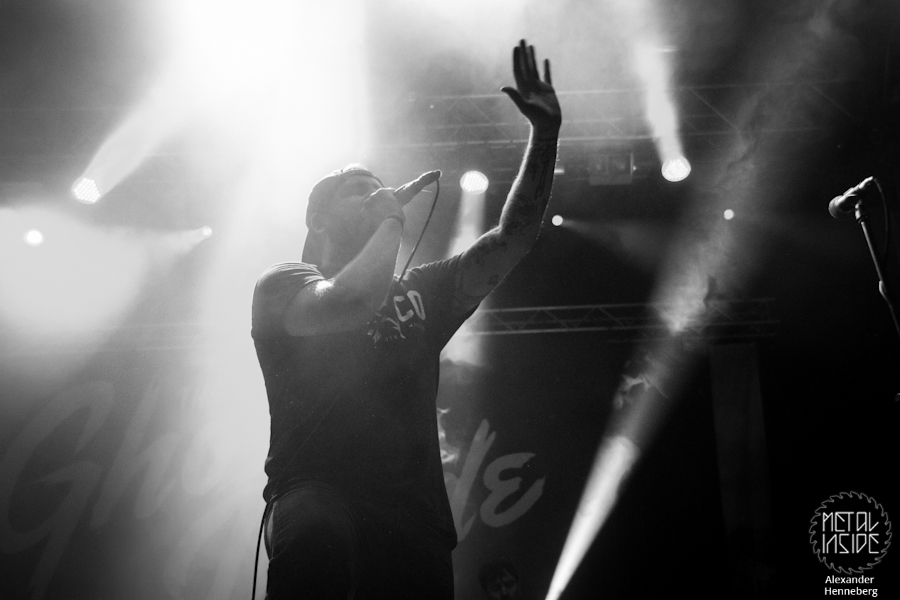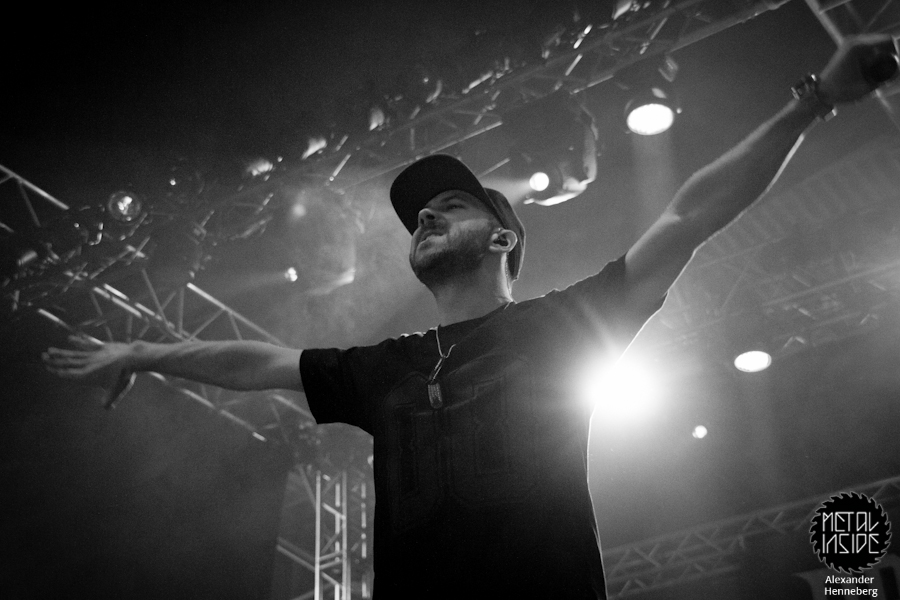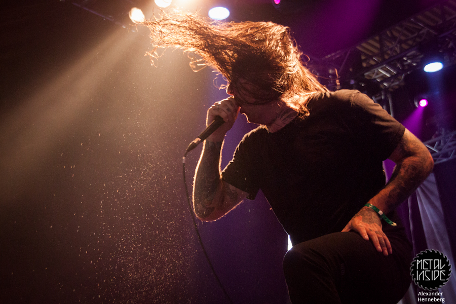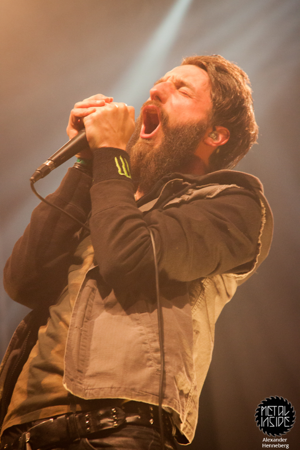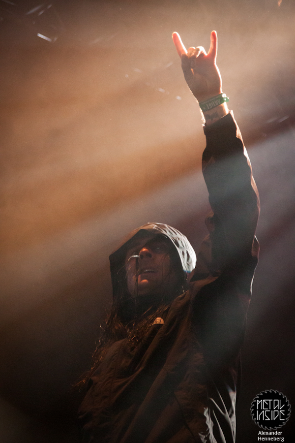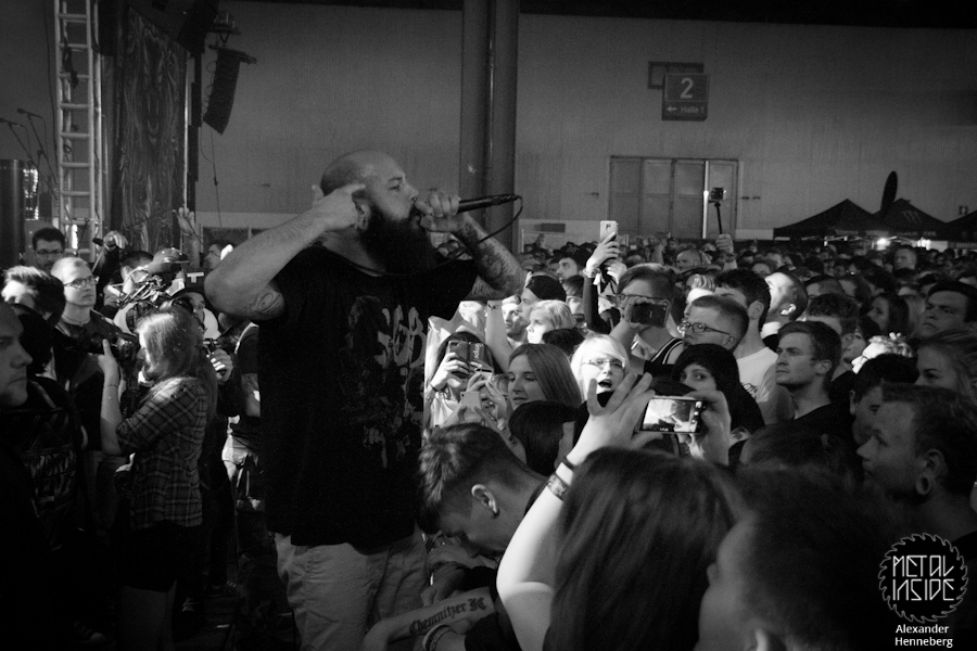 Eine der von mir am meisten erwartesten Bands waren dieses Jahr ganz klar SUICIDE SILENCE. Nach dem Tod von Mitch Lucker im Jahr 2012 war es eine ganze Weile still um SUICIDE SILENCE, was mich immer mehr befürchten lies, sie nie wieder zu sehen, doch fanden sie mit Hernan "Eddie" Hermida einen würdigen Ersatz. Natürlich sind sie nicht mehr dieselben und haben sich weiterentwickelt, das gehört nun mal dazu, aber sie haben sich in die richtige Richtung entwickelt. Nun stehen sie auch wieder auf der Bühne und zeigen ihre neu erlangte Stärke, ein Lichtspektakel, das sich sehenlassen kann inklusive. Da zeigte sich die Veranstalter die Running Order nochmal hätten überdenken sollten, denn THE GHOST INSIDE die anschließend spielten wirkten nun nur noch wie ein 45 minütiger Lückenfüller. Damit möchte ich nicht sagen, dass sie schlecht waren, ganz und gar nicht aber unterm Strich kamen sie einfach nicht gegen ihre Kollegen von SUICIDE SILENCE an auch wenn sie exzellent abgemischt waren und ihr bestes gaben. Der Tag sollte nun zum Abschluss mit CALIBAN enden, doch erst mal hieß es warten... und warten... und warten. Mit einer etwa 30 minütigen Verspätung erschienen sie auf der Bühne während wir Fotografen noch warten mussten, da es gleich zu Beginn eine Wort wörtlich feurige Begrüßung gab und angesengte Fotografen nicht auf dem Speiseplan stehen sollten. Als wir dann endlich in den Pressegraben durften, begrüßte uns eine hell erleuchtete Bühne im Endzeit/Apokalypsen-Stil. Die Band selber sah aber nahezu unverändert aus, außer Andreas Dörner, Sänger von CALIBAN. Inzwischen hat er einen ziemlich langen Flauschebart und seine eigentlich fast übliche Kurzhaarfrisur, denkt man sich allerdings einen Turban dazu, könnte man leicht verbotenes Denken, aber das sei bloß kritiklos in den Raum gestellt. Die Show selbst war gewohnt gut und kam überall gut an und spätestens mit "We Are The Many" hatten sie dann sowieso den letzten auf ihrer Seite, während es uns im Pressegraben, dank des "feurigen Temperament" der Bühne ordentlich kuschlig wurde.
