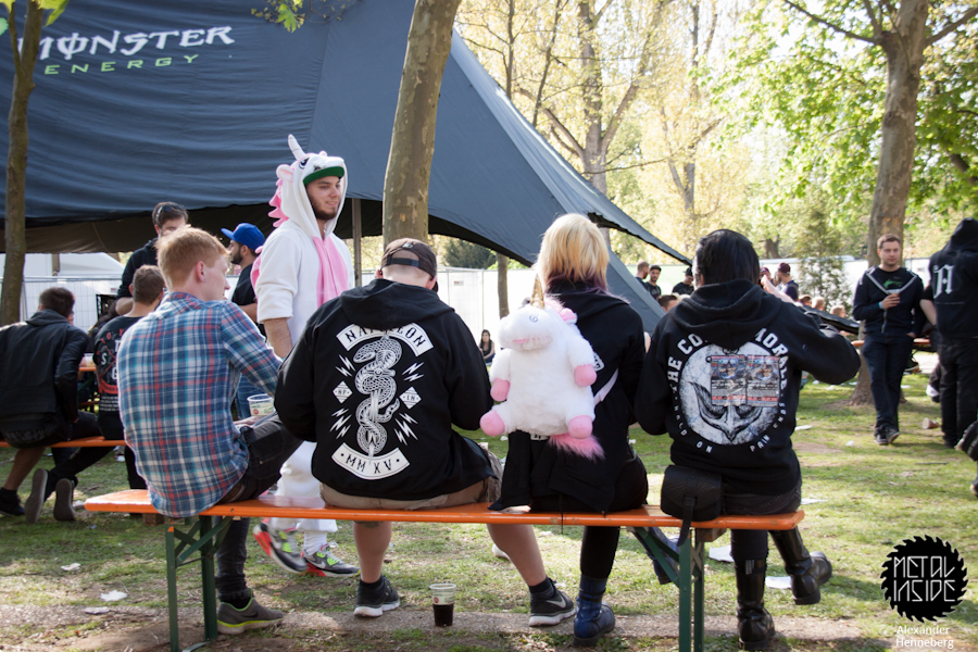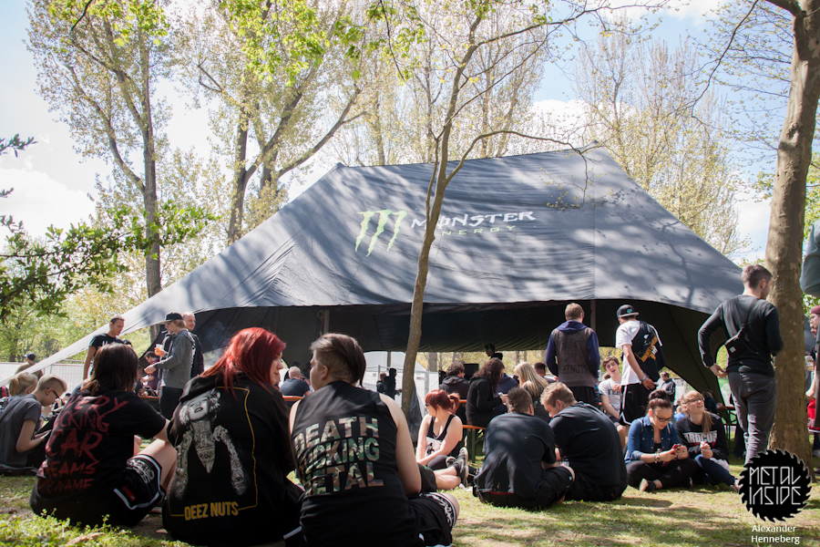 Die Zwischenzeit konnte man gut für eine kleine Pause außerhalb der Halle nutzen, die mit allerlei Fressbuden, einem großen Monster Zelt (wo leider fast nur Dubstep gespielt wurde was etwas nervte) und einigen Sitzmöglichkeiten gespickt war.