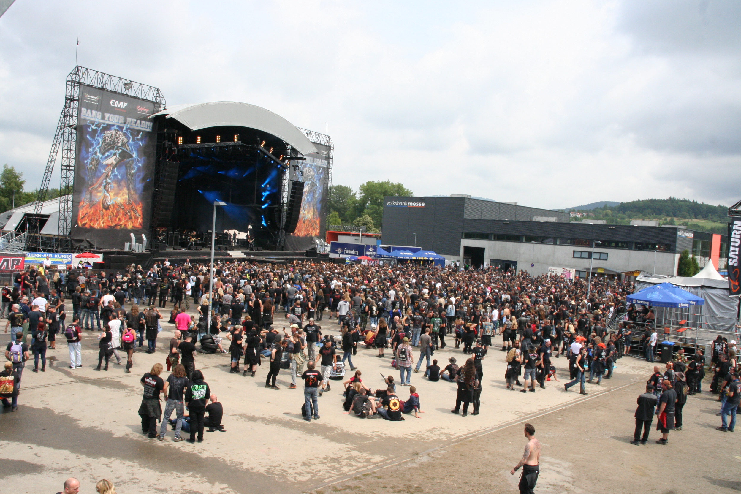Kaum ist das BANG YOUR HEAD Festival 2014 rum, ist die Vorfreude auf das Jubiläumsfest im nächsten Jahr riesig. Erstmals gibt es 3 Tage Festival Programm und ebenfalls amtliche erste Bandbestätigungen: Y&T, Primordial, Exciter, W.A.S.P., Tank, Pretty Maids und Morgana Lefay werden am Start sein. Doch bleiben wir zunächst beim vergangen BYH. Große organisatorische Überraschungen gab es heuer keine. Die gemütliche Festival Atmosphäre auf dem Messegelände zu Balingen zeichnen das BYH aus. Die Open Air Bühne wird bis 23 Uhr bespielt und danach steigen noch bis ca. 1 Uhr nachts Konzerte in der Messehalle. Das Essensangebot ist ausgiebig und besonders zu empfehlen sind die lokalen Spezialitäten die bis 18 Uhr in der Halle vom lokalen Gastronom angeboten werden (die Maultaschen sind der Hammer!). Getränke und Essen sind preislich nicht günstig aber im Rahmen – so wie man es auf den etablierten Festivals mittlerweile gewohnt ist. Das Wetter hat sich zunächst nicht von der besten Seite gezeigt hatte dann jedoch doch Erbarmen und so kamen wir größtenteils doch trocken von Show zu Show. Das gemischte Fanpublikum mit allen Altersklassen zeichnet außerdem das BYH aus. Somit gibt es nicht viel zu meckern – Balingen bleibt Balingen. 2015 kommt als Jubiläum 3 Tage plus 1 Tag Warm up und sollte somit als Vollbedienung ausreichen. (xhb)