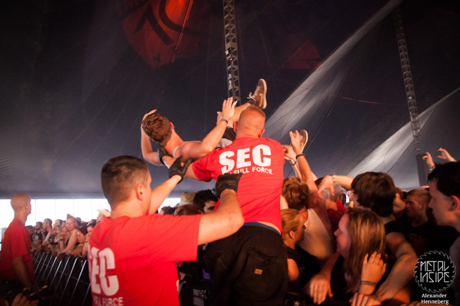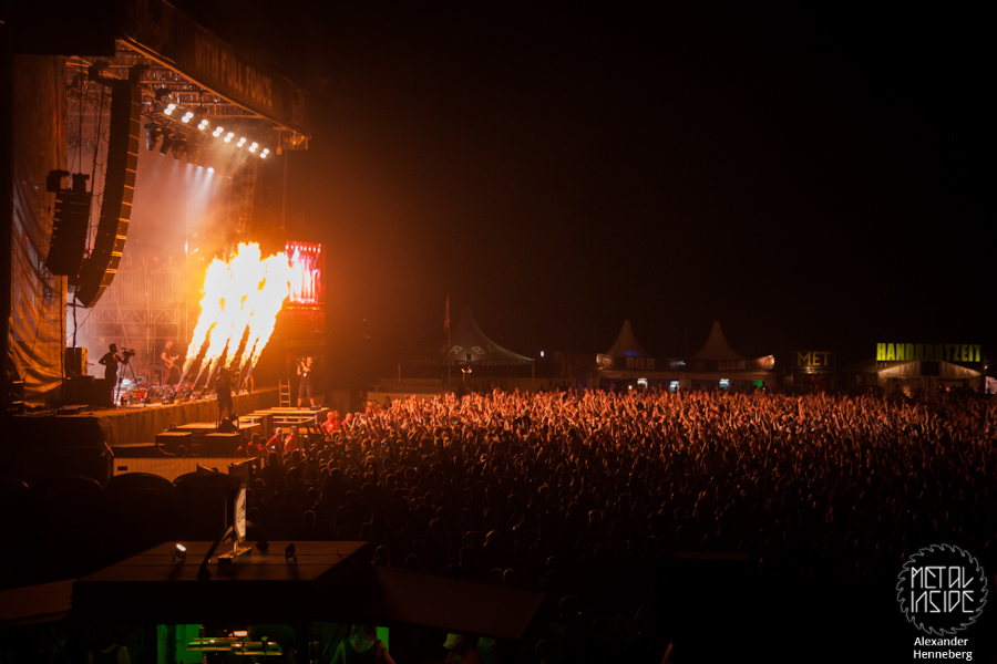 Selbst PARKWAY DRIVE schafften es nur knapp das zu überbieten und das obwohl sie die Headliner des ersten Tages waren. Nichtsdestotrotz war ihre Show ein Hammer- Licht, Explosionen, Feuer, eingängige und allseits geliebte Songs, alles war dabei. Es fanden sich selbst mal wieder ein Paar Idioten, die eine der riesigen Mülltonnen via Crowdsurfing nach vorn in den Pressegraben reichten, dass das ganze aber kreuzgefährlich ist interessiert dank Alkohol aber offenbar kein Schwein. Zum Glück ging die ganze Show gut aus und der Abend konnte ein ruhiges Ende nehmen.