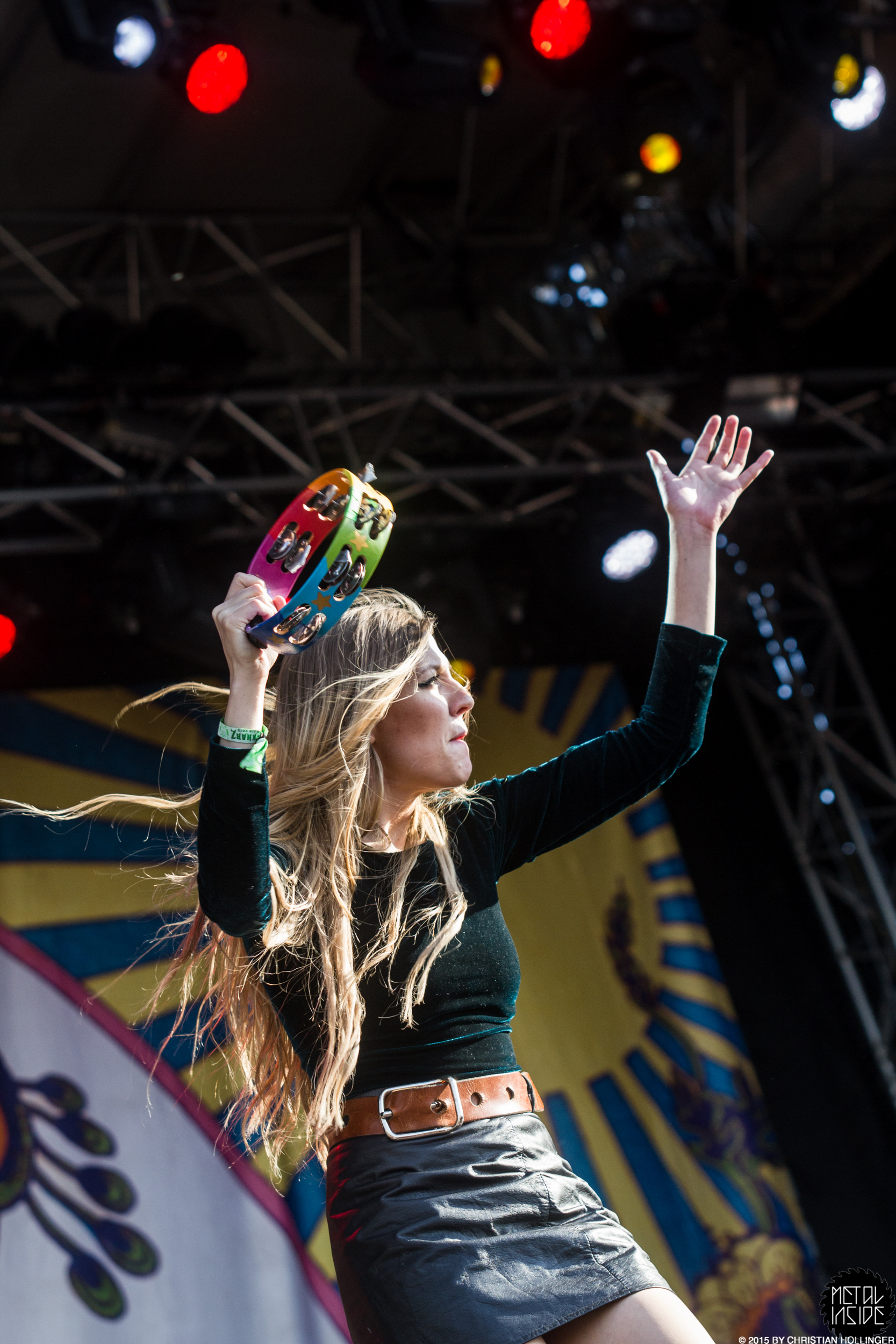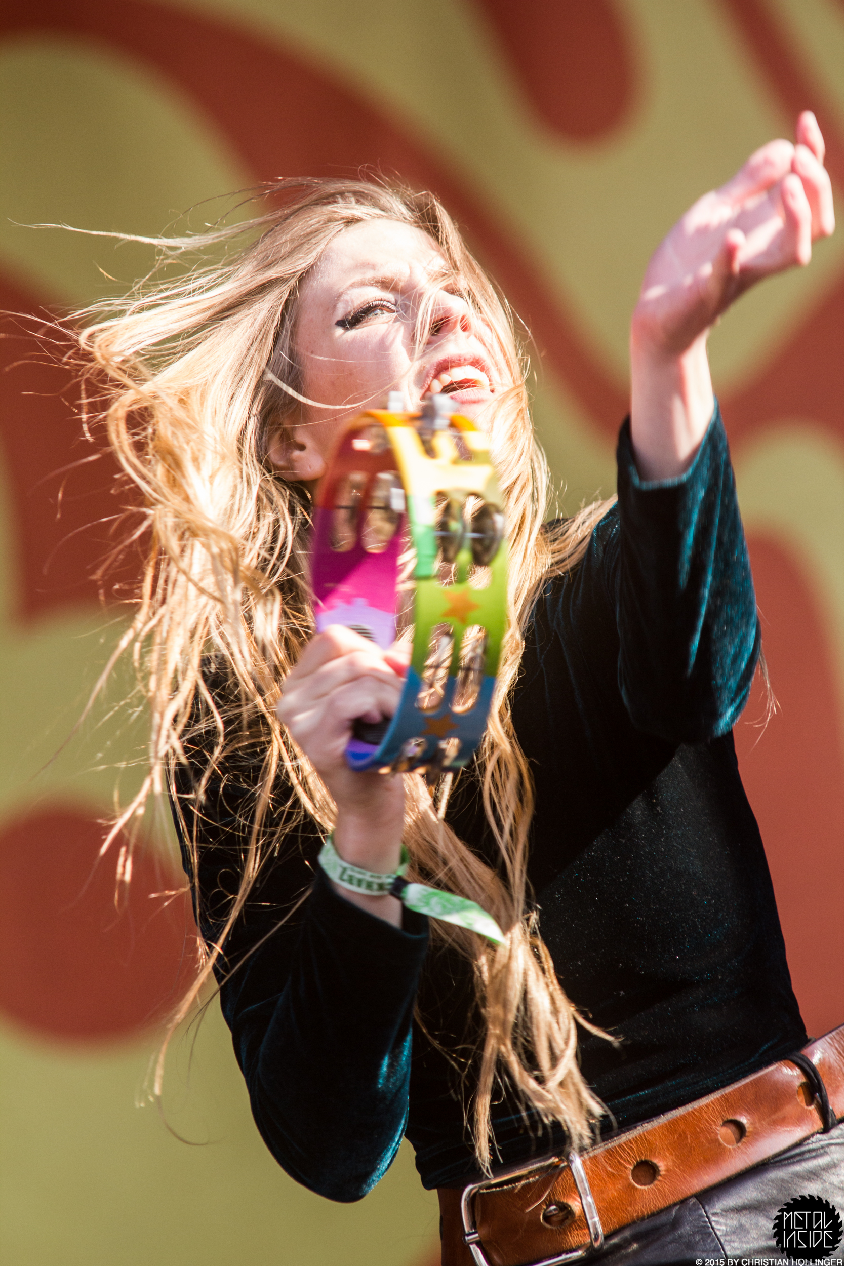 Musikalisch ging es um 18:45 mit einer Reise in die 70ger los – BLUES PILLS spielen! Die junge Formation hat es bekanntlich in kürzester Zeit in die Herzen vieler Fans von Retro Rock mit Blues Rock und Soul-Allüren geschafft. Frontfrau Elin Larsson hat es auch dieses mal wieder geschafft die Atmosphäre ihrer Platten (und hier darf man den Begriff ja auch mal guten Gewissens verwenden...) Live rüber zu bringen – und das gefiel der Menge auch. Es ist allerdings natürlich keine Moshpit-Musik die BLUES PILLS da zocken.