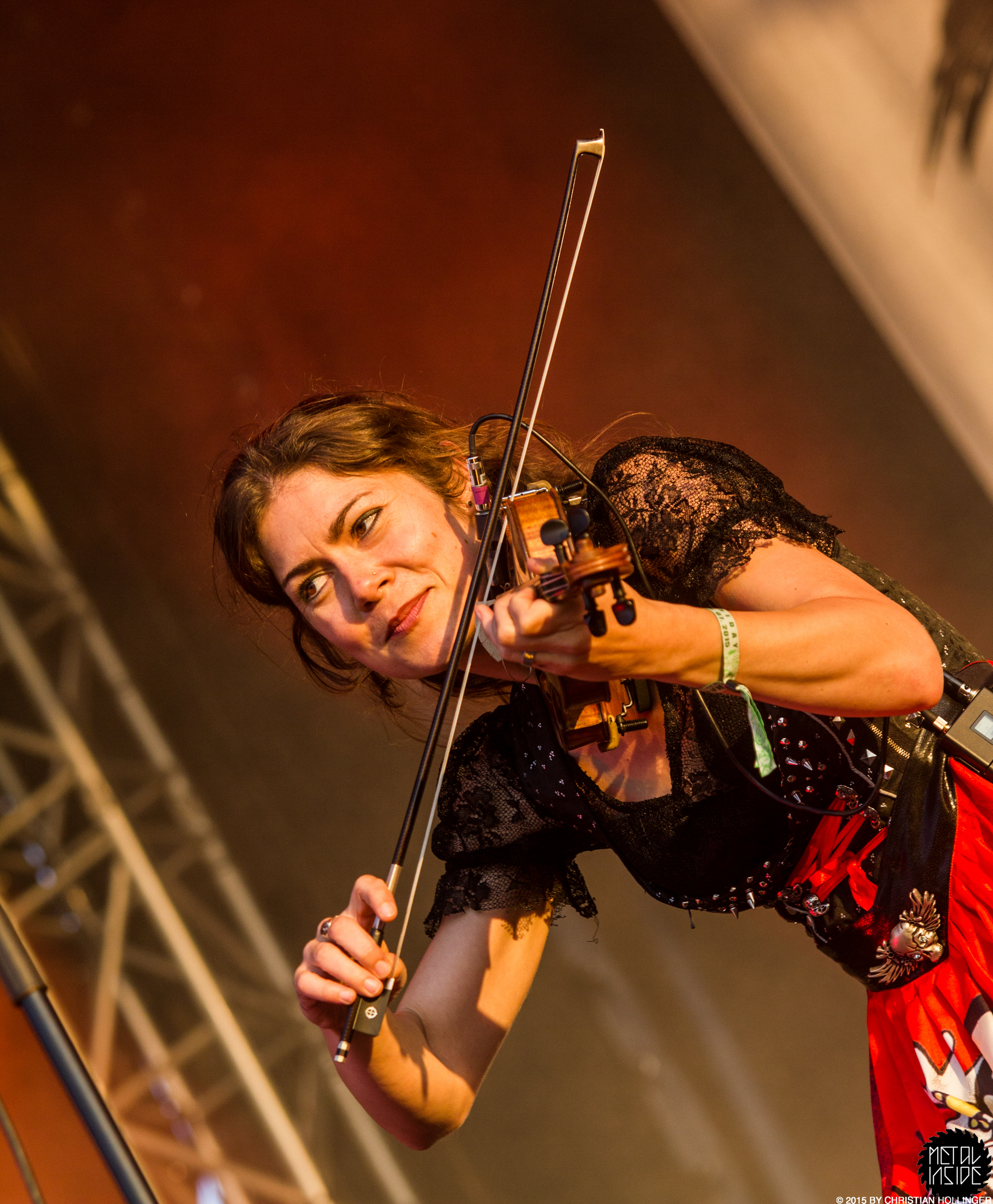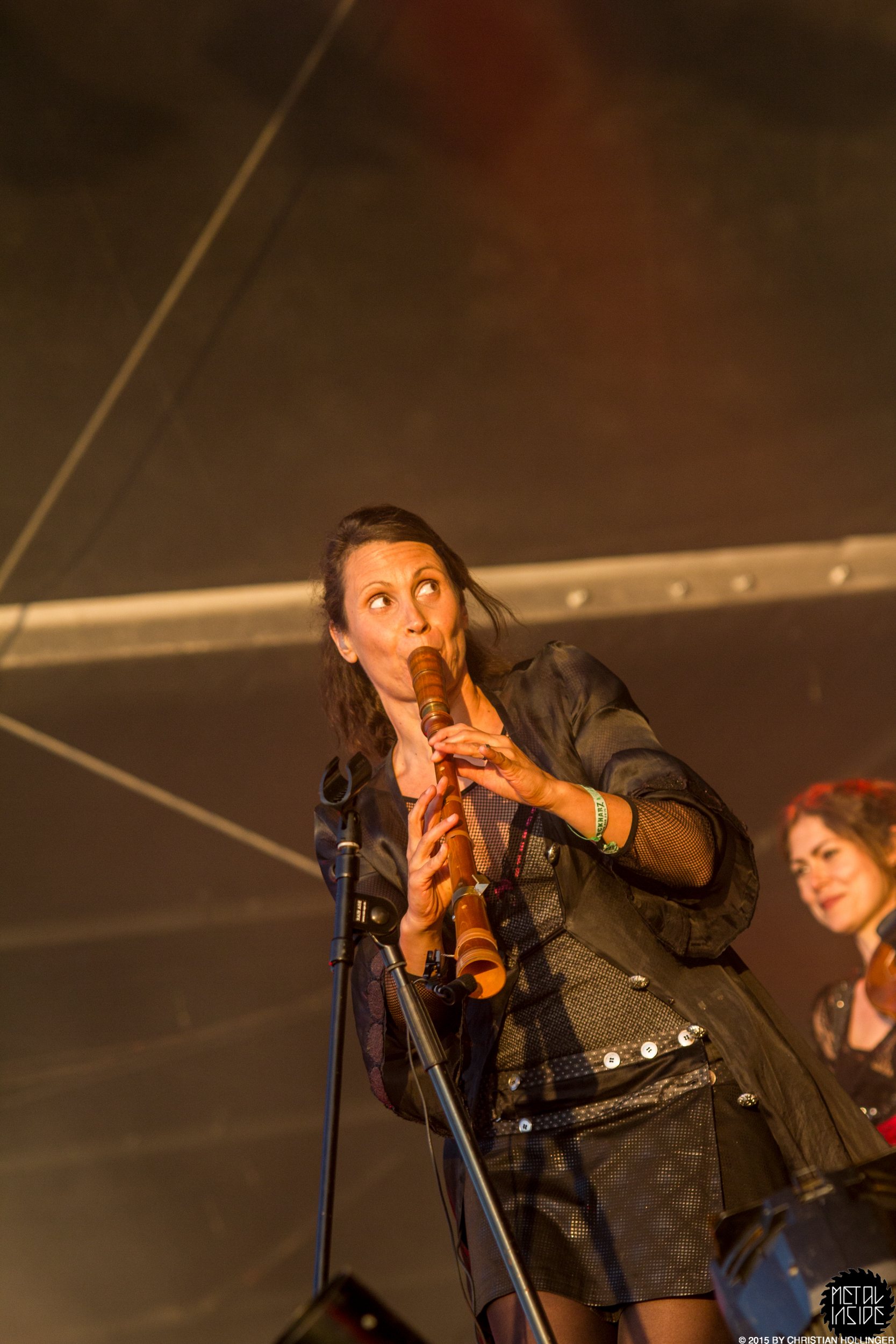 Etwas später (20:40) kam dann die Mittelalter-Truppe SCHANDMAUL auf die Bühne. Mit ihrem doch recht seichten, dafür aber sehr Party-tauglichem Folk heizte die musikalisch so bunt besetzte Truppe der Menge mit Songs wie „Des Teufels Weib“, „Die Letzte Tröte“ oder „Walpurgisnacht“ gehörig ein. So gehörig, dass die Menge bis weit auf den Platz hinaus steht und feiert – fast ein bisschen wie ein Mittelaltermarkt in groß. Und mit mehr Metalheads. Und mehr Stimmung.