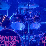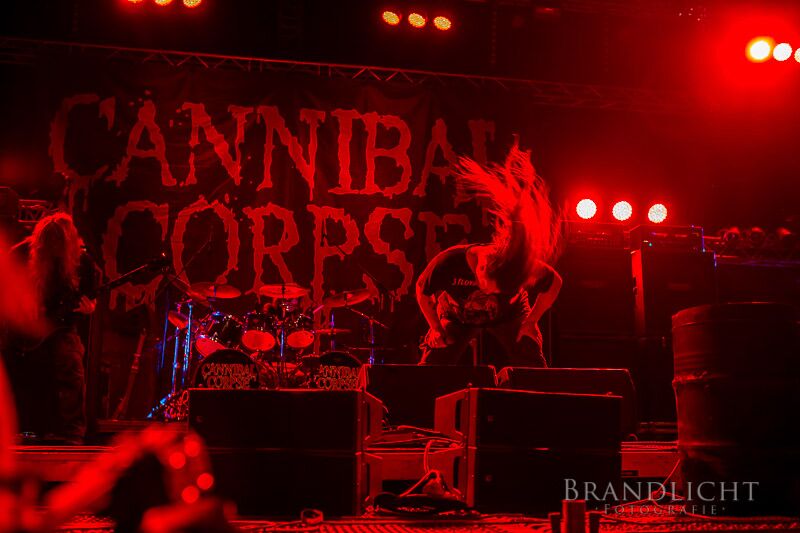 War ich ja zu Ensiferum friedlich entschlummert, war ich zu CANNIBAL CORPSE wieder schlagartig wach. Wer mit ner Nummer wie Scourge of Iron in seinen Auftritt startet, bekommt David nich nur wach, sondern auch fix vor die Bühne. Ich war zwar amtlich im Eimer, aber zumindest von hinten in „Alter Sack-Manier“ den Headliner nickend zu sehen, ging grad noch. CANNIBAL CORPSE merkt man ihre jahrelange Routine klar an, ohne das es aber öde wird........wenn man das Getrümmer der Jungs denn mag. George Corpsegrinder/The Neck Fisher röhrte in sein Mikro wie man es erwartete, Alex Webster und Co liessen ihre Finger über die Seiten flitzen und Paul Mazurkiewicz verhaute sein Drumkit als wenn es ihm den Lutscher weggenommen hätte. Mit Songs wie „Evisceration Plague“, „Sentenced to Burn“; „Make them Suffer“ und den Rausschmeißern „Hammer Smashed Face“ und „Devoured By Vermin“ im Gepäck, kann man aber auch nichts falsch machen. Headlinerslot absolut berechtigt! (dl)