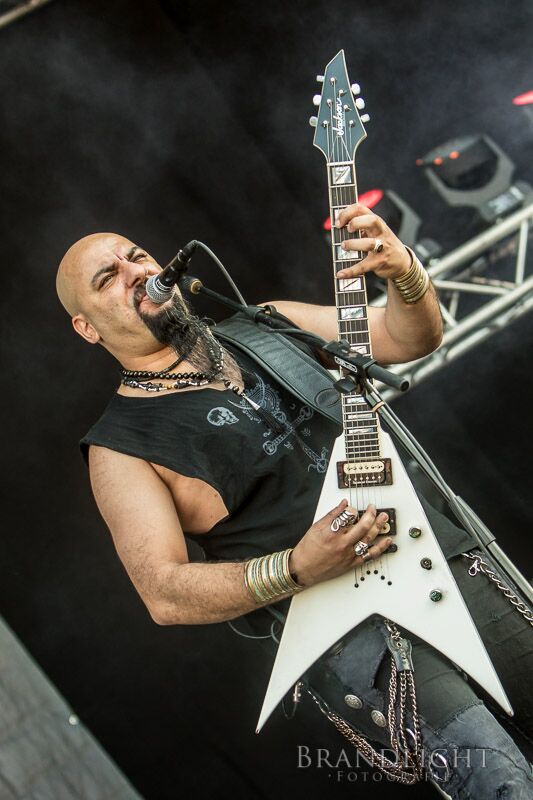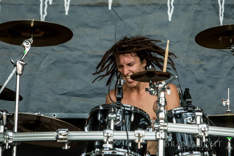 Währen Rouven sich zu den letzten Tönen von Speedbreaker die Birne tüdelig schüttelt, machte ich mich auf den Weg zu MELECHESH, um den Beginn dann auch prompt zu verpassen.....verdammte Merchandiseeinkäufe. Aufgrund der immer noch vorherrschenden Temperaturen, hatten die Jungs ihren Tagelmust schon nach dem ersten Song abgesetzt und leider etwas mit dem sehr wummernden Sound zu kämpfen. Ihre feinen, orientalischen Melodien gingen oft im sehr dominanten Drumsound unter, was der Soundmann aber zum Glück im Laufe des Auftritts besser in den Griff bekam. Ich habe MELECHESH erst bei ihrem Auftritt mit Tribulation in Bad Oeynhausen Anfang des Jahres für mich entdeckt und kann deswegen (noch) nicht auf einzelne Songs eingehen, aber auch dieser, zum Ende hin besser werdende Auftritt, bestärkt mich darin mich weiter mit ihnen zu beschäftigen. (dl)