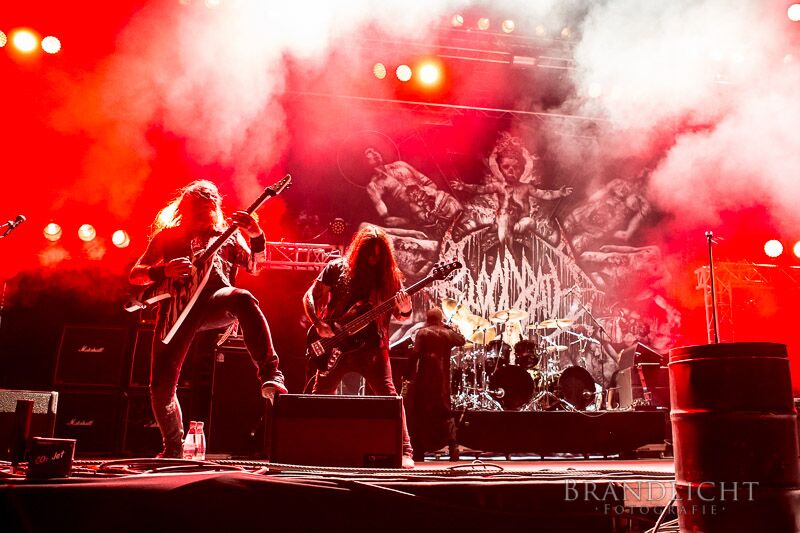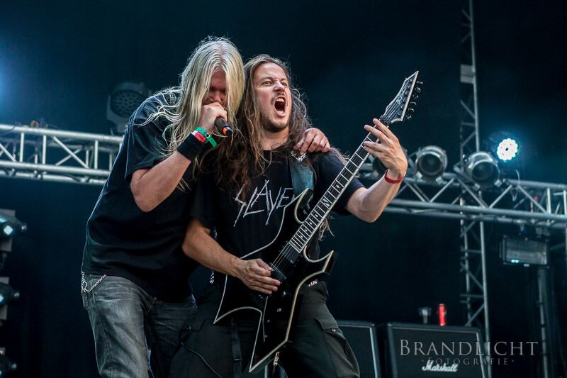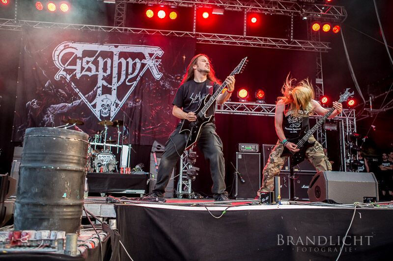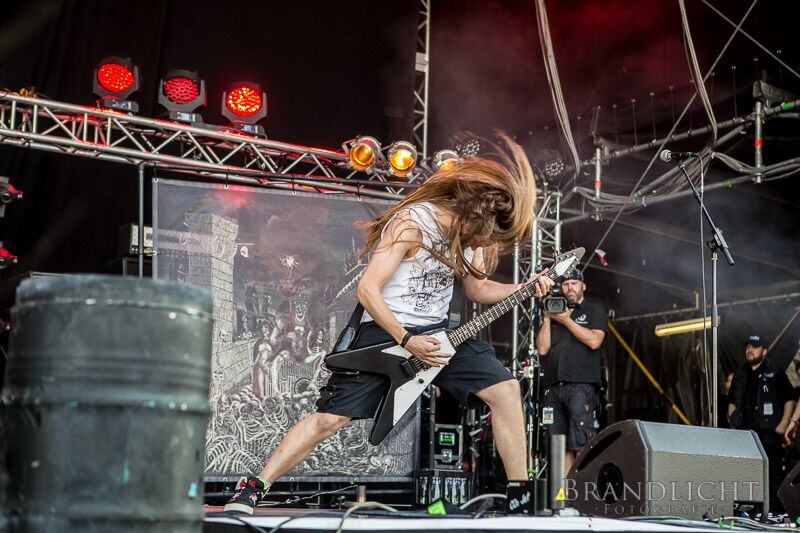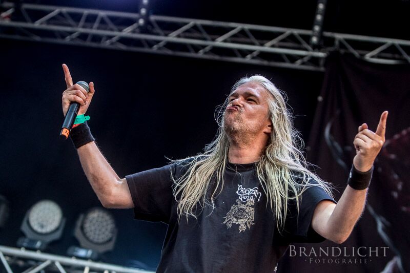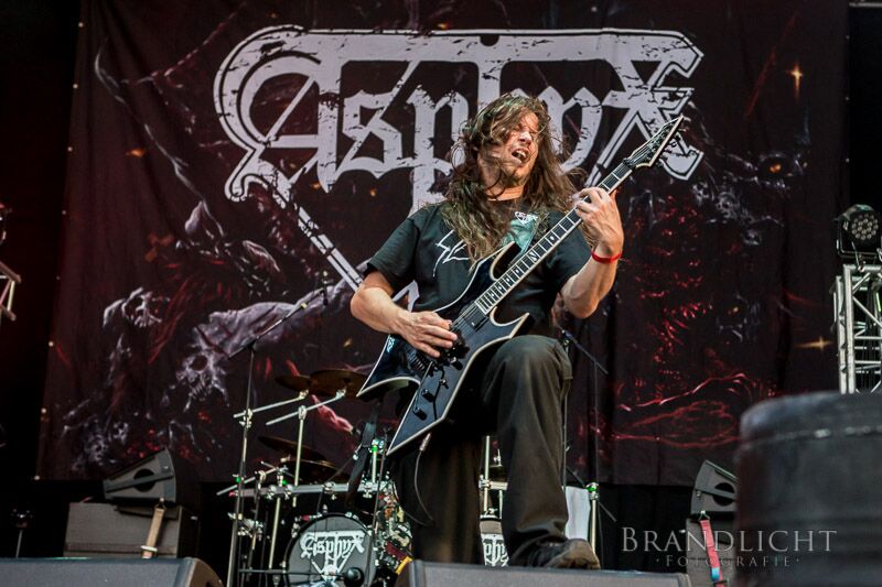 Holland...nervige Wohnwagen, olle Blumen und schlechter Fußball.. .unsere Lieblingsnachbarn haben einiges zu bieten was die Welt nicht braucht ;-) ABER es werden auch Gute Sachen importiert: ASPHYX zum Beispiel. Die Herren um Death Metal Urgestein Martin van Drunen fanden den Weg am Freitag auf den Flugplatz Obermehler. Nachdem die Protagonisten mit dem Sound zufrieden waren, kam der Käsepanzer ins Rollen und zermalmte alles was sich ihm in den Weg stellte! Bei fantastischem Sound schmetterten die Jungs Granaten wie Death the Brutal Way, Deathhammer rund Wasteland of Terror in die hungrige Meute, um zum Schluss mit The Last One on Earth nochmal alles nieder zu walzen, was grade eben noch stehen konnte. Die sympathischen Herren lieferten ein 1a Konzert ab und brachten den Kessel zum kochen. Ich fragte David ernsthaft wer das noch toppen solle... (dl)