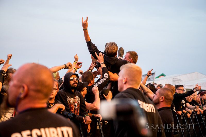 Fazit: Im Vorfeld hörte ich einige Unkenrufe, das Party.San wäre mittlerweile nur noch eine Death Metal Variante vom W:O:A, was ich nicht ansatzweise nachvollziehen kann. Saugute Stimmung ohne jemals an den Normaloidiotentourismus zum Wacken zu erinnern. Organisatorisch findet man immer Kleinigkeiten die man verbessern kann. Nen Getränketresen mehr, Sitzgelegenheiten im Zelt, irgendwie Schatten auf dem Infield schaffen und alles is bestens. Die Öffnung zu anderen Sparten neben Death und Black begrüße ich durchaus, es war mir aber deutlich zu viel Thrash vertreten. Das Hauptaugenmerk sollte schon noch deutlich bei ersteren bleiben, aber da sind die Meinungen auch gespalten. Insgesamt war es ein geiles Festival mit geilen Leuten und wird sicher nicht mein letztes PSOA gewesen sein.....bis nächstes Jahr!!! (dl/rw)