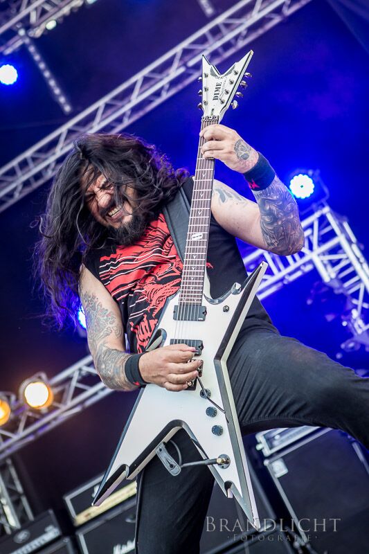 Zu enge Buchsen, High Tops, Pilotenbrillen, nein wir haben uns nicht Doc Brown`s DeLorean ausgeliehen um ins Jahr 1985 zu reisen...Evil Invaders stehen auf der Hauptbühne. Die vier Belgier geben ordentlich Gas und zeigen dem Death Metal treuen Publikum wie richtig guter Thrash Metal klingen muss! Sänger Joe schreit sich die Seele aus dem Leib wärend seine Mannen den Takt in allerfeinster 80` Manier vorgeben. Der Sound ist auch am frühen Samstag Nachmittag super und macht Lust auf mehr...Obwohl 35 Grad plus 45 Minuten Thrash Brett vom allerfeinsten..machen durstig und kaputt, zum Glück habe ich bis 17;10 Uhr eine kleine Pause in der ich mich etwas erholen kann. (rw)