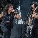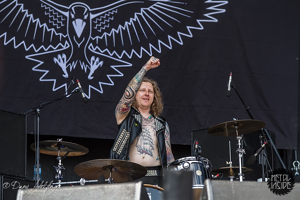 Weiter ging es mit schnörkellosem Heavy Metal. GRAND MAGUS gehen in ihrer dicken Lederjacken auf die Bühne und schwitzen sich einen ab. Groovende Gitarren und die immer noch stetige Präsens doomiger Passagen drücken den letzten Rest Müdigkeit aus den Ohren. Die Leute wippen wie in Trance mit. Kein Wunder – die Hymnenhaften Songs kommen live gut an. Selten wird es mal richtig schnell – das Tempo eignet sich stets zum entspannten Headbangen. Neben “Sword Of The Ocean” und dem tragenden „On Hooves Of Gold“ fliegen die Fäuste in die Luft als es Zeit wurde für „Steel Versus Steel“. Janne Christoffersson wundert sich warum es so heiss ist – normalerweise regnet es wenn GRAND MAGUS spielen. Man braucht sich nicht wundern, das die Schweden immer wieder mit Songs aus alten Manowar Schaffenszeiten verglichen werden. Das beweist am Ende der Übersong und Titelgeber des aktuellen Albums „Triumph and Power“ Bärenstark! (xhb)