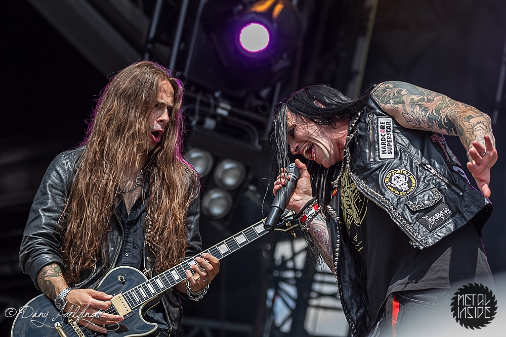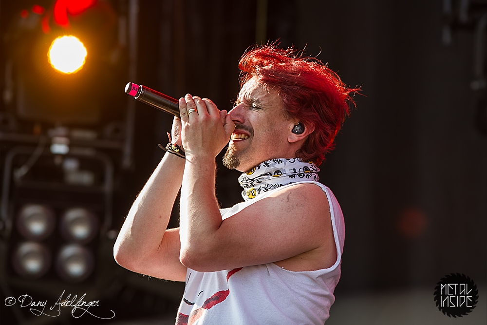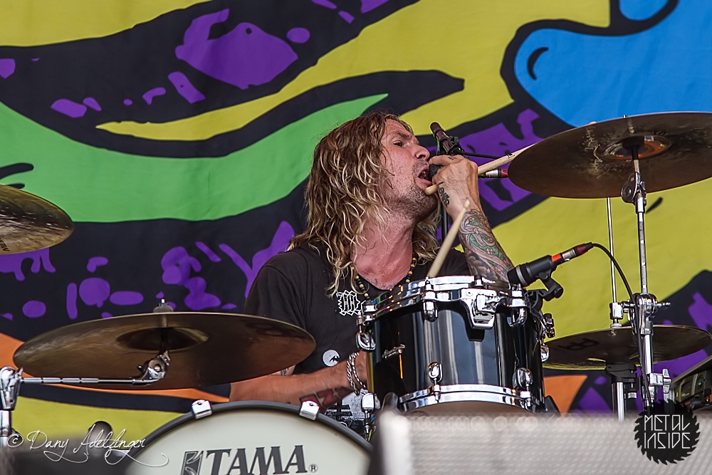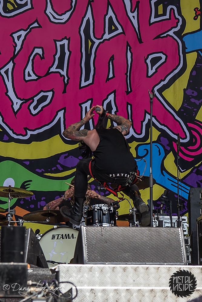 HARDCORE SUPERSTAR haben bei ihrem letzten BYH Auftritt vor vier Jahren sowas von Arsch getreten, das es fast schon nicht mehr feierlich war. Entsprechend hoch ist nun also die Erwartungshaltung ob die Schweden trotz der Mittagshitze erneut dieses Level erreichen können. Mit ihrem aktuellen Album "HCSS" schlagen die Glam /- Rotz Rock 'n' Roller außerdem einen etwas anderen Weg ein, klingen wesentlich 70er Jahre lastig und haben deutlich weniger "mitsingfähige" Party Hits am Start. Das durch geknallte kunterbunte Backdrop erinnert auch schon gleich ein bisschen an Flower Power. Mit "Need No Company" und "Last Forever" geht zwar mit zwei älteren Nummern los, so richtig knallen tun die zunächst jedoch nicht. Den tief gestimmten Gitarren fehlt der wumms und es klingt tatsächlich alles ein bisschen nach 70er Jahre Flair. Erst bei "My Good Reputation" wird lauthals mitgesungen und getanzt. Wen wundert es. "Touch The Sky" folgt vom aktuellen Album und richtig gefeiert wird natürlich bei "Last Call For Alcohol". Die Jungs auf der Bühne scheinen Spass zu haben und vor allem Frontmann Jocke rennt sich einen Wolf. "Don´t Mean Shit" ebenfalls vom "HCSS" Langeisen kommt live deutlich besser zur Geltung. Vermutlich wären zu späterer Stunde und kühleren Temperaturen Granaten wie "We Don't Celebrate Sundays" und das abschließende "Above The Law" noch wesentlich kräftiger rüber gekommen. So bleibt es am Ende lediglich "ein guter" Auftritt der Schweden der allerdings nicht zu den Highlights des diesjährigen BYH Festivals zählt.(xhb)
