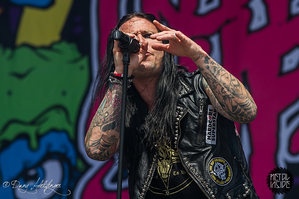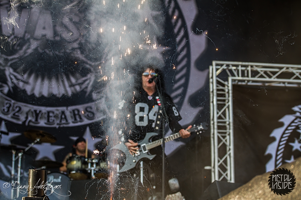 Der wiedergeborene Christ Blackie Lawless wollte zeigen ob auch in seiner neuesten –friedvolleren- Inkarnation noch genug Power steckt. Und Blackie und sein Gefolge legten auch gleich mit „On Your Knees“ und „The Torture Never Stops“ recht amtlich los. Gerade letzteres war eine willkommene Überraschung. Die vielen Gerüchte aus den letzten Jahren, in denen kolportiert wurde, dass sich Blackie gesanglich gerne aus der Konserve unterstützen lassen würde, wurden heute nicht bestätigt. Die Stimme klang einzigartig wie immer und vor allem live. Dass er sich gesanglich gerne von Langzeit-Bassist Mike Duda begleiten lässt, ist einerseits nichts Neues und andererseits auch vollkommen legitim. W.A.S.P. sind sich ihrer Verantwortung die Festivalmeute zu unterhalten durchaus bewusst, und so wurde bis auf das neuere „Crazy“ ein Klassiker nach dem anderen gezündet. „L.O.V.E. Machine“, „Wild Child“, „I Wanna Be Somebody“ oder „Blind In Texas“. Etwas schräg war die lyrische Selbstzensur bei “Chainsaw Charlie” bzw. das Fehlen von „Animal (Fuck Like A Beast)“. Beides ist aber nun mal der neuerlichen klerikalen Ausrichtung in Blackies Denke geschuldet. Trotzdem war es ein starker und unterhaltsamer Auftritt, der Lust auf mehr macht. Ich hoffe jetzt einfach mal, dass sich W.A.S.P. auf der kommenden Tour etwas zusammenreißen werden und ein paar Minuten draufpacken und nicht wie in der Vergangenheit nach einer Stunde Nettospielzeit von der Bühne verschwinden. Genug Material für eine lange Show wäre ja durchaus vorhanden, denn so gut die Überklassiker auch sind, würde zumindest ich gerne mal dem einen oder anderen ungewöhnlichen Song in einer Liveversion lauschen.(fz)