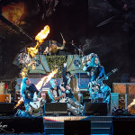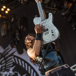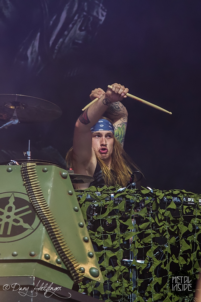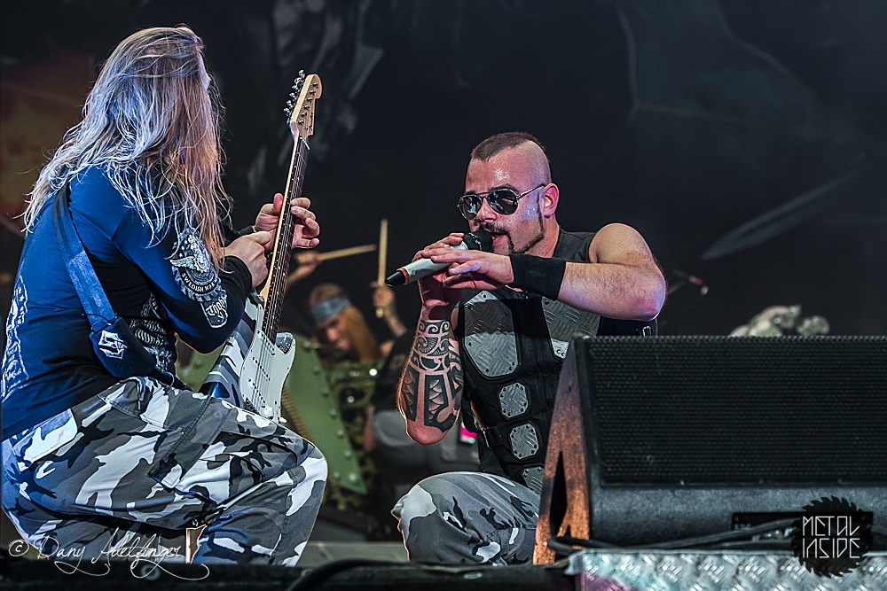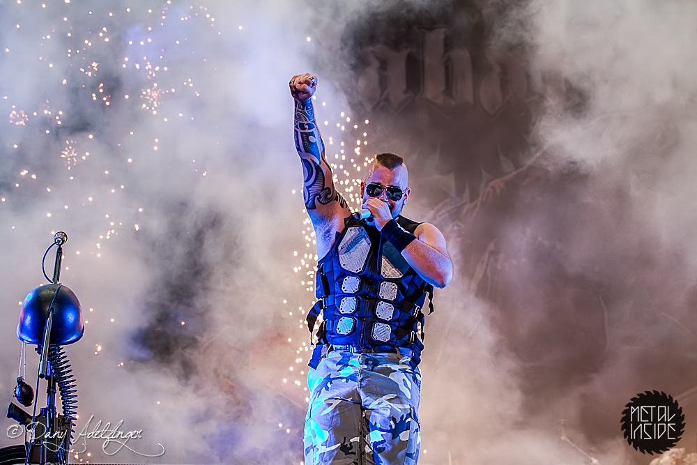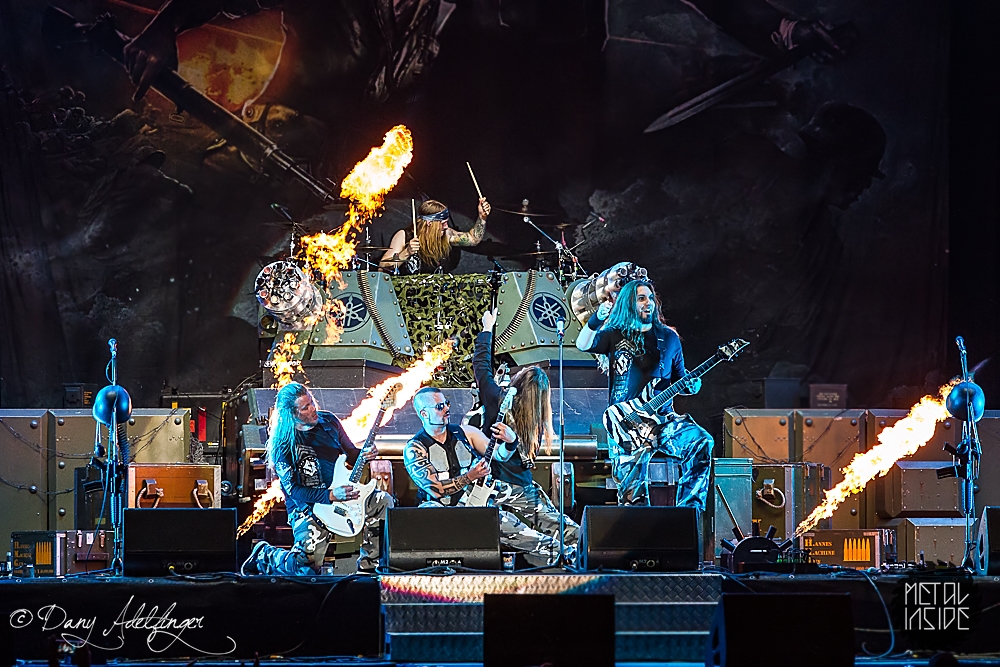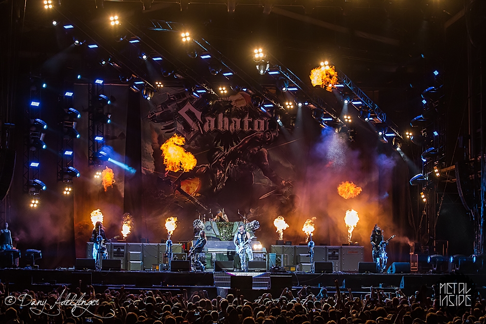 Schweden sind Patrioten. Denn als Intro haben die neuen Helden erneut „The Final Countdown“ der alten Helden EUROPE gewählt. Und es ist sogar die ein oder andere andere Schweden-Flagge zu sichten. Dann allerdings ändert sich der musikalisch Stil schlagartig. Nach der Ansage „We are SABATON, we play Heavy Metal“ ist die Richtung klar. Mit „Ghost Division“, „To Hell And Back“ und „Carolus Rex“ startet ein Feuerwerk von Hymnen, das dem Balinger Publikum nur so um die Ohren fliegt. Dann gibt es eine echte Live Premiere: „No Bullets Fly“, wurde angeblich noch nie live gespielt. Merkt man – im Publikum kehrt etwas Ruhe ein. Diese endet aber spätestens mit „Panzer Batallion“, bei dem Sänger Joakim ernsthaft die Gitarre übernimmt. „This is gonna be fun“ ätzt der reguläre Axemann. Aber Joakim schafft zumindest „Smoke On The Water“ und ein SLAYER Intro, was mit frenetischem Jubel honoriert wird. Mit „The Art Of War“ und „Gott Mit Uns“ holen SABATON die nächsten Hits aus der Kiste. Natürlich begleitet von lauten „Noch ein Bier“-Rufen, die der Sänger durch zackiges Exen großer Bierdosen beruhigt. Inzwischen hat sich die brennende Sonne über der schwäbischen Zollernalb schlafen gelegt. Und so leuchtet die beeindruckende Lightshow der fünf martialischen Schweden über der Albmetropole während mit „Primo Victoria“ und „Metal Crüe“ die erwarteten letzten Salven in das inzwischen vollständig hüpfende Metallervolk geschossen werden. (J.)