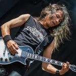 Die ewigen jungen Thrasher aus der Bay Area heizten auch in Balingen wieder so richtig ein. Frontderwisch Mark Osegueda sprang über die große Bühne wie einst im Mai und auch die Saitenfraktion Ted Aguilar (kommt wohl von „agil“) und Rob Cavestany konnte keine Sekunde still stehen. Basser Damien Sisson gab gekonnt den Cliff Burton und Drumviech Will Carroll ist das menschgewordene „Tier“ aus der Muppetshow. Songtechnisch schöpften DEATH ANGEL trotz der Kürze der Zeit aus dem Vollen: Egal ob neu („The Dream Calls For Blood“, „Claws In So Deep“), ob älter („Thrown To The Wolves“) oder Klassiker („Voracious Souls“, „3rd Floor“, „Seemingly Endless Time“ und „Ultra-Violence“), jede Phase der Bandgeschichte wurde bedacht und fügte sich auf der Bühne zu einem homogenen Ganzen zusammen. Ultratight und mit einer immensen Spielfreude ausgestattet prügelten sich DEATH ANGEL durch ihren Set und hinterließen überall glückliche Gesichter.(fz)
