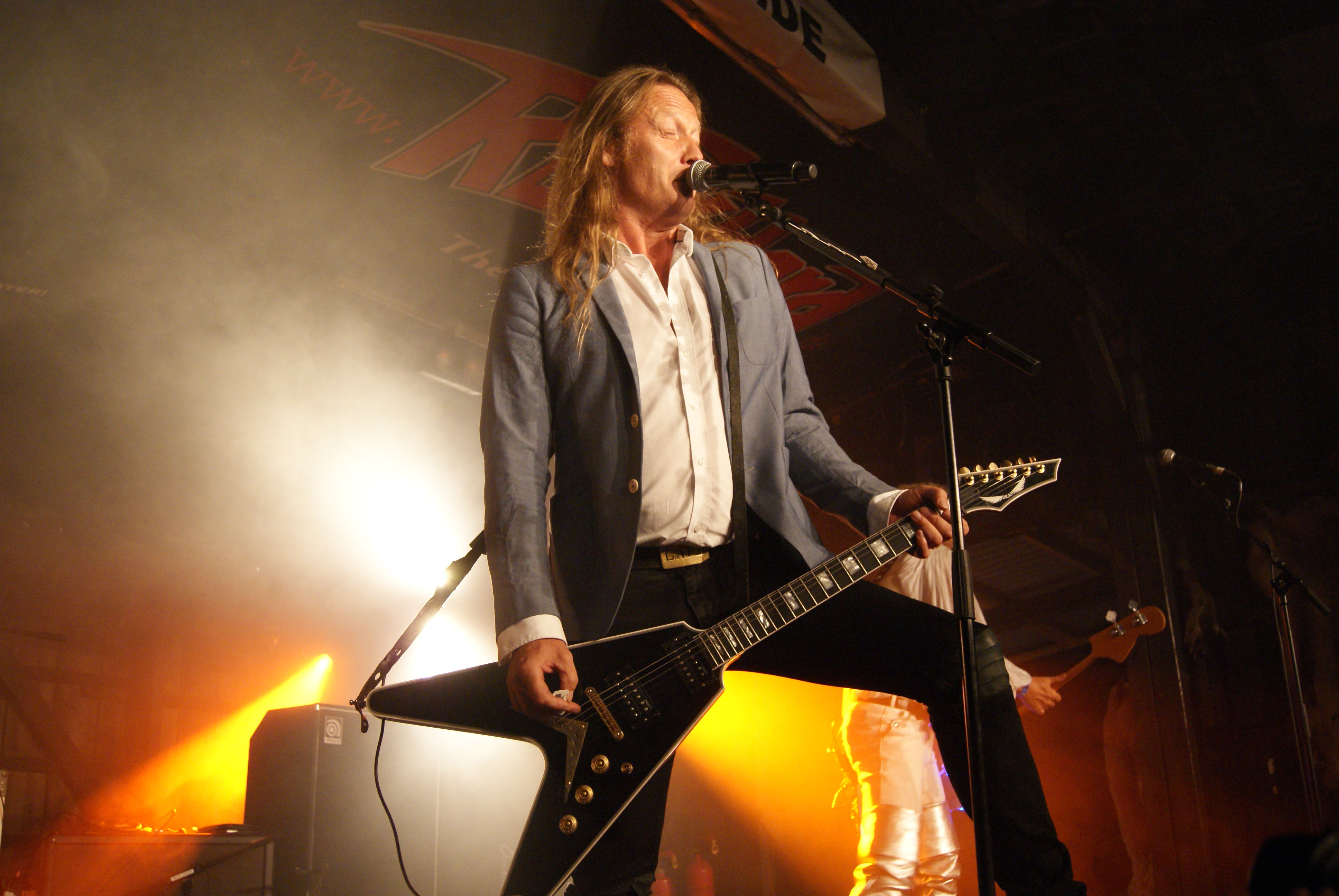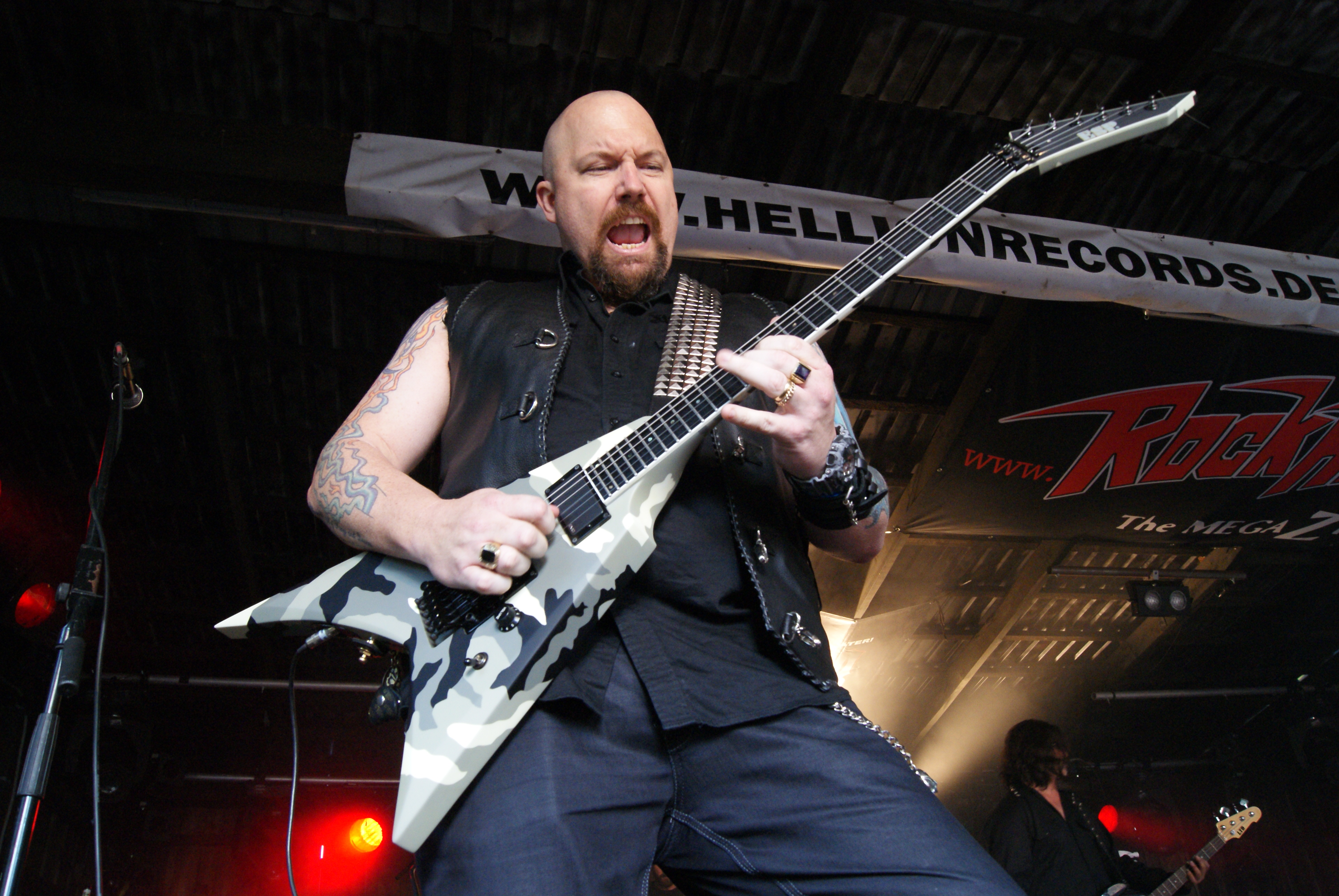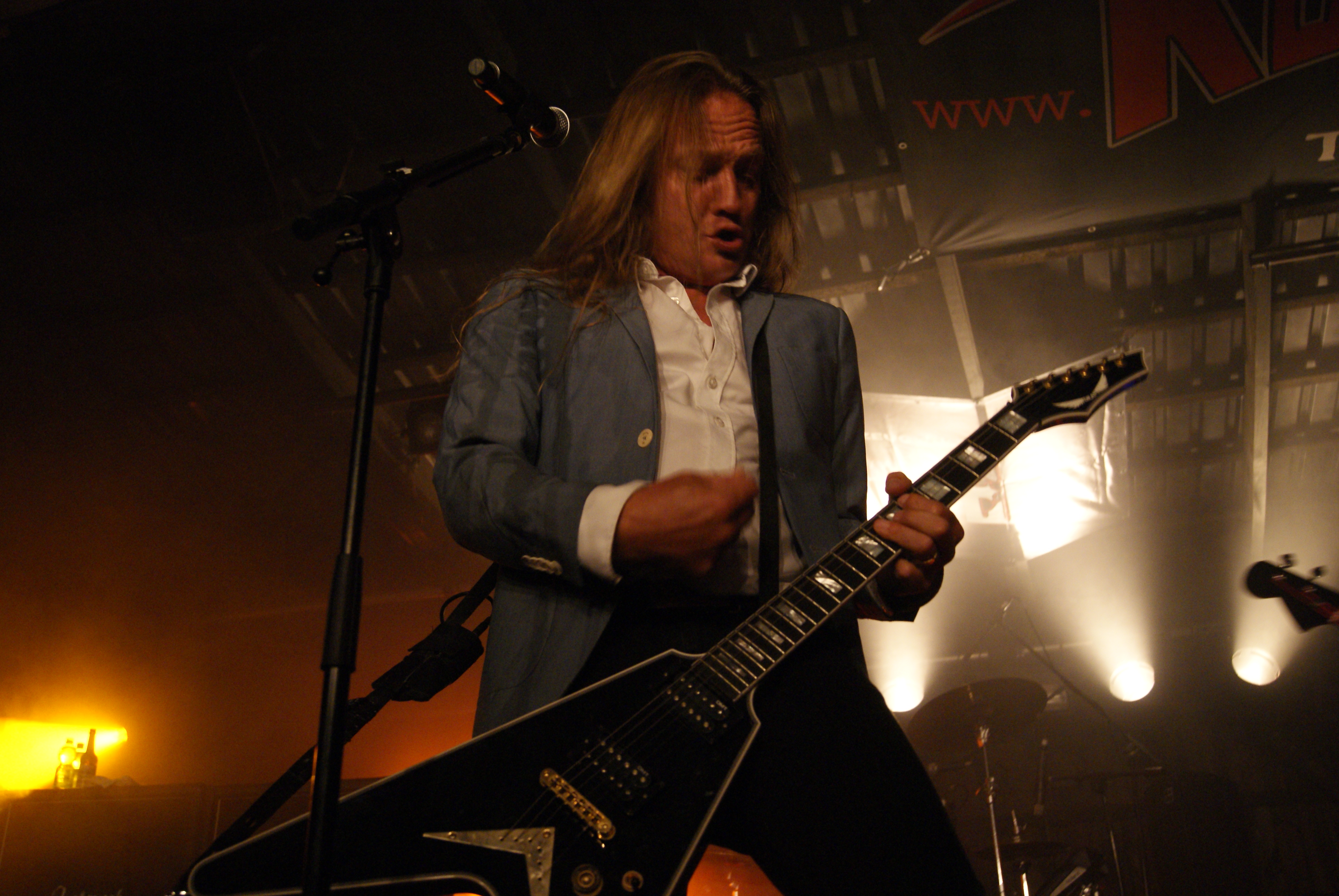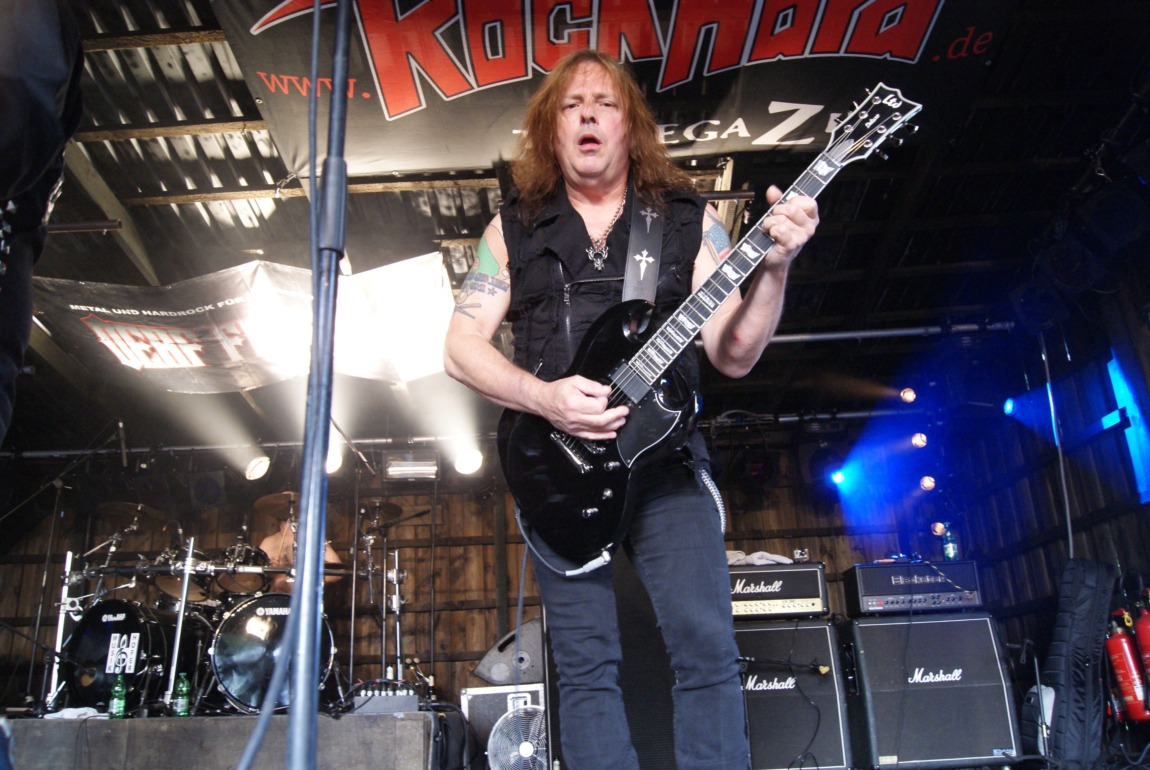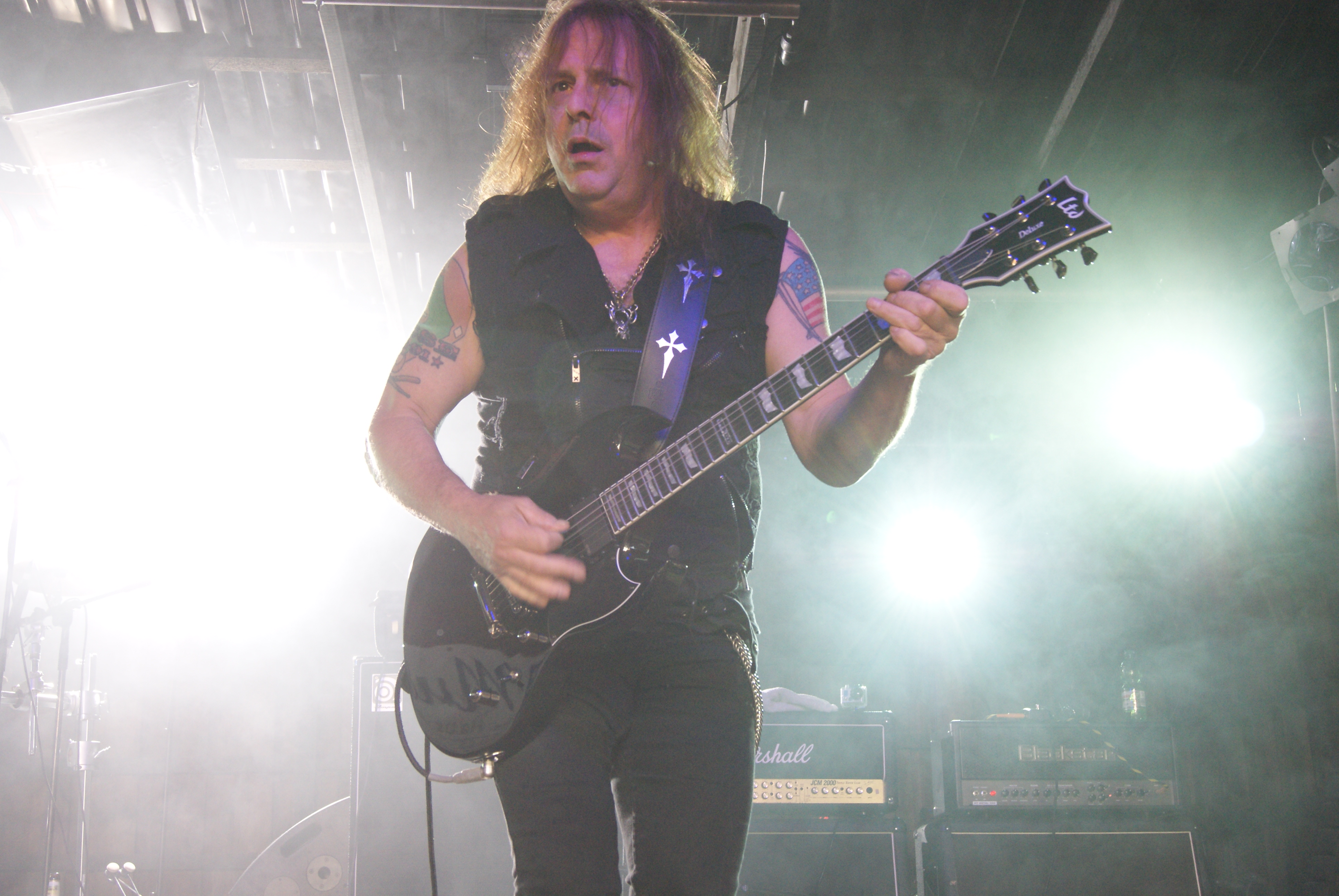 Als nächstes durften DEATH DEALER ran. Bei diesen DEATH DEALER handelt es sich jedoch nicht um die Kanadier, sondern die All-Star Truppe um CAGE-Sirene Sean Peck und Ex-MANOWAR Gitarrero Ross The Boss. Wie schon auf ihrem Album feuerten DEATH DEALER aus allen Rohren und ließen es kräftigst „painkillern“. Sean schmiss sich in alle erdenklichen Halford-Gedächtnisposen und seine Mitstreiter mühten sich nach allen Regeln der Kunst so Metal wie nur möglich zu sein. Die beste Stimmung aber kam nicht bei den DEATH DEALER Stücken, sondern beim MANOWAR-Cover „Hail & Kill“ auf. Hier aber offenbarte Peck auch seine Grenzen, denn ein in Hochform agierender Eric Adams ist nochmal eine ganz andere Liga. Solide aber nicht weltbewegend.