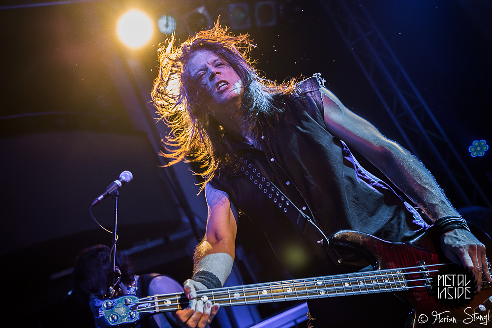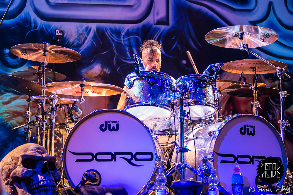 DORO selbst genoss schon Minuten vor dem Auftritt die Rufe ihrer Fans, als sie hinter dem Bühnenvorhang hervorstrahlte. Die Düsseldorferin legte dann erwartungsgemäß los wie die sprichwörtliche Feuerwehr und hatte sichtlich Spaß an ihrem Auftritt. Die Fans feierten die Band auch standesgemäß, ganz egal ob es sich um alte Klassiker aus lägst vergangenen WARLOCK-Tagen oder um neuere Songs handelte. Doro und ihre Band gaben den Jubel der Menge laufend zurück, wirbelten über die Bühne, suchten die Nähe der Metalheads im Löwensaal und ließen am Ende ein ausgepowertes, mehr als zufriedenes Publikum zurück. DORO ist eine zeitlose Erscheinung, das hat Frau Pesch an diesem Abend wieder eindrucksvoll unter Beweis gestellt.