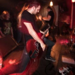 Nachdem die letzten VICTIMS-Zugabe verklungen war, wurde das Drumkit umgebaut und die Herren aus Richmond kamen auf die Bühne. Die Gitarre in Übergröße mit eingearbeitetem Logo war definitiv der Hingucker des Abends und Stirnbänder das Accessoire der Stunde. Fehlt noch das Motto der folgenden Stunde – aber was kann das anderes sein als Party hard!? So war es auch, MUNICIPAL WASTE machten vom ersten Song an Laune und ließen auf der Bühne die Sau raus, während vor derselben ein schöner old school Pit entstand, Crowdsurfer inklusive, was natürlich die Temperaturen im Hafenklang gut nach oben brachte. Aber (Männer)Schweiß gehört zu einem solchen Abend genau wie der Geruch nach verschüttetem Bier und Kippenqualm. So muss das sein, dann können entspannt die Fäuste geschüttelt und „Municipal Waste is gonna fuck you up!“ gegröhlt werden. Schneesturm, Ärger im Job und was sonst noch auf der Seele lastet, sind für mehr als 60 Minuten vergessen, stattdessen Party, Metal und Mosh. Und die Erkenntnis, dass MUNICIPAL WASTE einfach den Dreh raus haben, wenn es ums Songs schreiben geht. Wenn eine Band dann auf der Bühne noch so viel Spaß hat wie der Haufen schlecht gekleideter Amis, kann eigentlich nichts mehr schief gehen.