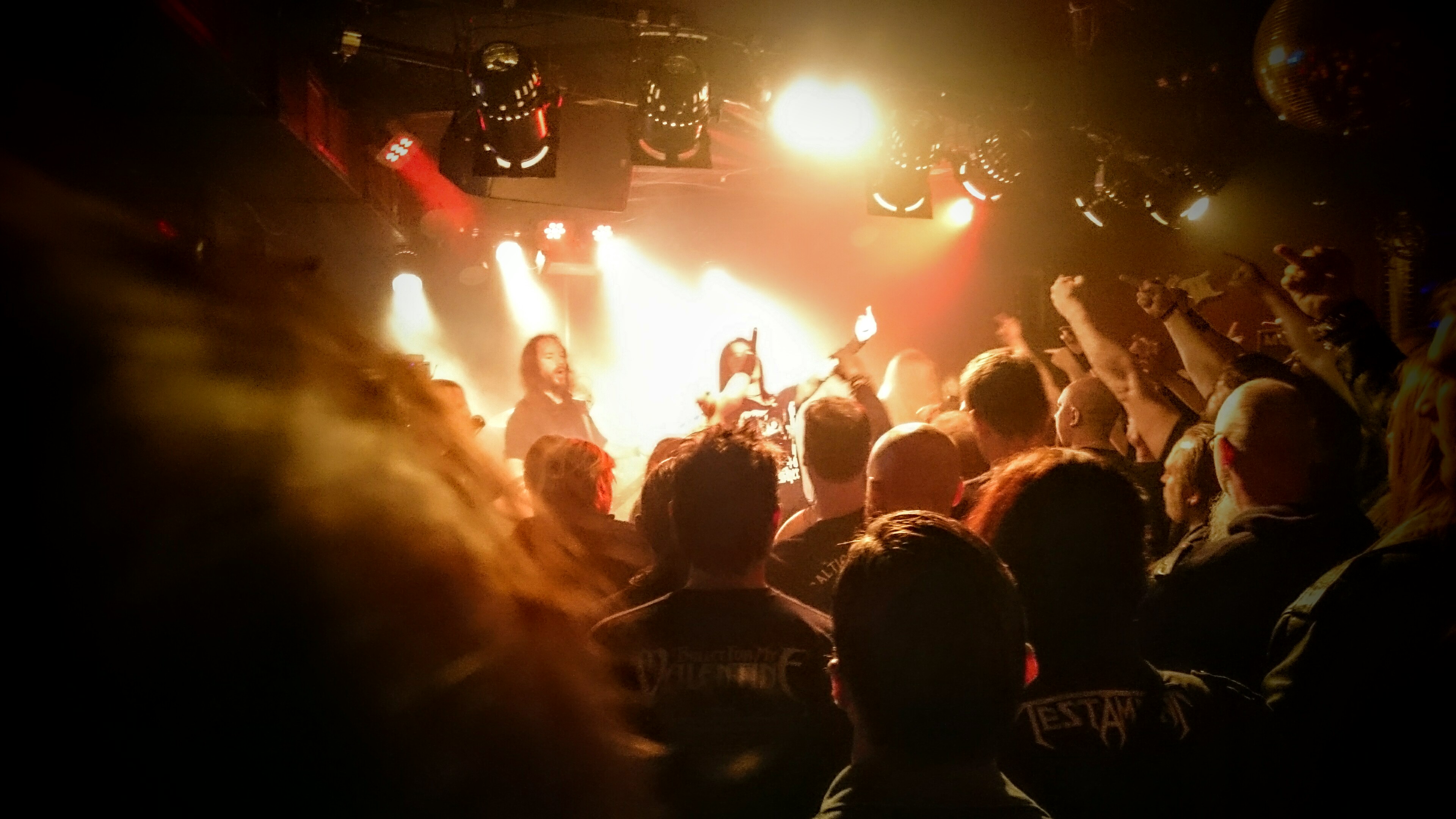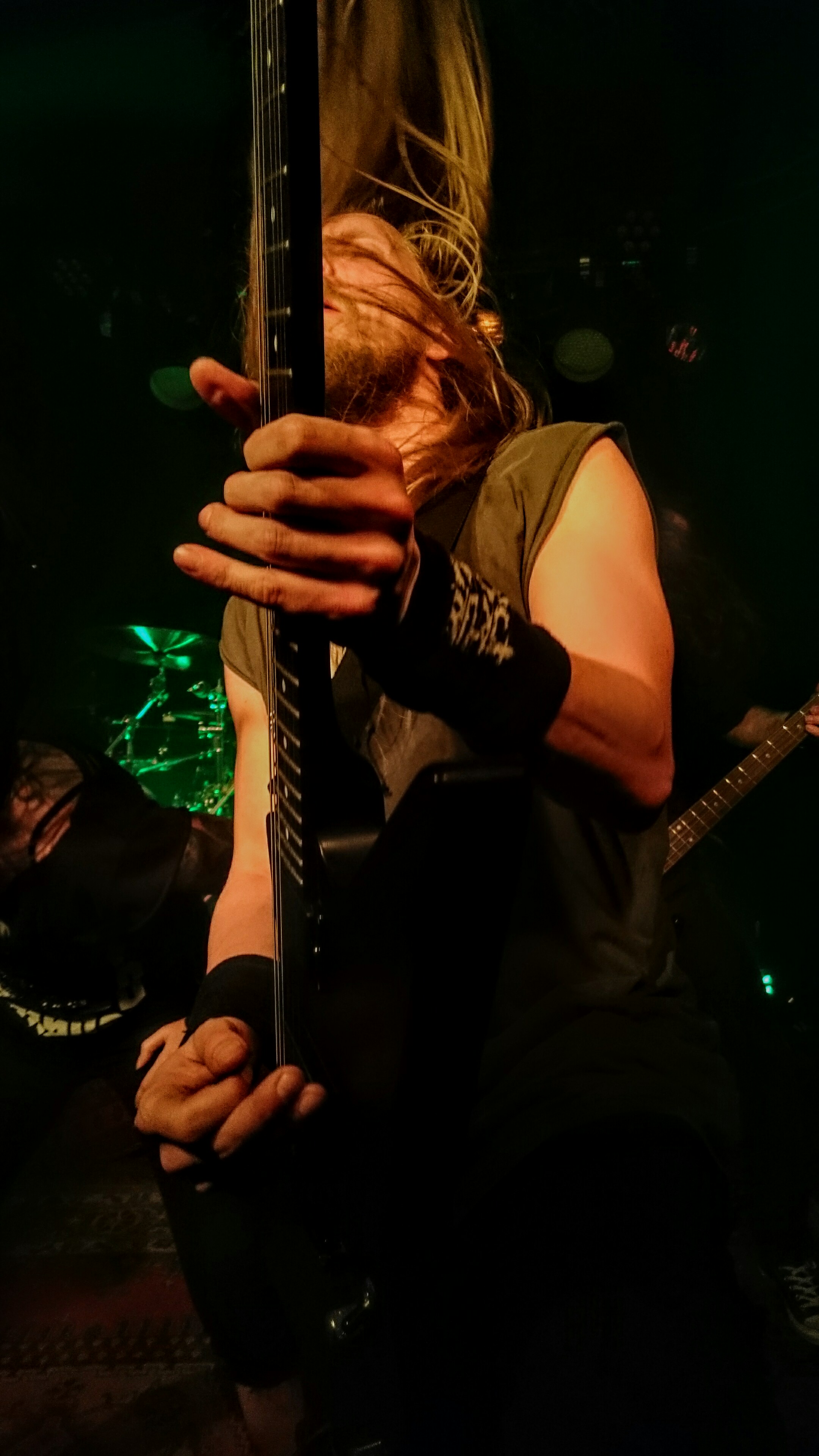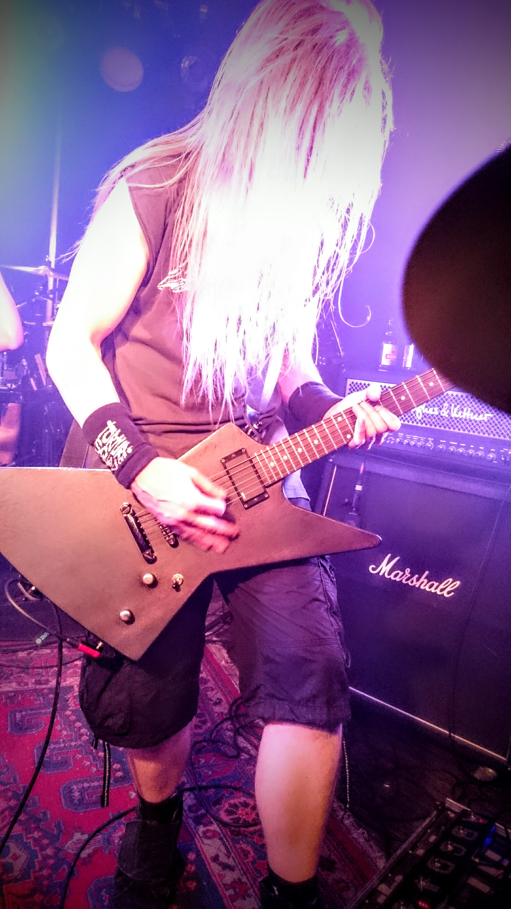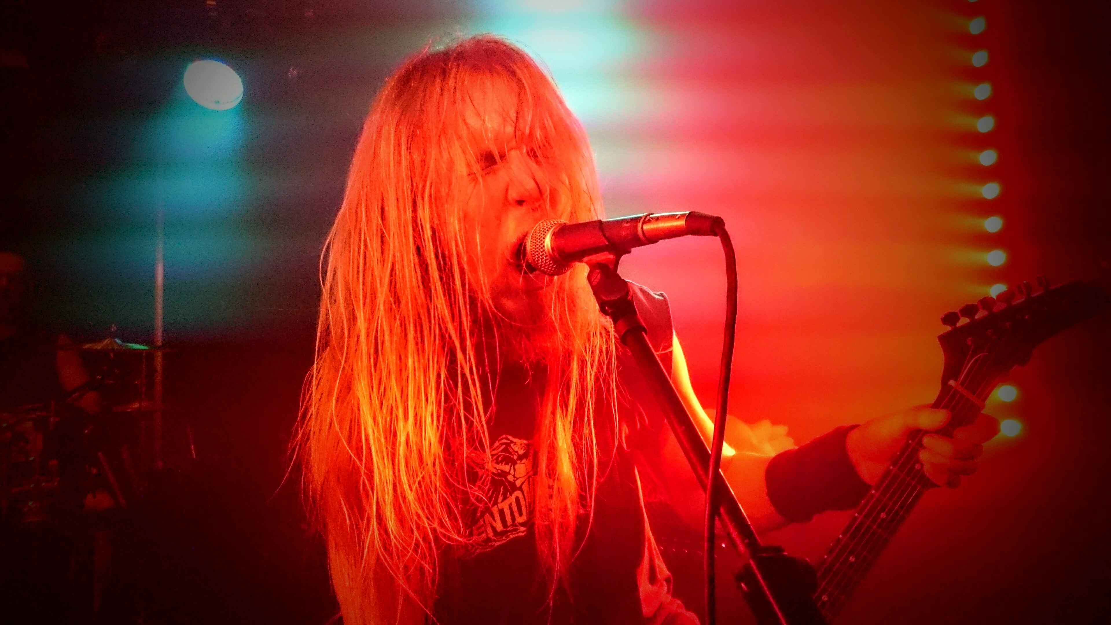 Bei der „Chefin“ handelt es sich um CRIPPER-Sängerin Britta Görtz, welche überraschenderweise auch gerade durch die Tür kommt. Gut gelaunt gibt sie zu Protokoll, dass es etwas später anfangen wird, da die Vorband technische Probleme hat. Mit leichter Verzögerung geht es dann für den Support SYNDEMIC los. Die Hamburger spielen modernen Death Metal und machen trotz abgerauchtem Amp und gerissener Saite das Beste aus der Situation und bringen so ihr Set solide hinter sich. Gegen 22:15 ist Schluss und ein etwas längerer Umbau beginnt.