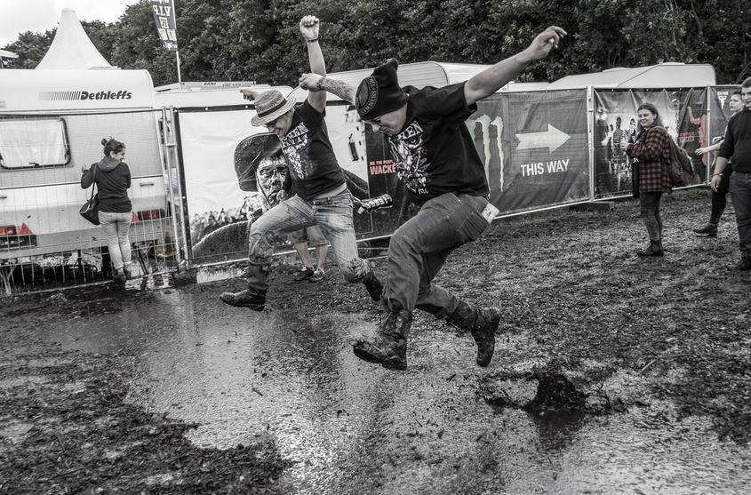Trotz meiner 18 Jährigen WOA Karriere, war dieses Jahr doch wieder etwas ganz anderes. In all den Jahren haben wir ja schon einiges mitgemacht. Kleines Wacken, großes Wacken. Heisses Wacken, Kaltes Wacken. Trockenes Staub-Wacken und überfülltes Chaos Wacken. Und immer haben die Veranstalter einen Weg gefunden mit diesen extremen Situationen umzugehen. Und 2015 – da wars eben das Schlamm Wacken. „Schlamm gab es doch schon immer“ mag jetzt der eine oder andere behaupten…. Käsekuchen. DAS gab es bisher noch nicht. Sturm und peitschender Regen bis Donnerstag Abend. Dazu Temperaturen von gerade mal 15 Grad. Nachts sogar nur 6 Grad. Knietiefer Schlamm überall und von Mittwochs an. Und zwar wirklich überall. So tief, das an vielen Stellen die Sosse in die Gummistiefel rein lief und ganze camps unter sich begrub. Und? Memme? Nix – da muss durch! Spass haben wir gehabt – ein echtes Abendteuer war das. Ok – manche hatten weniger Glück – einige Flächen waren nicht befahrbar. Pavillons durften ab Mittwoch Abend nicht mehr aufgebaut werden. Es gab zu wenig nutzbare Flächen. Viele Camper wurden in ein Parkhaus in Itzehoe umgesiedelt. Das ist ärgerlich – aber es war eine Lösung für alle Hartgesottenen. Und am Freitag wurde das Wetter besser – wärmer und vor allem Trocken. Sogar die Abreise am Sonntag konnte weitestgehend ohne massive Hilfe von Treckern über die Bühne gehen.