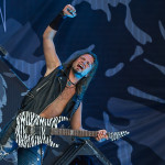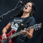 Mit DELAIN kam dann anschließend Female Fronted Metal der neuen Generation zum Zuge. Und im Falle DELAIN’s ist dieser ungleich poppiger. Obwohl die Sonne in Balingen zum ersten Mal so richtig ihre Kraft zeigte, hüpfte Charlotte Wessels die ganze Show über in einem weißen, an einen Yeti gemahnenden, Kunstpelz durch die Gegend. Da schwitzte man ja vom Zusehen. DELAIN’s Musik ist melodisch, eingängig, gefällig aber auch wenig metallisch. Da reichen ein paar harte Gitarren nicht aus. Trotz der vordergründigen Eingängigkeit bleibt da leider wenig hängen. Ausnahme der Regel: der „Hit“ „We Are The Others“. Selbiger frisst sich unbarmherzig in die Gehörgänge und verbleibt dort auch. Alles in allem ein solider Auftritt, dem die Langzeitwirkung etwas abging.