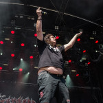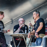 Und jetzt der Kulturschock: Nachdem sich DELAIN artig verabschiedet hatten, stürmten Frankfurt’s Finest die Bühne und präsentierten sich agil wie einst im Mai. TANKARD prügelten die Uraltschote „Zombie Attack“ mit so viel Enthusiasmus in die Menge, dass man glauben konnte einer jungen Band bei der Präsentation ihres Debutalbums zuzusehen. Die ersten Heiratsanträge und Kinderwünsche aus dem Publikum an Fronter Gerre ließen da auch nicht lange auf sich warten. Im weiteren Verlauf wurden typische „TANKARD-Groupies“ auf die Bühne geholt (diverse ältere Herren mit Bierplauze), dem Hangover gehuldigt („Morning After“) oder gleich die letzte Ölung…pardon…„Bierung“ verteilt („R.I.B. – Rest In Beer“). Neben Gerre zeigten aber auch Gitarrist Andy und Basser Frank vollen Einsatz. Stillstand ist bei TANKARD nach wie vor ein absolutes No-Go…was jetzt sprachlich auch irgendwie logisch ist. Auch wenn sich die Herren abseits der Bühne gerne mal einen genehmigen, die Show hat noch nie darunter gelitten. Bei allem Witz auf der Bühne, so ist der TANKARDsche Arbeitsethos doch vorbildlich und garantiert immer beste Unterhaltung. Und als zum Schluss noch der „Song Ohne Namen“ („(Empty) Tankard“) angekündigt wurde, gab es endgültig kein Halten mehr und Balingen rastete komplett aus.
