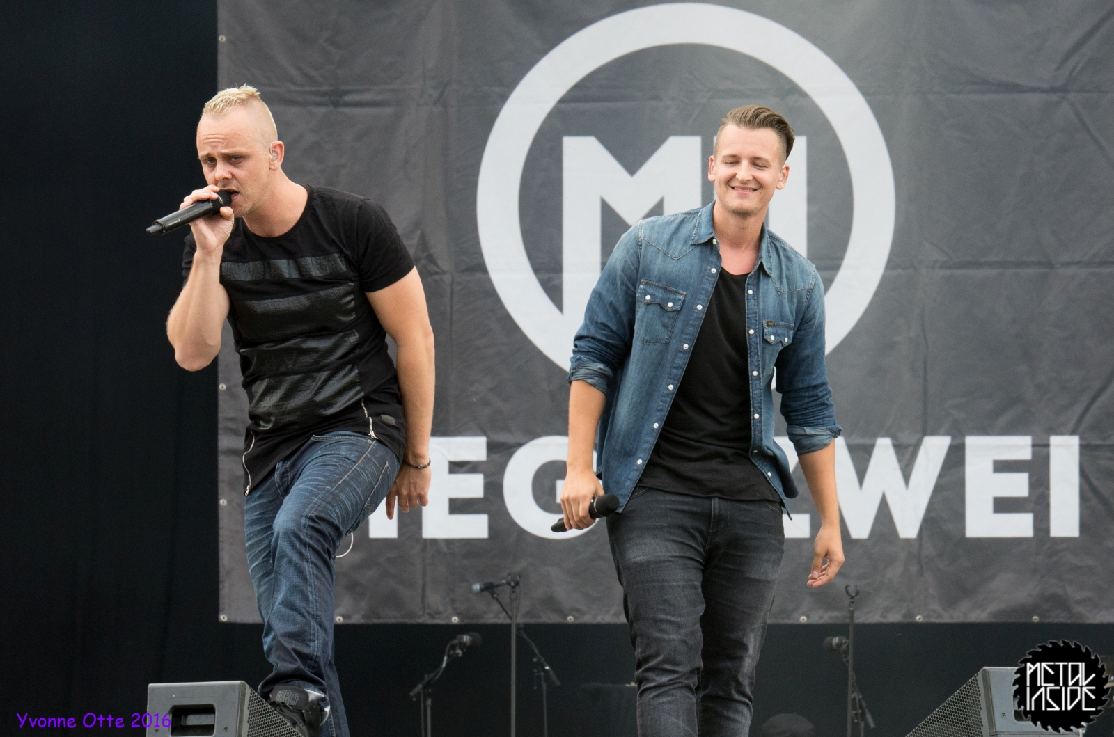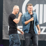 Recht früh, noch vor 18 Uhr gingen MEGAZWEI auf die Bühne. Open-Air hat den Nachteil, dass meistens um 22 Uhr die Veranstaltung zu Ende sein muss, weil die Lärmschutzbestimmungen die Anwohner schützen wollen. Mag schließlich nicht jeder die Bands, die Bands, die im Sparkassenpark auftreten, oder andere haben Kinder oder müssen am nächsten Tag arbeiten. Ist also schon sinnvoll, zum Nachteil für die Bands, die bereits so früh auftreten müssen, weil es wirklich noch sehr leer ist. So auch bei MEGAZWEI. Die haben es aber mit Humor genommen, ebenso die Tatsache, dass wohl niemand die äußerst sympathische Band kannte. Trotzdem hatten besonders die beiden Sänger jede Menge Spaß und UNHEILIG supporten zu dürfen ist für so eine neue Band natürlich ein ganz großes Los. Musikalisch und von der Show her, kann man sie ein bisschen mit IRIE REVOLTES vergleichen, nur eben auf Deutsch. Nach gut einer halben Stunde musste MEGAZWEI das Feld räumen, damit BE ONE Platz hatten.