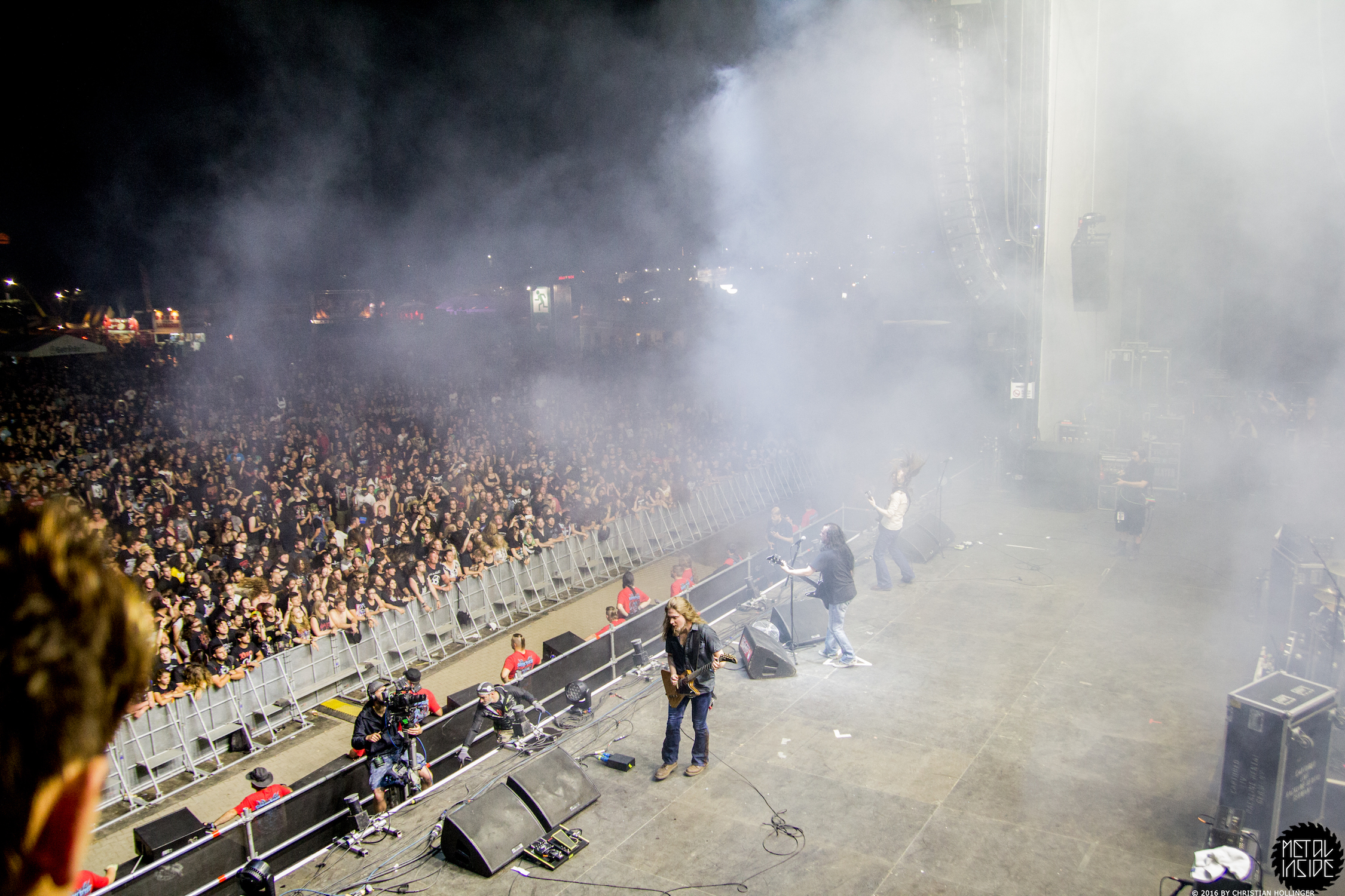Am Mittwoch, den 17.08.2016 gönnte ich mir Victor Smolskis aktuelle Formation ALMANAC als Opener. Zwar bin ich immer noch ein wenig traurig darüber, dass es RAGE in alter Formation nicht mehr gibt, dafür wurde uns auf 45 Minuten eine Show präsentiert wo Mr. Smolski zwar wie erwartet gerne im Rampenlicht stand, sich das Ganze aber trotzdem als spaßige Reise durch ALMANACs Debüt "Tsar" rausstellte. Das Album wurde zwar nicht am Stück runtergekloppt (so kam "Nevermore" noch vor "No More Shadows"), bot aber naturgemäß die Basis der Show. Mit 2 Sängern und einer Sängerin wirkte die Bühne zwar fast etwas überlaufen, aber der Charme der zugegeben etwas einhörbedürfigen "Tsar" kam perfekt rüber. Als Zulage folgte dann das von Smolski angeleitete "Empty Hollow" von RAGE - man kann sich eben doch nicht ganz von der Vergangenheit lösen. Die Menge feierte es jedenfalls.