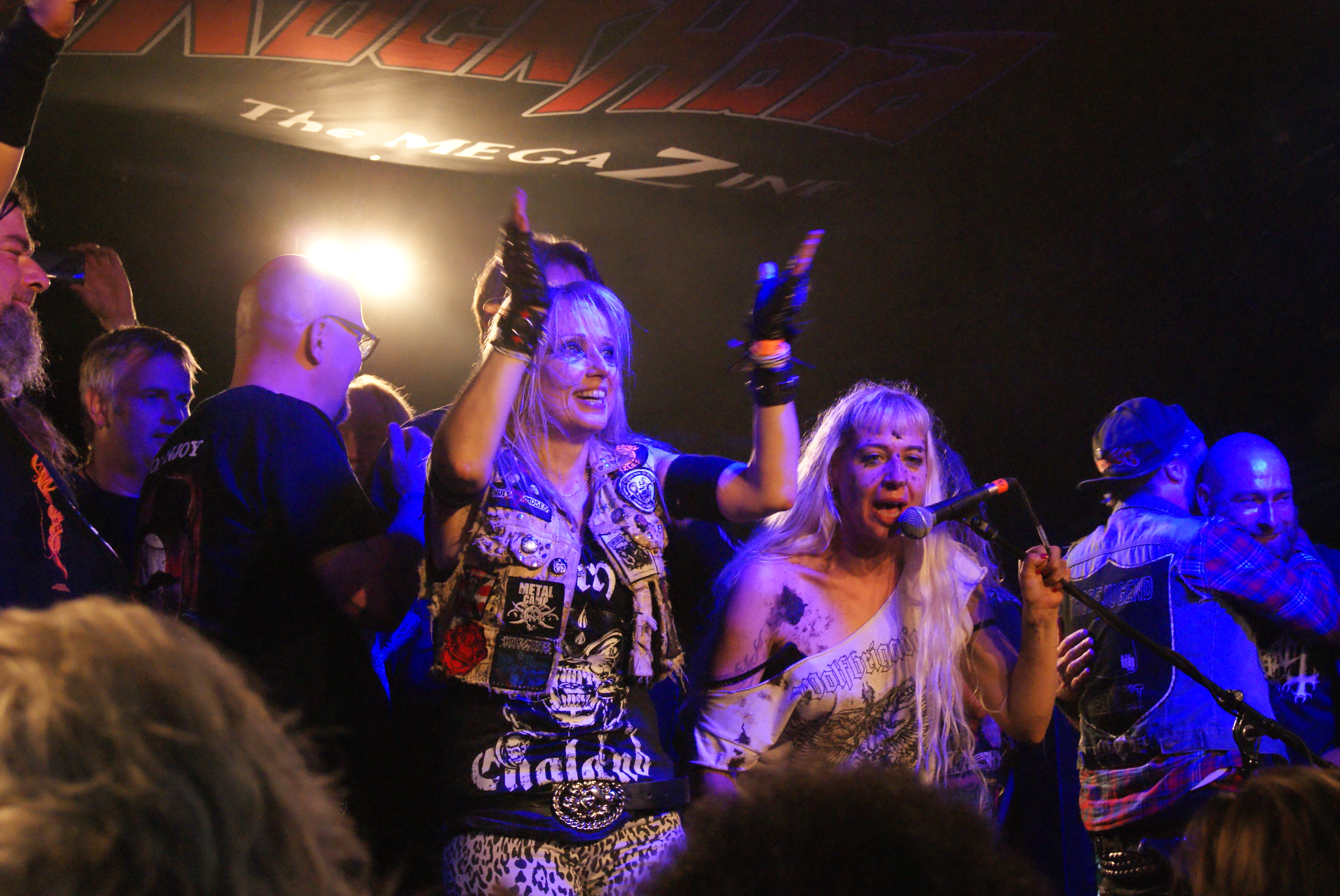 Als nächstes waren die Schweden NIGHT an der Reihe. Für mich immer ein wenig die Band der vergebenen Möglichkeiten. Ich mag das basische, nach den frühen 80ern klingende Songmaterial der Jungs durchaus. Auch an der Präsentation gab es wenig zu meckern. Das Ganze wirkte durch und durch authentisch. Der Pferdefuß ist der Gesang von Oskar Andersson. Ich habe ja nix gegen hohe Vocals, aber der gute Mann hält sich ausschließlich in der Kopfstimme auf, die er nur minimal variiert, und so geht mir das nach 3-4 Songs irgendwann auf die Nüsse. Es ist einfach schade, weil sonst sind NIGHT eine starke Schweden-Metal Combo. Wenn es der Herr „Burning Fire“ (so nennt sich Meister Andersson) doch irgendwann in Betracht ziehen sollte, ein wenig Abwechslung in seinen Gesang zu integrieren, dann bin ich auch bei NIGHT wieder voll dabei. Mit Herrn Brandt vom DEAF FOREVER haben sie aber ein Herz im Sturm erobert. Selbiger zog nach dem Gig sofort los, um die beiden Alben zu verhaften.