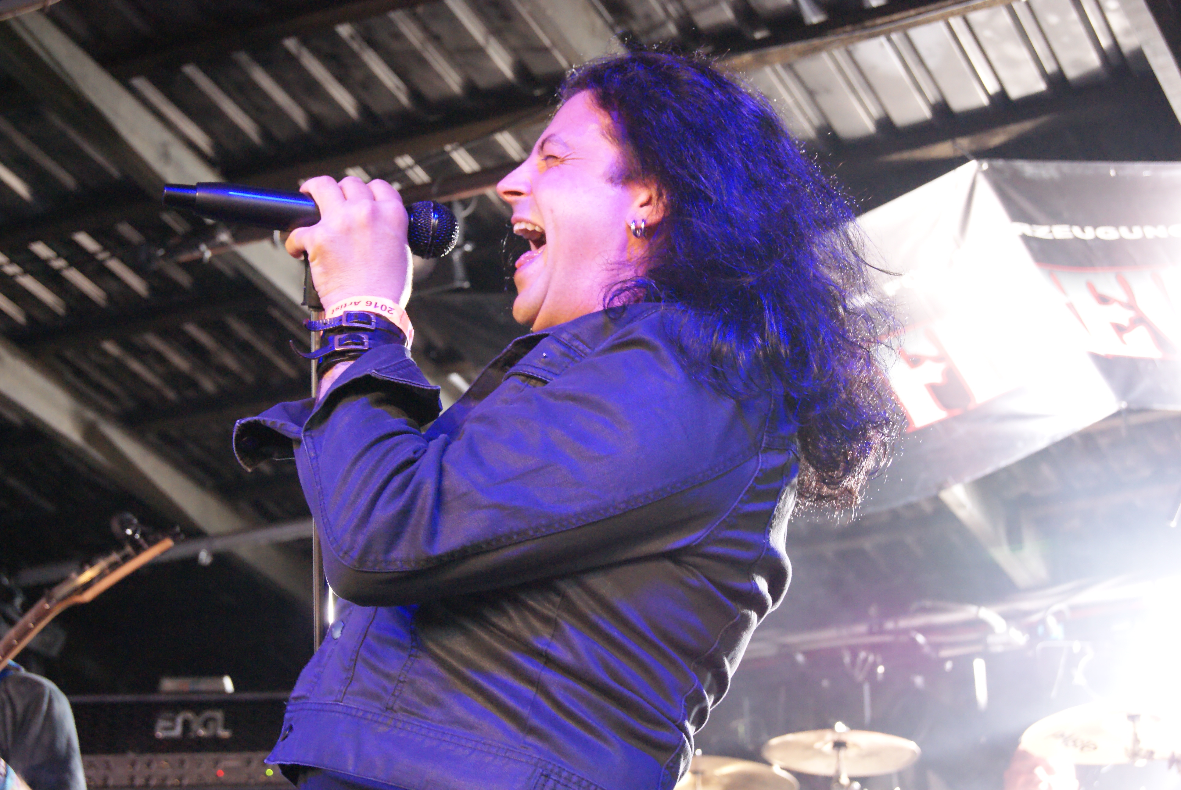 Auch wenn bei OSTROGOTH mit Drummer Mario Pauwels nur noch ein Originalmitglied am Start ist, konnten die Belgier vom Start weg begeistern. Man merkt auch den jüngeren Mitgliedern an, dass sie richtig Bock auf die Musik haben. Auch abseits der Bühne outen sie sich als richtige Metalfans, die die anderen Bands nach Strich und Faden abfeiern. Sehr sympathisch. Auf der Bühne wiederum geben sie als professionell agierende Einheit richtig Gas. Sänger Josey Hindrix ist ein richtig geiler Frontmann, der die alten Kracher mehr als überzeugend darbietet. Euro-Metal Hymnen wie „Ecstasy And Danger“, „Paris By Night“, „Vlad Strigoi” und vor allem die E.P.-Tracks „Rock Fever” und das alles zermalmende „Full Moon’s Eyes” schickten das H.O.A. in einen wahren Glückstaumel. So soll Heavy Metal klingen, so soll Heavy Metal aussehen, so soll Heavy Metal sein. Alles richtig gemacht und eines der absoluten Highlights des H.O.A.s 2016.