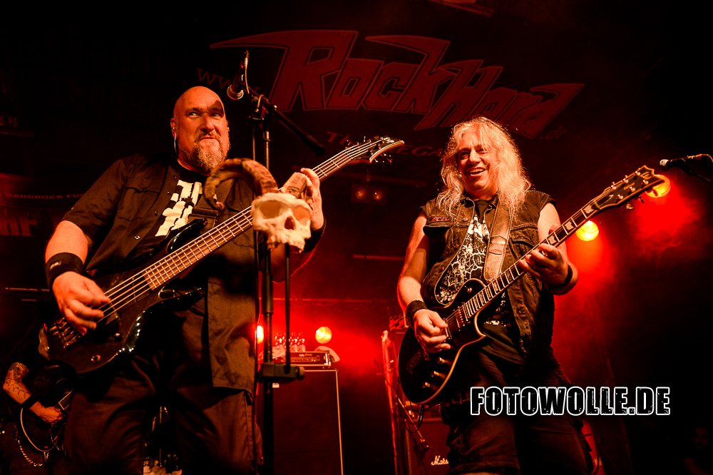 Und als letzte NWoBHM-Band des Tages durften mal wieder OD-SAXON ran. Sänger Bri Shaugnessy fragte auch sogleich was man denn ohne sie letztes Jahr hier gemacht hätte. Auch wenn den Herren um die Original SAXON Recken Steve Dawson (Bass) und Graham Oliver (Gitarre) etwas die Aura der „großen“ SAXON abgeht, so haben sie doch einen großen Vorteil gegenüber den vielen anderen NWoBHM Bands, die dieses Wochenende auftraten: Hits, Hits, Hits!!! „Heavy Metal Thunder“, „Rock ‘N Roll Gypsy“, „Strong Arm Of The Law“, „20.000 Feet”, „Crusader”, „Wheels Of Steel”, „Princess Of The Night” usw. Das war ein Feuerwerk. Und Brande-Hörnerkirchen war mehr als gewillt da mitzumachen und mitzufeiern. Dies wiederum übertrug sich auch auf die Band und besonders Oliver war sehr agil. Natürlich kann man sich die Frage stellen, ob es wirklich zwei Bands braucht, die ein und dieselben Songs spielen, aber um ehrlich zu sein war das an diesem Abend komplett wurscht, da alle ausrasteten und einen mordsmäßigen Spaß hatten. Meine Person eingeschlossen. Damit erklärt sich auch die eben gestellte Frage. Außerdem haben es OD-SAXON geschafft, dass ich doch noch einen versöhnlichen Abschluss mit der NWoBHM an diesem Wochenende machen konnte.
