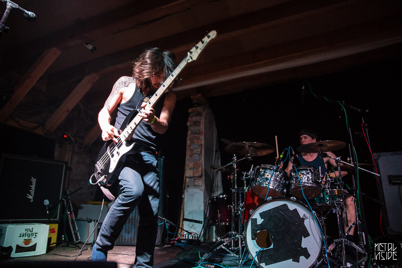 Haus mit Garten und Brauerei, Kino, Freiluftkino, Theater, Dartraum und Café - also quasi alles, was außerhalb der eigenen 4 Wände Spaß macht. Natürlich kann so eine Venue mit den großen Hallen, was Technik oder Licht angeht nicht mithalten, dafür hat es Charme und passt zu Underground-Musik.Und die hatten wir an diesem Wochenende reichlich. 18 Bands +2 Aftershow Acts in 2 Tagen ist eigentlich genau die Menge Musik, die ich mir für ein Wochenende vorstelle. Ein hausgebrautes Bier in die Pranke (0,3l 2€) und schon konnte es losgehen mit PUB CERENKOV, einer kleinen, feinen Combo aus Ulm. Die boten uns melodischen "jamrockin-liquweed-synapse-transformer" Stonerrock. Der Tiefgrund war schon fast voll, so dass die Jungs auch ausreichend Zuschauer hatten - für einen frühen Freitagabend nicht schlecht für alle Beteiligten. Weiter ging es dann mit ODDJOBMEN. Diese lieferten eine außergewöhnliche Klarstimme zu ihrem Desert-Stonerrock. Im Keller lernten wir dann, dass jede Bar andere Biersorten und -größen ausschenkt. Coole Idee soweit. Im Keller gibt es Gösser Radler, Jever, Lich und Gambrinus 12° für 2,50€ die Halbe, liebevoll "Nichtwasser" genannt. Mehr als fair, finde ich, das Wochenende wird günstig. Nun kam die erste Band in der Halle und so strauchelten wir die Treppe aus dem Tiefgrund hoch in den Garten, um von da aus in den Theatersaal zu gehen. MOTHERBRAIN machen fast-forward-Stonerrock. Sie sind perfekte Techniker und ich war erstaunt, was man aus einem Standardschlagzeugset so rausholen kann. Die Effekte der Leadguitar gaben mir dann den Rest, ich bin nun "Motherbrainer". Weiter ging es dann wieder im Tiefgrund mit SWEDENBORG RAUM und ihrem atmosphärischen Space-Rock. Die Schkeuditzer Axel Ben und Flo benannten die Band nach dem Raum zwischen Leben und Tod. Es folgte ein Großkaliber des Stonerrocks: GLOWSUN! Die Herren aus Lille, Frankreich, servierten uns brühwarm psychedelischen Space Rock, der auch gar nicht durch Gesang gestört wurde. Der Groove fließt eingängig durch den Körper und man ist nach 45 Minuten traurig, dass es schon zu Ende ist. Wir hüpften die Treppe zum Tiefgrund nun wieder hinunter (die war wirklich gewöhnungsbedürftig) und wurden von GAFFA GHANDI überrascht: Wir machen heute Jazz! Okay. Stoner Jazz. Was es nicht alles gibt. Nach 20 Minuten hatte ich den Groove gefunden und fand es dann doch schön. Jazz ist halt einfach harter Stoff ... SAMAVAYO war dann wieder leichtere Kost. Grooviger, geradliniger Stonerrock aus Berlin. PHIASCO macht Stonerrock mit Einflüssen aus den 70ern. Die Kölner rockten den nun überfüllten Tiefgrund. Der Headliner MOTHER ENGINE hatte dann satte 90 Minuten Zeit. Leider wurde diese durch einen Stromausfall am Bass für etwa 10 Minuten unterbrochen. Dann war auch noch das Netzteil von einem Effektgerät kaputt, dass dann ausgestöpselt, bis ein neues Netzteil gereicht wurde. Folglich kam zum Schluss ein: "Wir haben noch 10 Minuten, aber haben nur 20 minütige Songs, ich glaube, wir müssen überziehen!". Um 2:45 Uhr morgens war es dann an der Zeit, ins Hotel zu fahren.