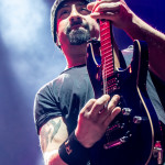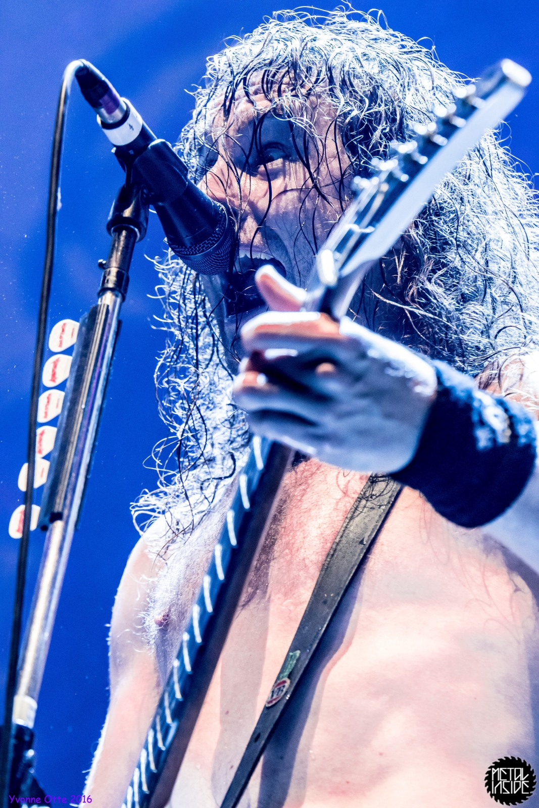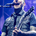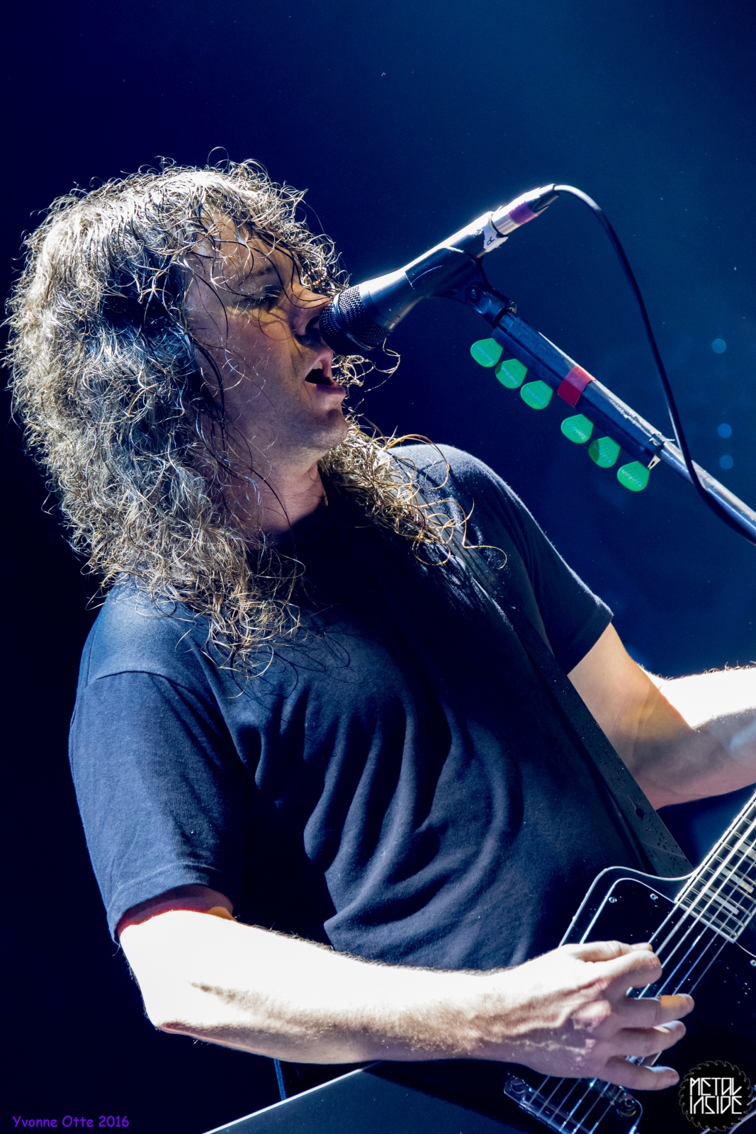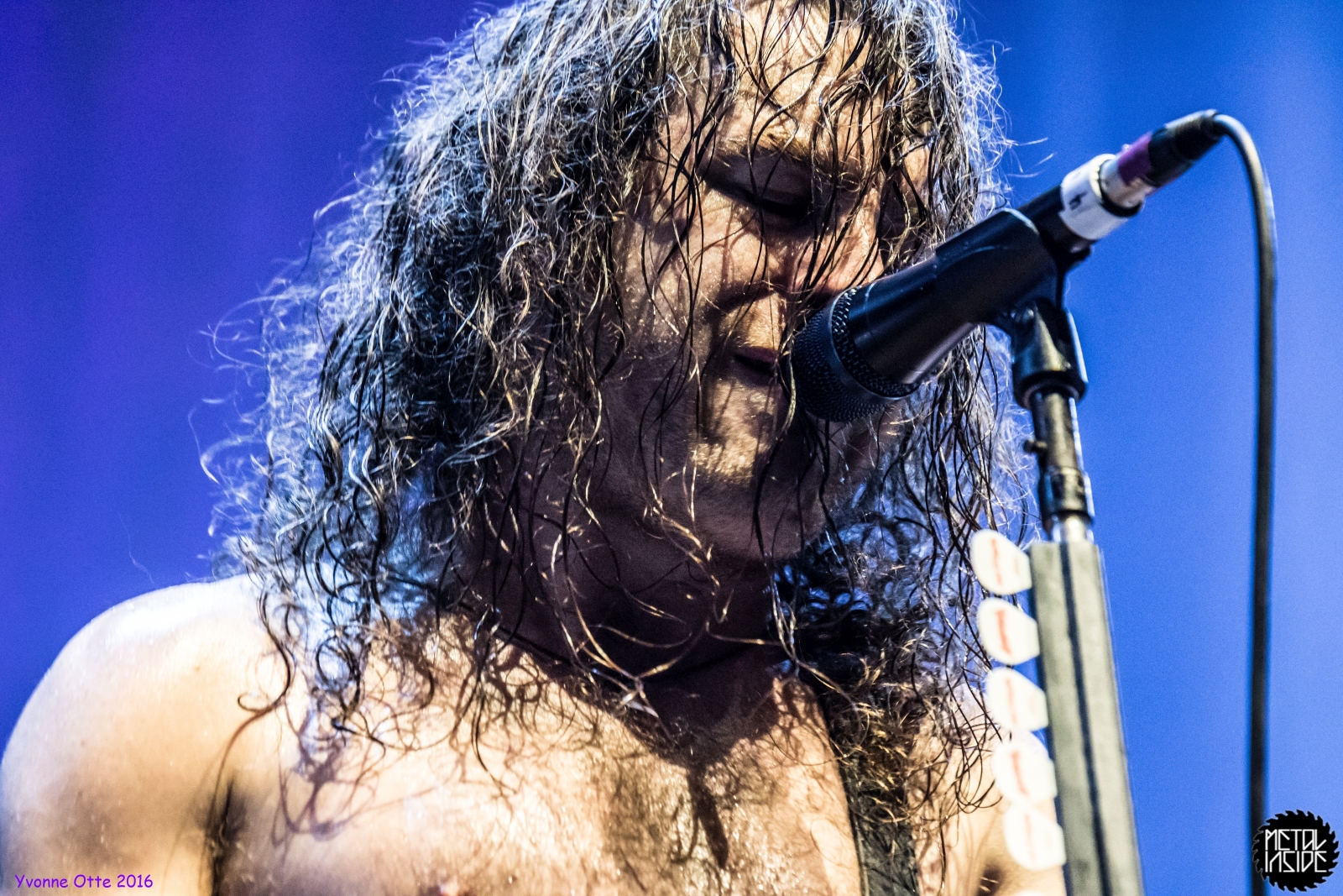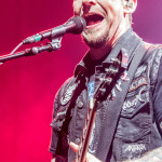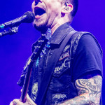 Danach folgte ein Blitzumbau! Ein Vorhang vor der Bühne hat ja immer etwas Geheimnisvolles. Außerdem sorgt er zu Beginn für diesen A-ha-Effekt und riesige Begeisterung, wenn er fällt. Vorhang zu Beginn geht einfach immer, funktioniert auch immer und das wissen VOLBEAT auch. Als der Vorhang fällt war der Beifall gigantisch! So gigantisch wie der Beifall sollte es nun für 19 Songs weiter gehen! Das in allen Altersklassen vertretene Publikum war gut und schnell zu begeistern. Den Worten von Sänger Michael folgten stets taten und so folgte das Publikum auch, als Michael sie aufgefordert hatte einen schönen Circlepit zu machen.