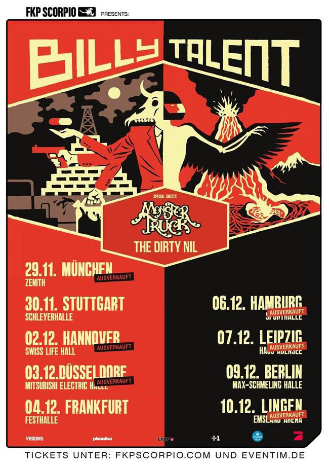 KONZERT: Billy Talent, Monster Truck, The Dirty Nil - Düsseldorf, Mitsubishi Electric Halle