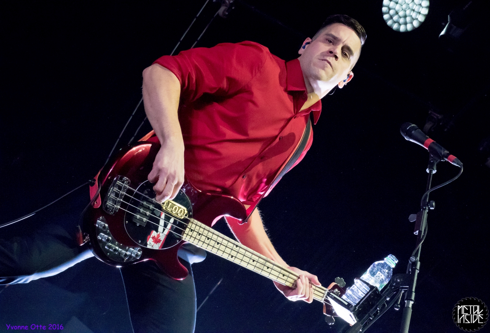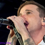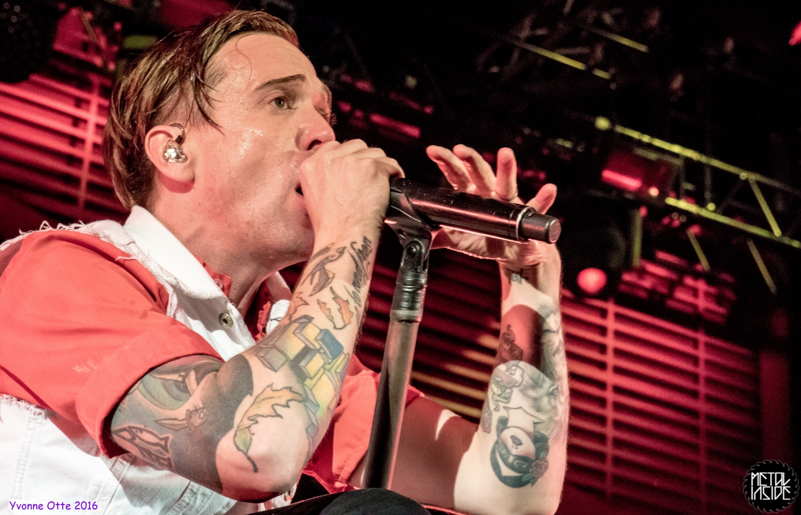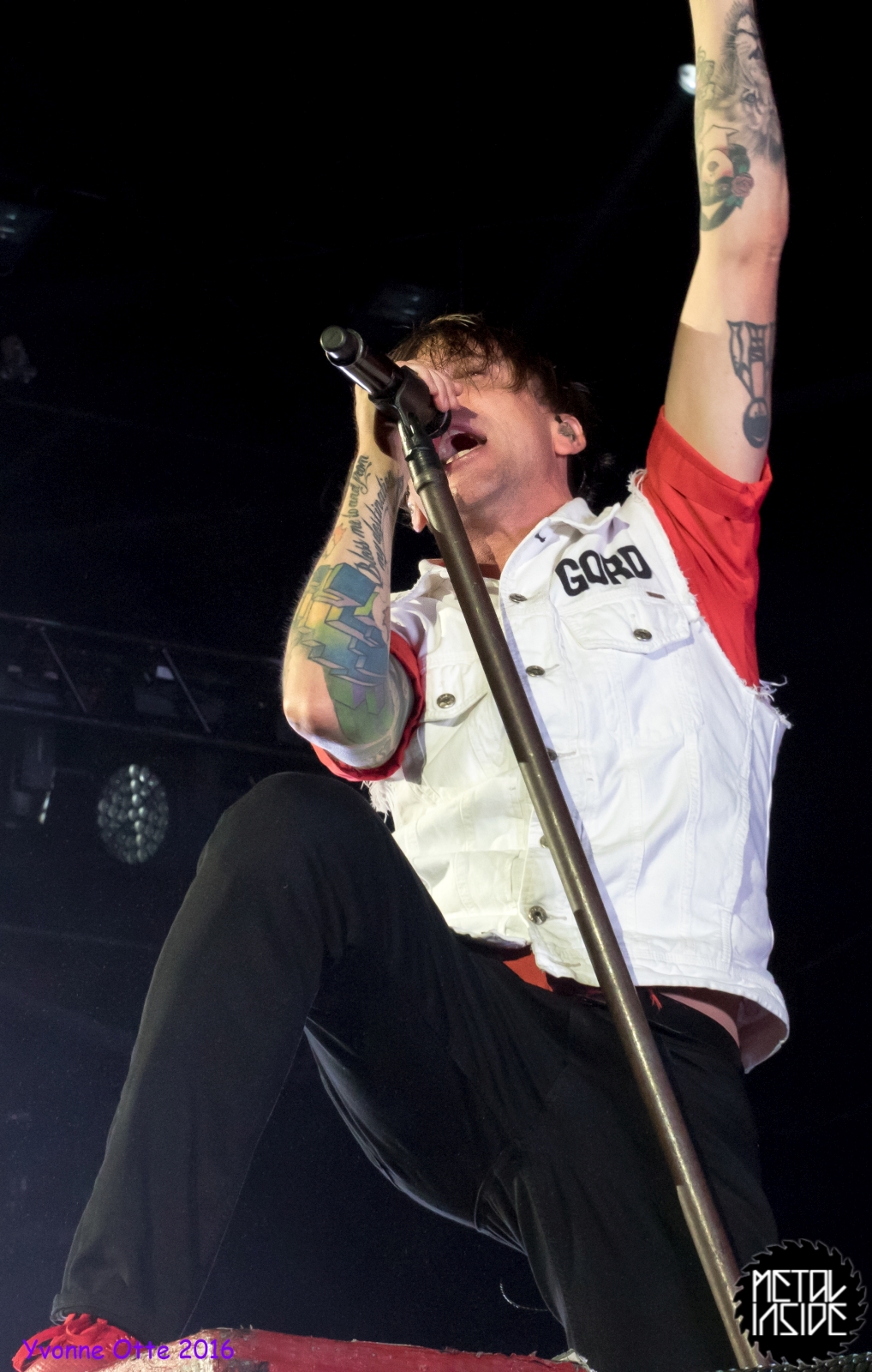 Es folgte ein Blitzumbau und gegen 22 Uhr durften BILLY TALENT endlich auf die Bühne. Vom ersten bis zum letzten Ton herrschte eine fantastische Stimmung, die selbst die Band manchmal sprachlos gemacht hatte. Immer wieder „Billy Talent“-Chöre, die sich zwischen den Songs entwickelt hatten und eine sichtlich gut gelaunte Band, die richtig Bock hatte dieses Konzert zu spielen. Von der Stimmung her war es auch egal, ob ein alter Song gespielt wurde oder ein Neuer –alles kam gut an und wurde gefeiert. Die Songauswahl war gut gemischt durch alle Alben. 21. Songs wurden gespielt, davon kamen sechs vom neuen Album. Radiohits wie „Surrender“ oder „Fallen Leaves“ durften natürlich auch nicht fehlen. Selten auch einen Sänger gesehen, der so viel Spaß und so viel gelächelt hatte. Zwischen den Songs hat Benjamin meist kleine Ansagen gemacht: so wurde einmal an SCOTT WEILAND gedacht, dessen erster Todestag am Konzertabend war. Außerdem wurde erklärt, warum Schlagzeuger Aaron derzeit von Jordan Hastings (ALEXISONFIRE) vertreten wird. Grund dafür ist die MS-Erkrankung von Aaron, die es derzeit nicht zulässt, dass er auf Tour geht. Benjamin sagte auch, dass von jedem verkauftem Ticket ein Euro an Aarons MS-Stiftung gespendet werden. Bei einer ausverkauften Halle wie die Mitsubishi Electric Halle kommen da gut über7.000 Euro zusammen. Nimmt man dann die gesamte Tour, so kommt da doch eine beachtliche Summe zusammen. Gute Sache! Der Euro tut nicht weh, auch wenn die Tickets dadurch eventuell einen Euro mehr kosten. Die Menge macht es und mit so Summen kann die Stiftung schon sehr viel machen.