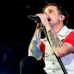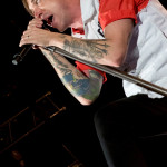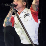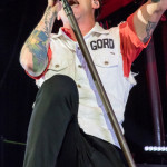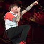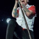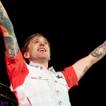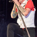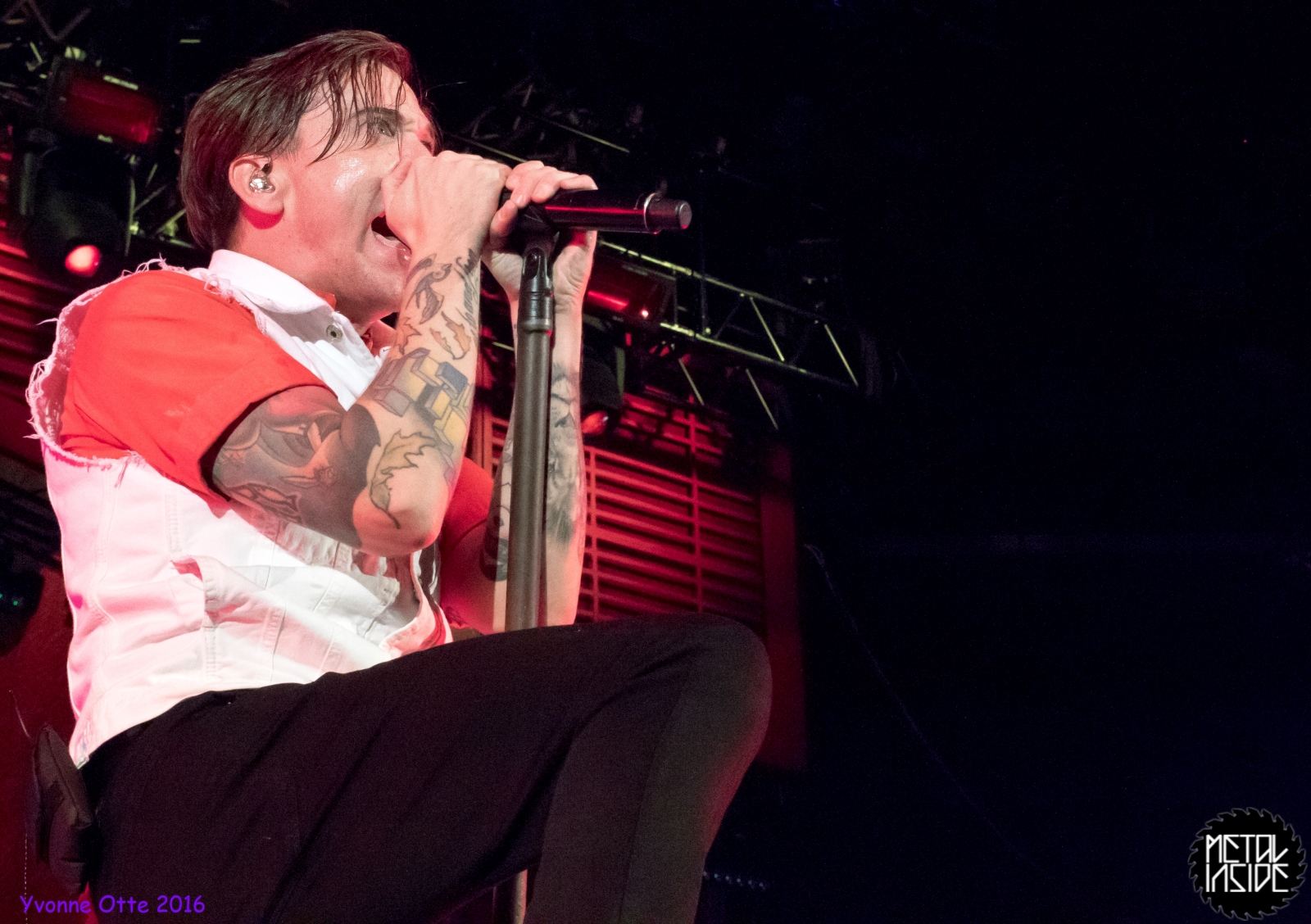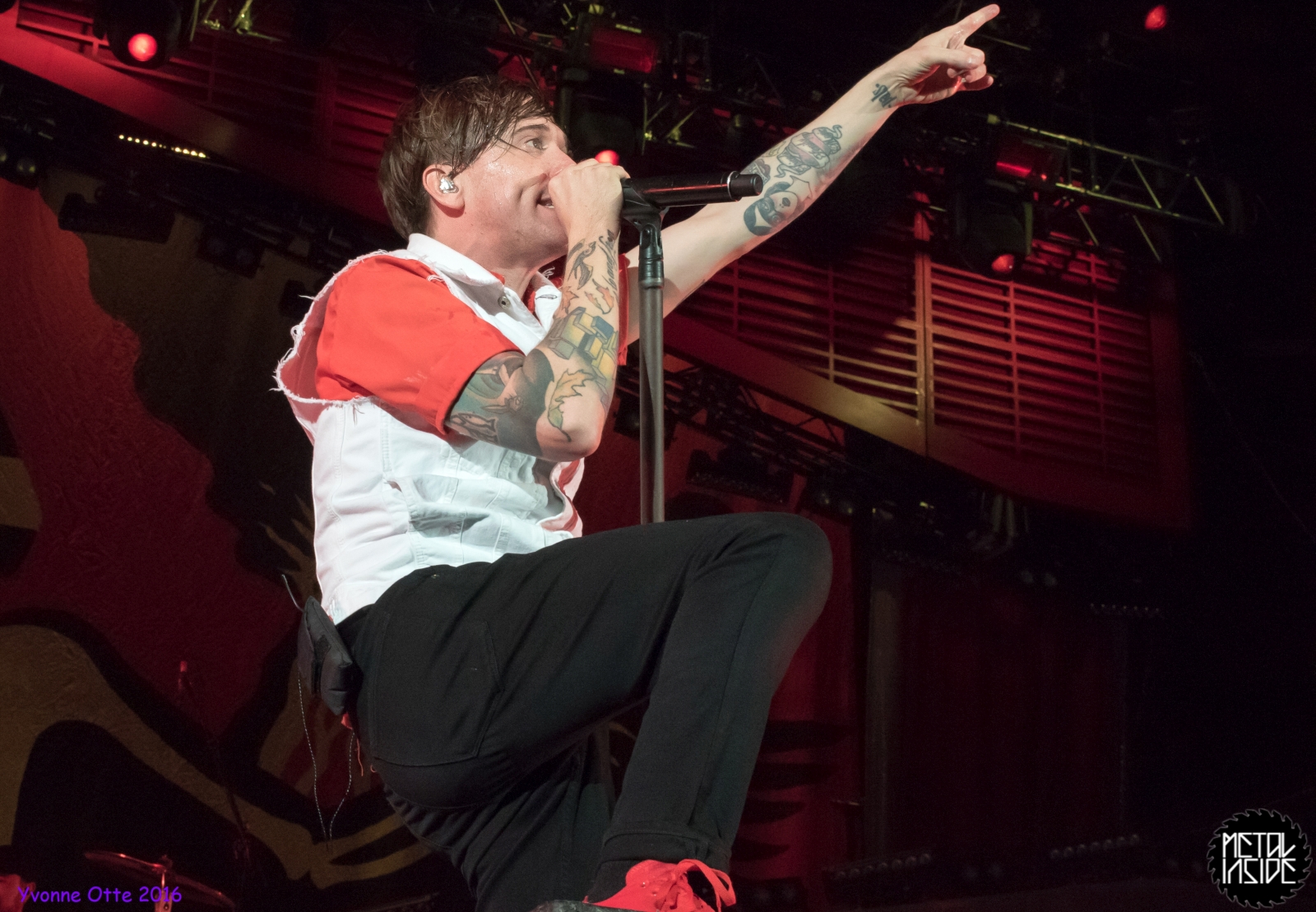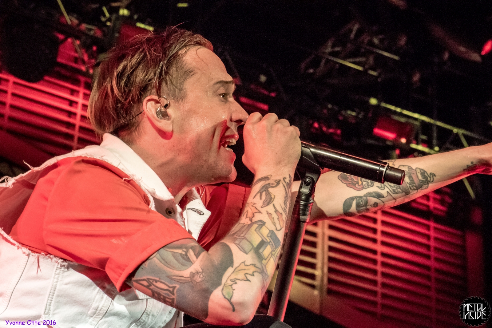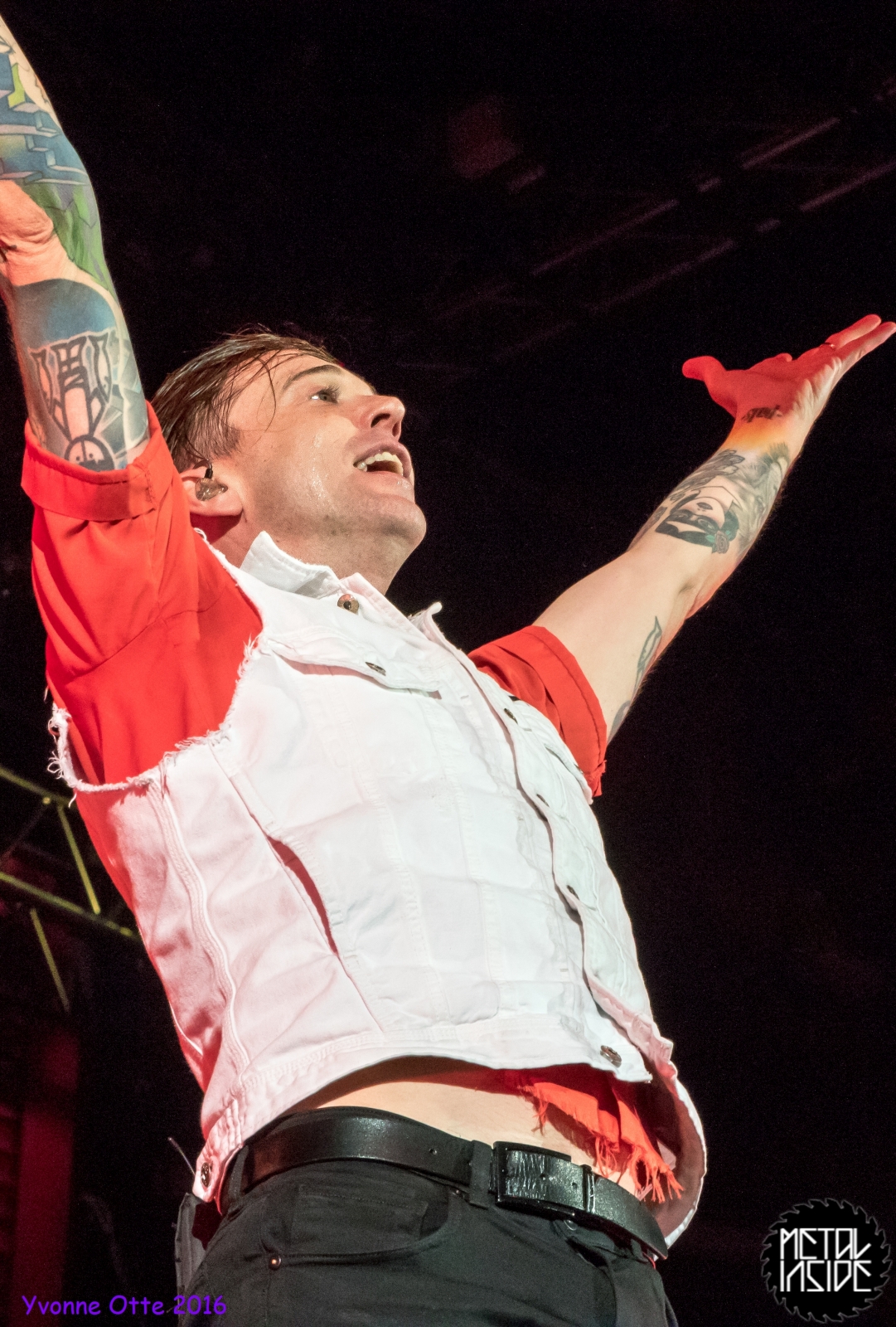 Es folgte ein Blitzumbau und gegen 22 Uhr durften BILLY TALENT endlich auf die Bühne. Vom ersten bis zum letzten Ton herrschte eine fantastische Stimmung, die selbst die Band manchmal sprachlos gemacht hatte. Immer wieder „Billy Talent“-Chöre, die sich zwischen den Songs entwickelt hatten und eine sichtlich gut gelaunte Band, die richtig Bock hatte dieses Konzert zu spielen. Von der Stimmung her war es auch egal, ob ein alter Song gespielt wurde oder ein Neuer –alles kam gut an und wurde gefeiert. Die Songauswahl war gut gemischt durch alle Alben. 21. Songs wurden gespielt, davon kamen sechs vom neuen Album. Radiohits wie „Surrender“ oder „Fallen Leaves“ durften natürlich auch nicht fehlen. Selten auch einen Sänger gesehen, der so viel Spaß und so viel gelächelt hatte. Zwischen den Songs hat Benjamin meist kleine Ansagen gemacht: so wurde einmal an SCOTT WEILAND gedacht, dessen erster Todestag am Konzertabend war. Außerdem wurde erklärt, warum Schlagzeuger Aaron derzeit von Jordan Hastings (ALEXISONFIRE) vertreten wird. Grund dafür ist die MS-Erkrankung von Aaron, die es derzeit nicht zulässt, dass er auf Tour geht. Benjamin sagte auch, dass von jedem verkauftem Ticket ein Euro an Aarons MS-Stiftung gespendet werden. Bei einer ausverkauften Halle wie die Mitsubishi Electric Halle kommen da gut über7.000 Euro zusammen. Nimmt man dann die gesamte Tour, so kommt da doch eine beachtliche Summe zusammen. Gute Sache! Der Euro tut nicht weh, auch wenn die Tickets dadurch eventuell einen Euro mehr kosten. Die Menge macht es und mit so Summen kann die Stiftung schon sehr viel machen.